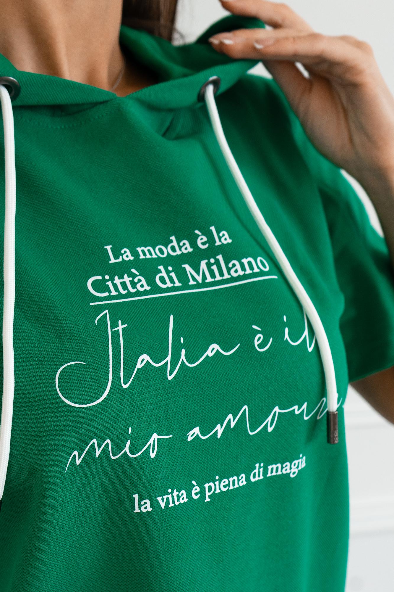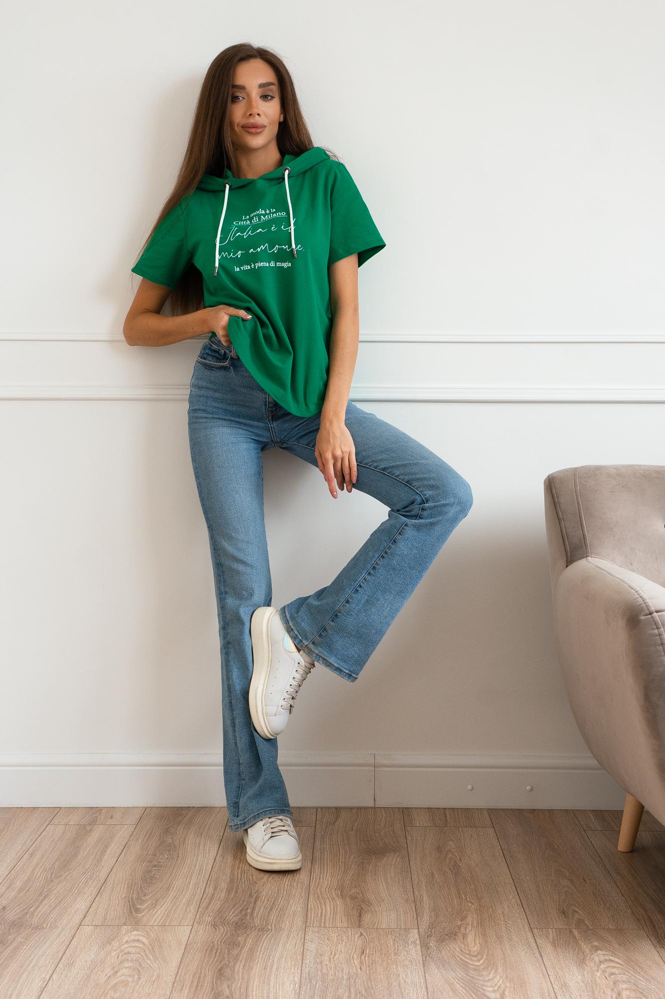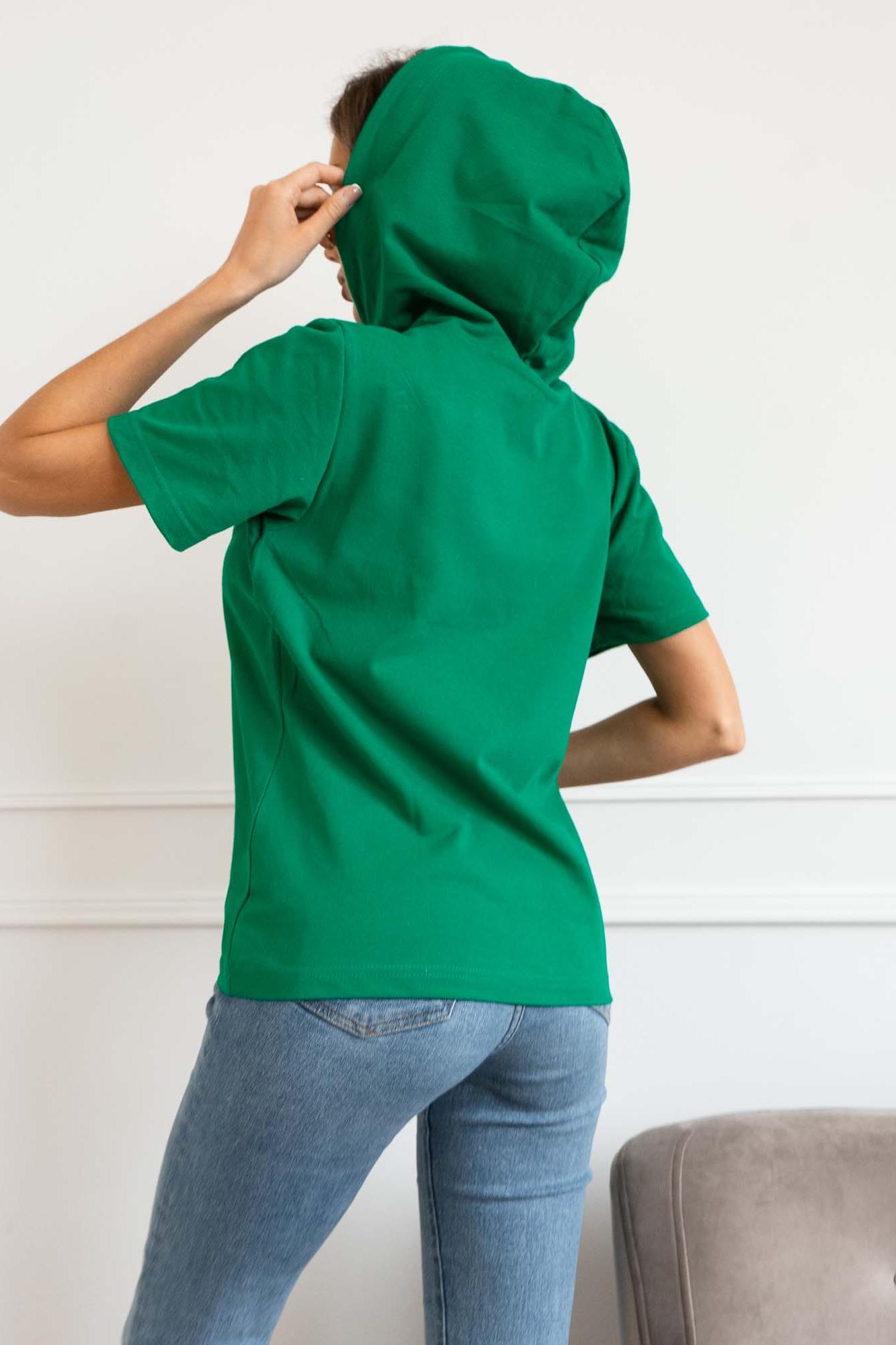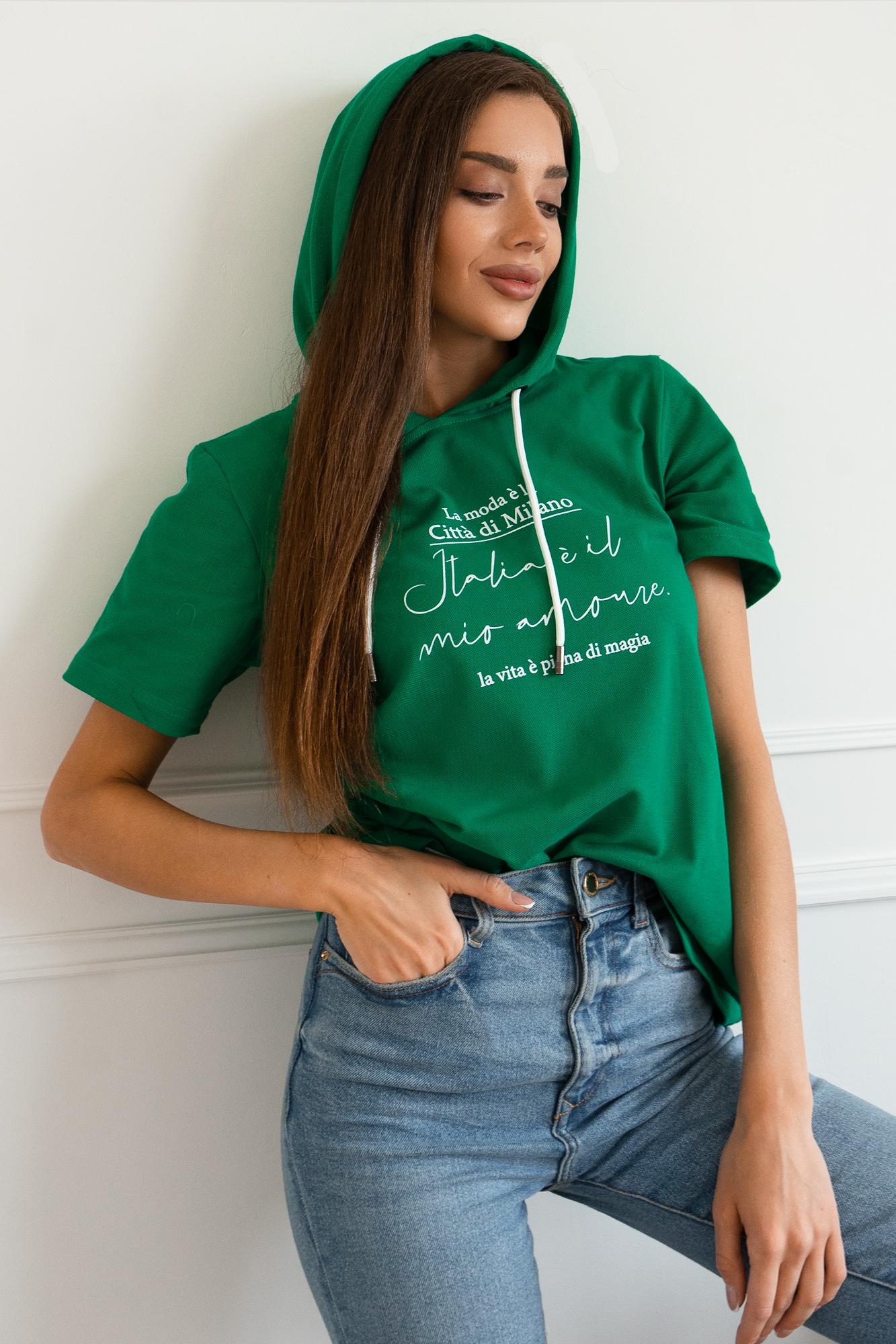 Спортивная футболка Трейси с капюшоном. Ткань Лакоста практична и удобна в повседневной носке. Футболка не мнется, пропускает воздух и максимально комфортна во время прогулок, занятий спортом или домашними делами. Стильная футболка с дизайнерским принтом и регулирующим шнурком выглядят модно и уникально.