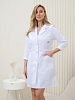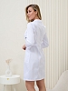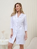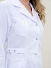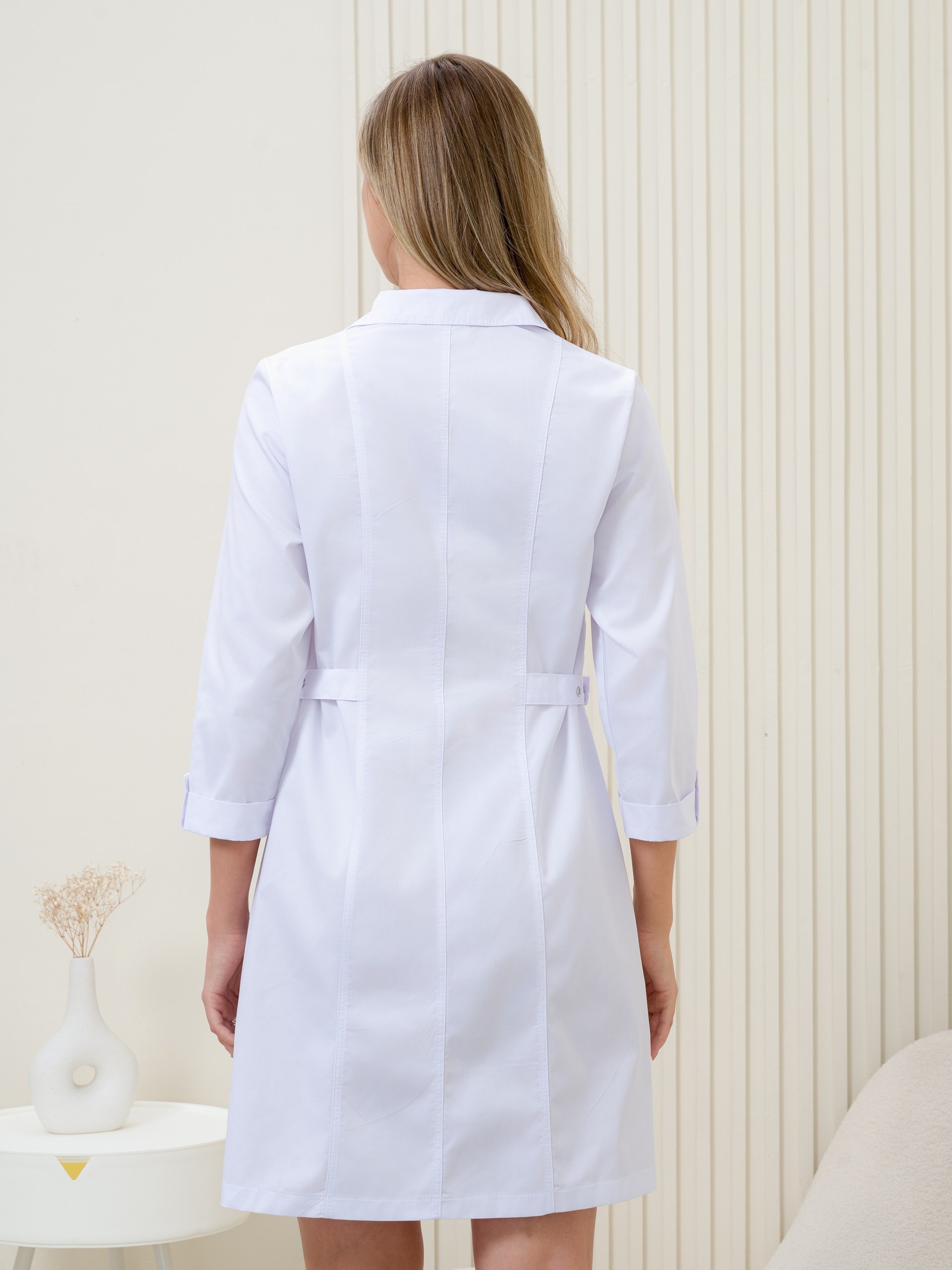 Халат медицинский женский приталенного силуэта, декорированный двумя полупоясами по бокам на линии талии, скрепленные металлическими кнопками. Воротник отложной. Рукав втачной, длина 3/4. Сделан из ткани Элит-145 (хлопок 50%, полиэфир 50%, ВО пропитка, Плотность: 145 гр/кв.м). Размерный ряд 40 - 62. Рост 164 - 170 см.
