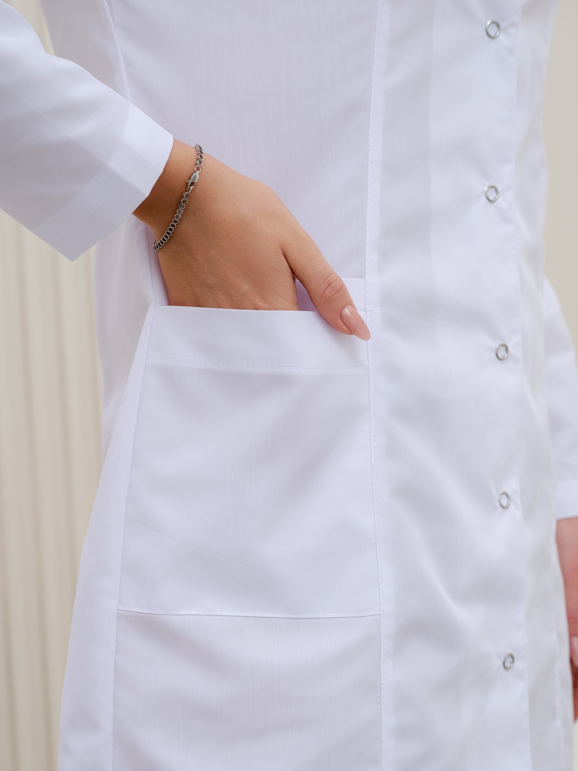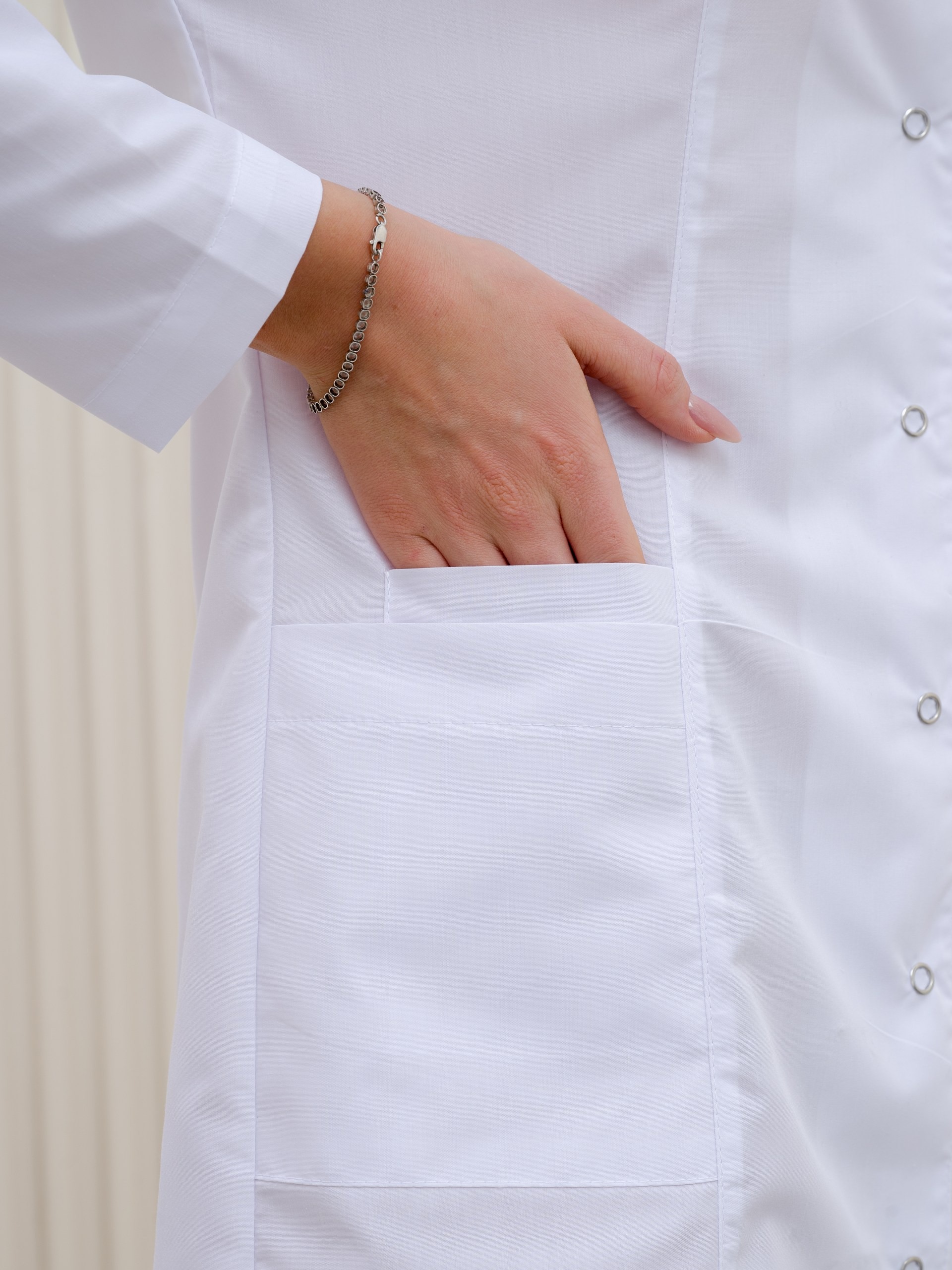 Медицинский женский халат идеальный выбор любителей классики. Размерный ряд изделия 42 - 56. Халат приталенного силуэта. Воротник стойка. В составе изделия хлопок 35% и полиэстер 65%, не деформируется при носке. Он практичен и легок в уходе, практически не мнется, отлично сидит по фигуре. Халат белый подходит для повседневного использования как врачами, так и для студентов медиков. Наша продукция - это сочетание современного стиля, высокого качества и практичности.