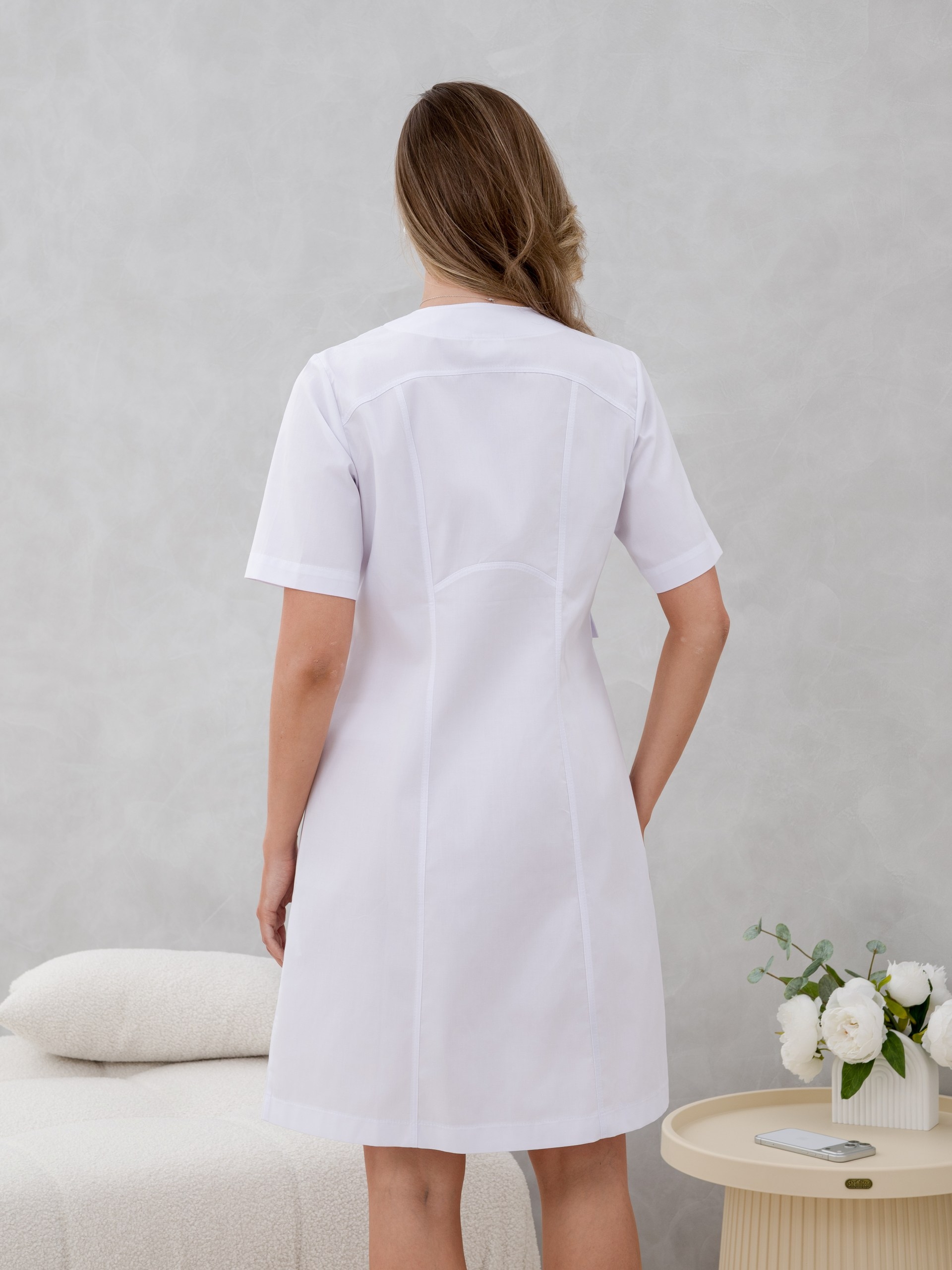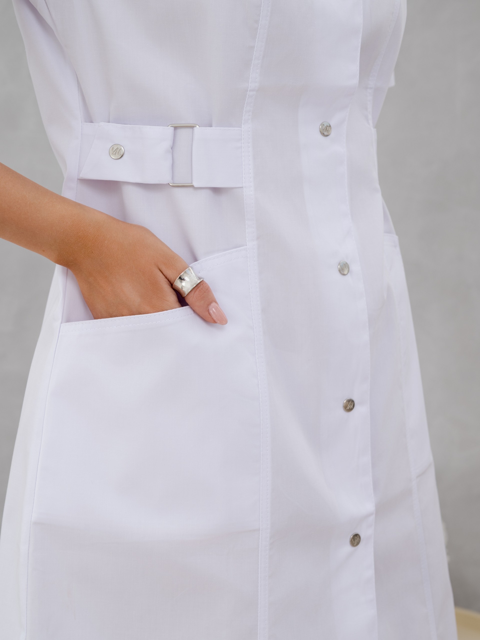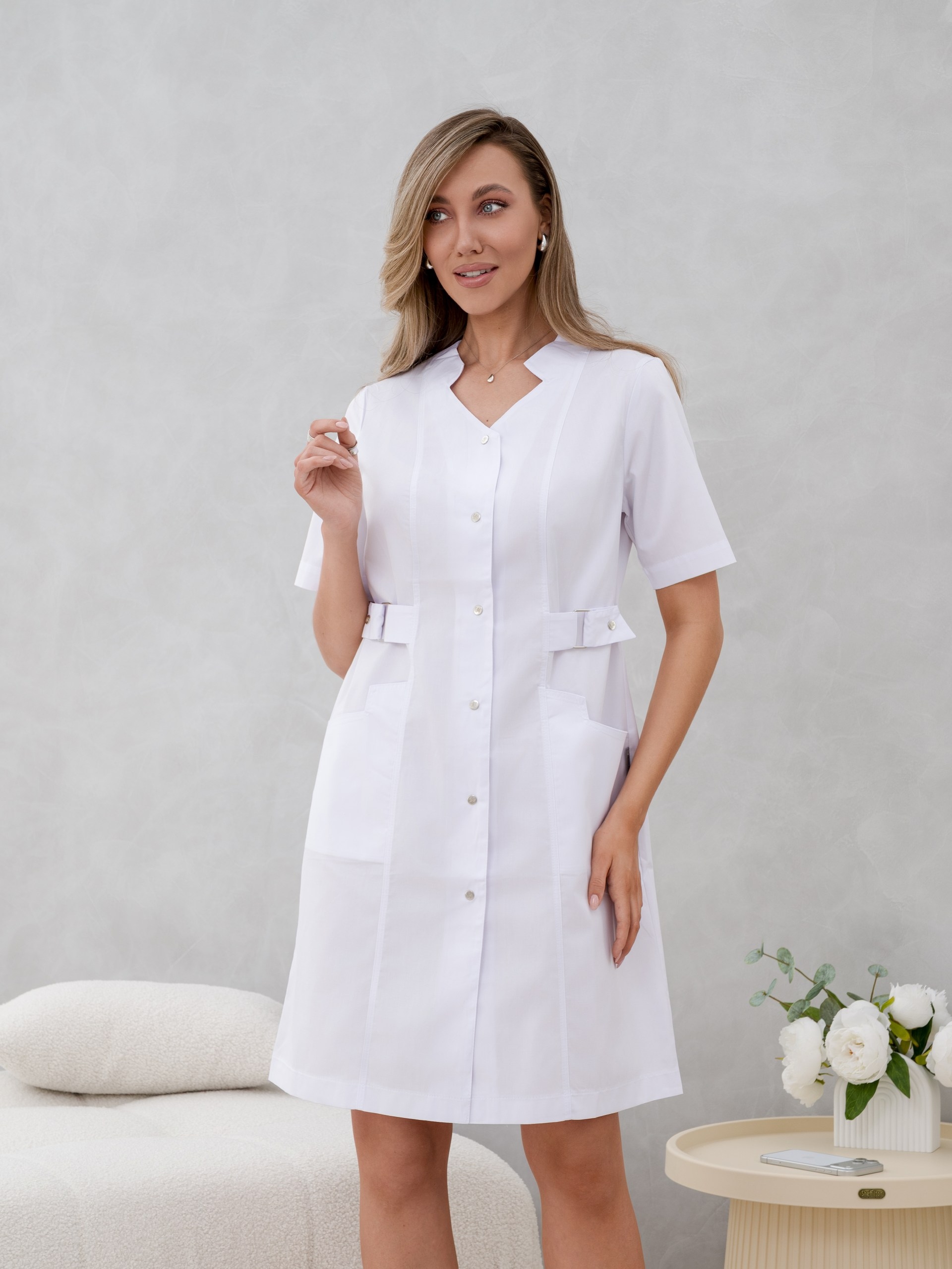 Халат медицинский представлен размерным рядом: 42 - 56. Халат белый - это мед одежда, сопровождающая работников медицинской сферы ежедневно. Халат медицинский женский отличается не только качеством, но и оригинальным дизайном. Фигурный вырез горловины подчеркивает длину и изящность шеи, а клапаны на талии создают женственный силуэт. Карманы по бокам и застежка на кнопки по всей длине не только удобны в работе, но и добавляют стиля. Спецодежда требуется во многих отраслях.