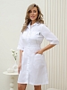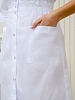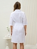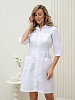 Халат медицинский женский М-075-0 ткань тиси. У халата отложной воротник на стойке, два нагрудных, два нижних боковых кармана, пояс на втачной резинке, рукав 3/4 с манжетой, вид застежки-кнопки.