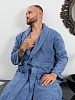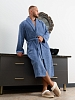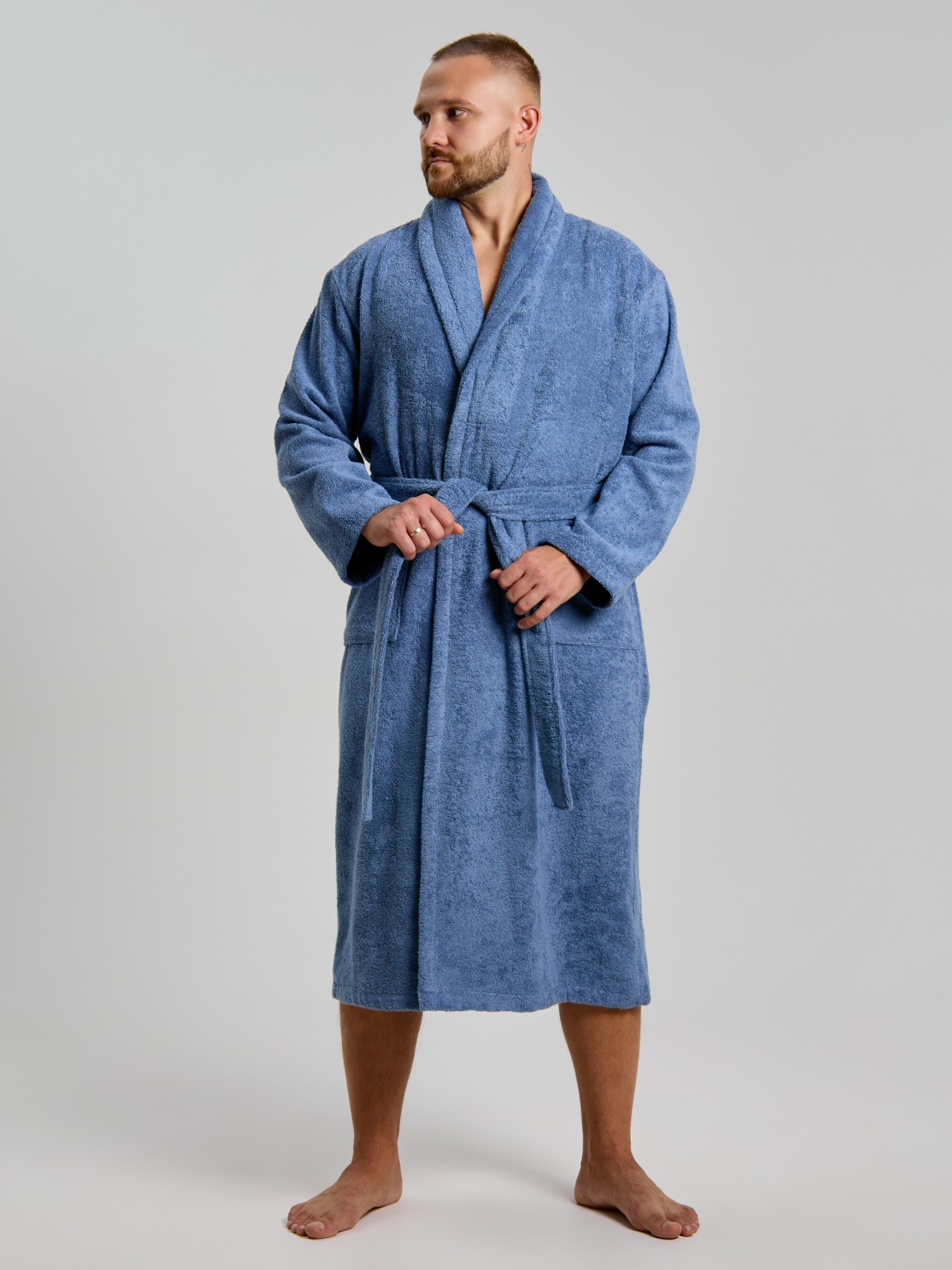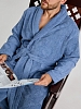 Мужской халат из двустороннего махрового хлопкового полотна. Модель на запах, с поясом в шлёвках, с боковыми карманами, с воротником "шаль", с петлей-вешалкой по горловине спинки.