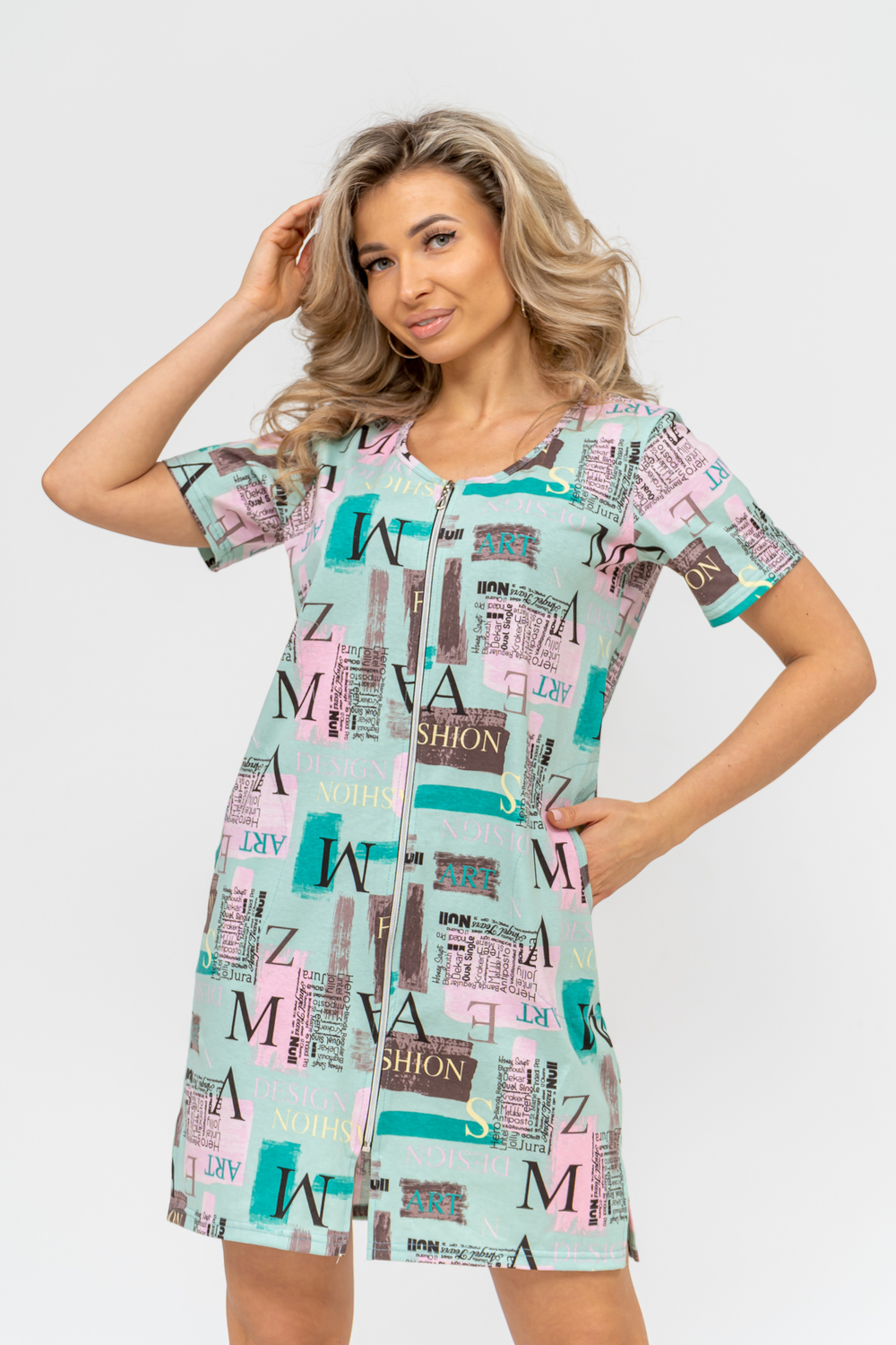 Женский халатик модных трендовых расцветок выполнен из 100% хлопчатобумажной ткани, что обеспечивает максимальный комфорт при ношении. Отличается мягкостью и приятной на ощупь текстурой. Материал прекрасно дышит. Носить такой халатик Вы сможете как летом, так и в любой другой сезон. Надёжный замок на молнии сохраняет свои свойства в течении всего времени использования. Женственный вырез и 2 боковых кармана добавляют образу шарм и делают изделие удобным и практичным. Изысканный, средней длины халатик подойдёт для любого типа фигуры. Отличная модель для дома, для роддома, после родов, для кухонных дел и хозяйственной уборки, для дачи. И конечно идеально после душа, сауны, бани и ванной. А так же будет замечательным подарком на любой праздник: 14 февраля, день рождения, 8 марта. Рекомендуется стирать в деликатном режиме 30 С. Это поможет избежать деформации и сохранить яркость цвета.