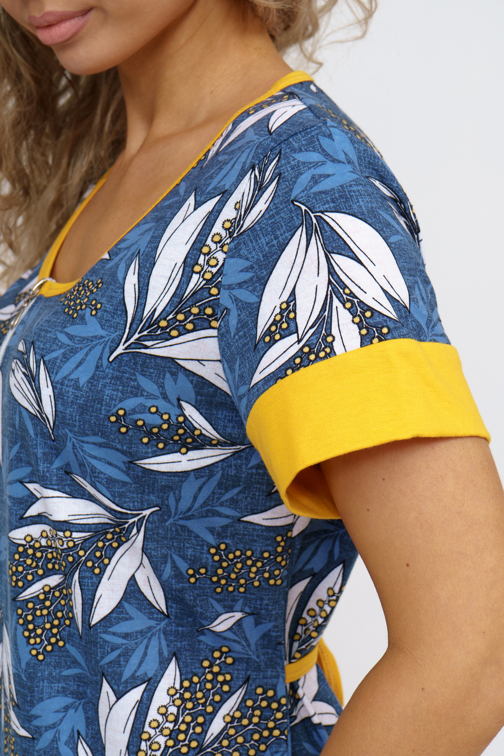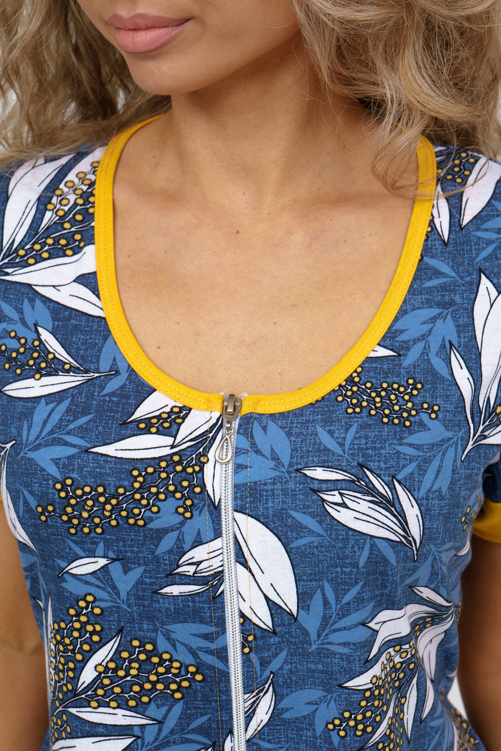 Женский халатик на молнии самая распространенная и универсальная одежда для домашнего отдыха и хозяйственных хлопот. После трудного рабочего дня, приходя домой, первым делом хочется переодеться. И данная модель это идеальный вариант среди представительниц прекрасной половины человечества. Модель выполнена из 100% хлопчатобумажной ткани. Халат так же дополняет яркая отделка по рукавам и карманам. А пояс на линии талии поможет легко смоделировать женственный силуэт и при этом Вы будете чувствовать себя легко и непринуждённо. Данная модель прекрасно подойдёт для дома, дачи и отдыха, создавая по-настоящему яркий образ и хорошее настроение!