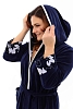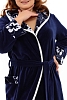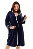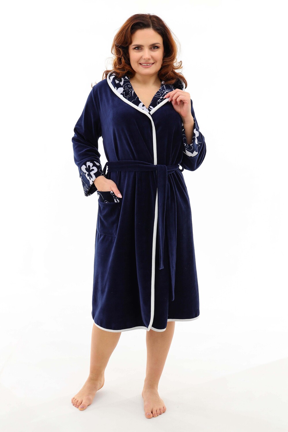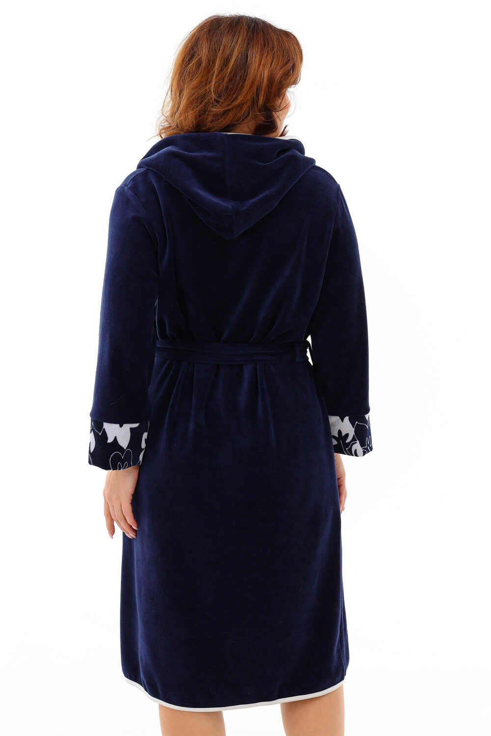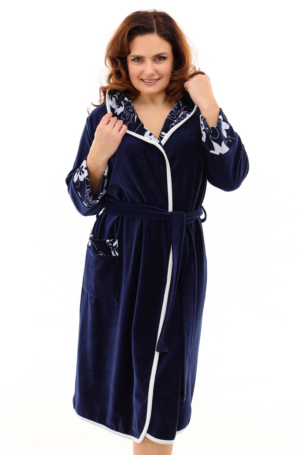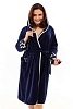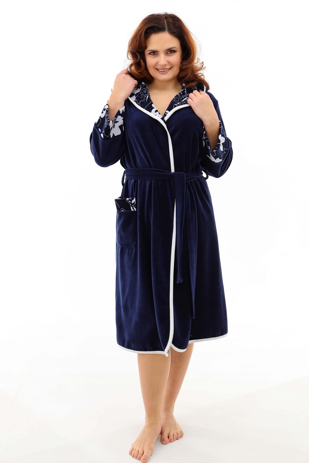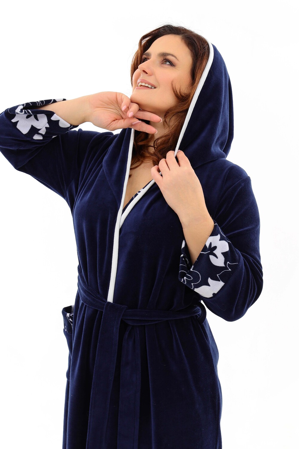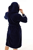 Халат женский на запах из велюра, длиной ниже колена, с капюшоном и накладным карманом, рукав с манжетами. Классическая модель подходит как повседневный вариант домашней одежды. Мягкий, удобный и практичный.