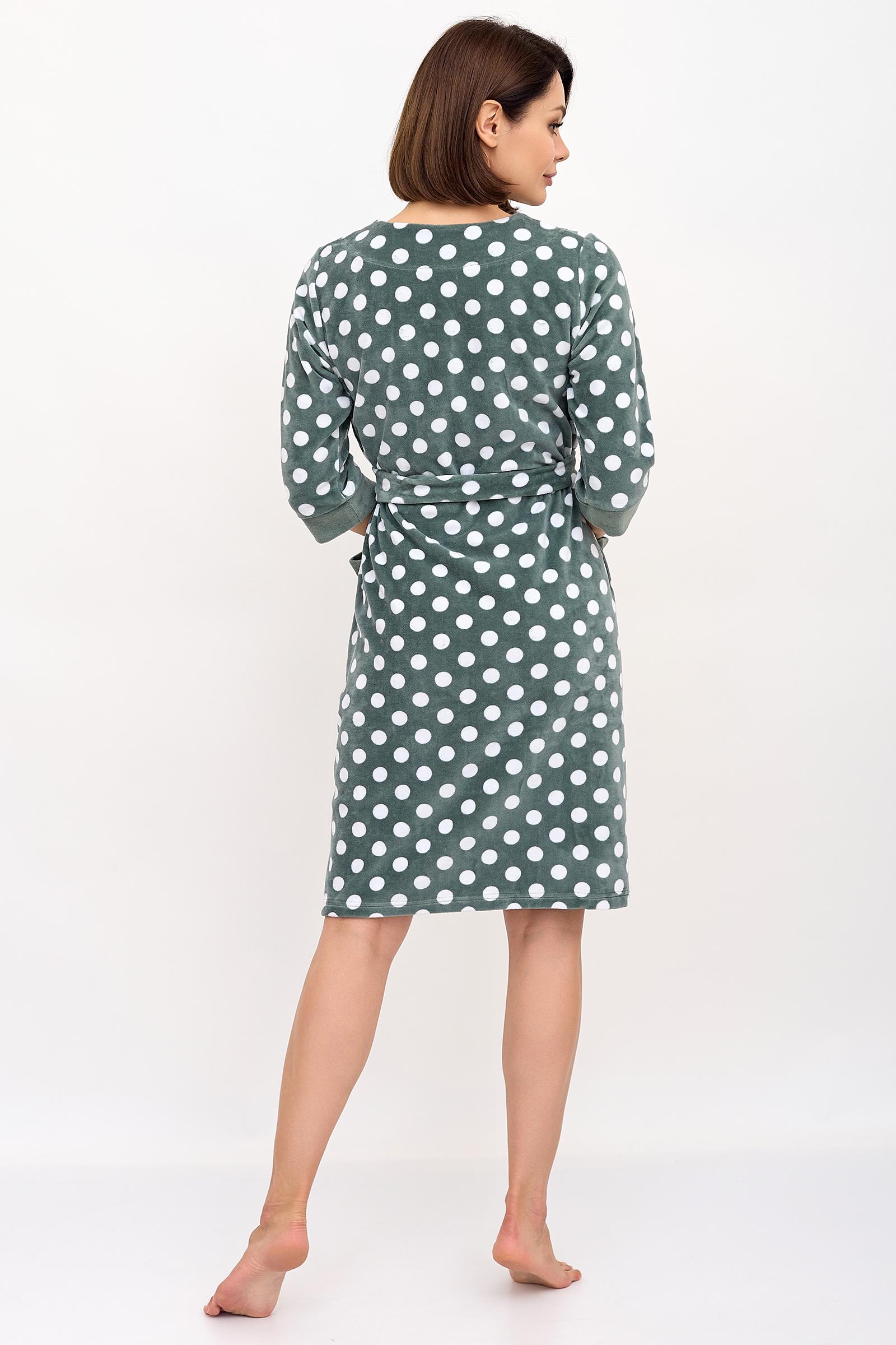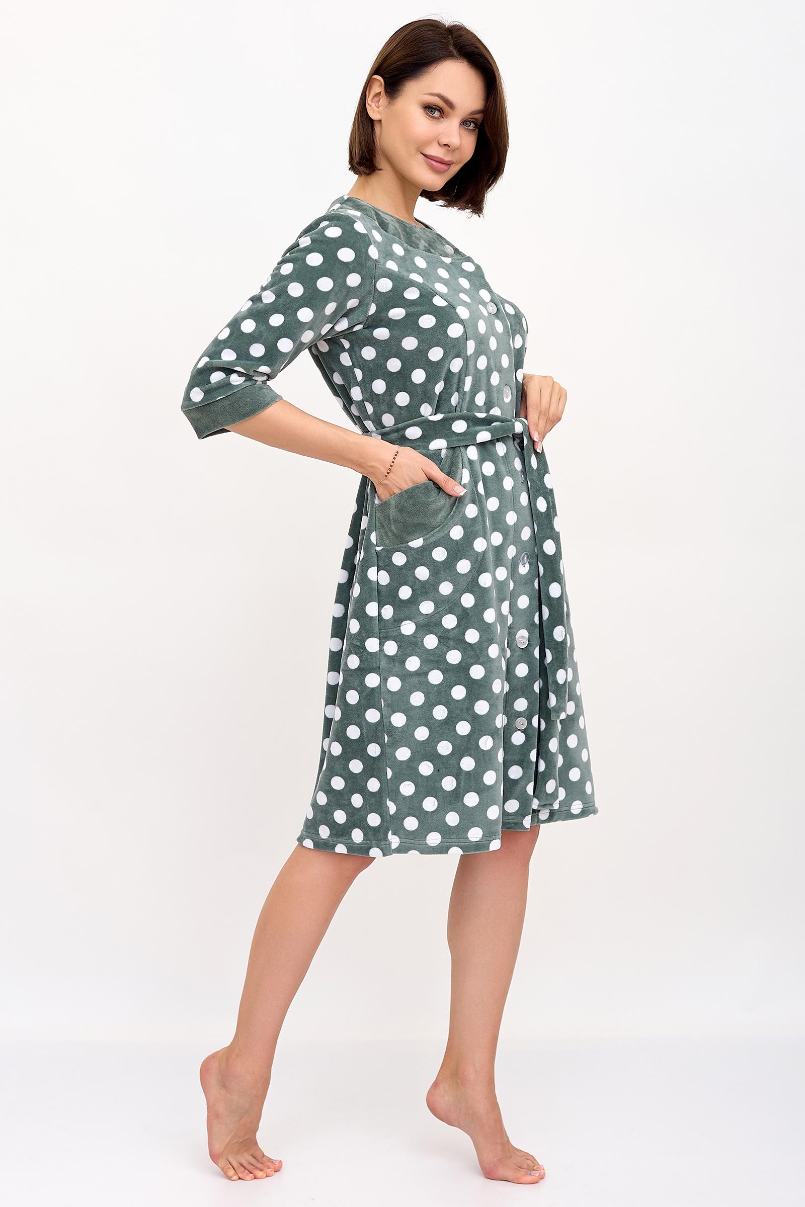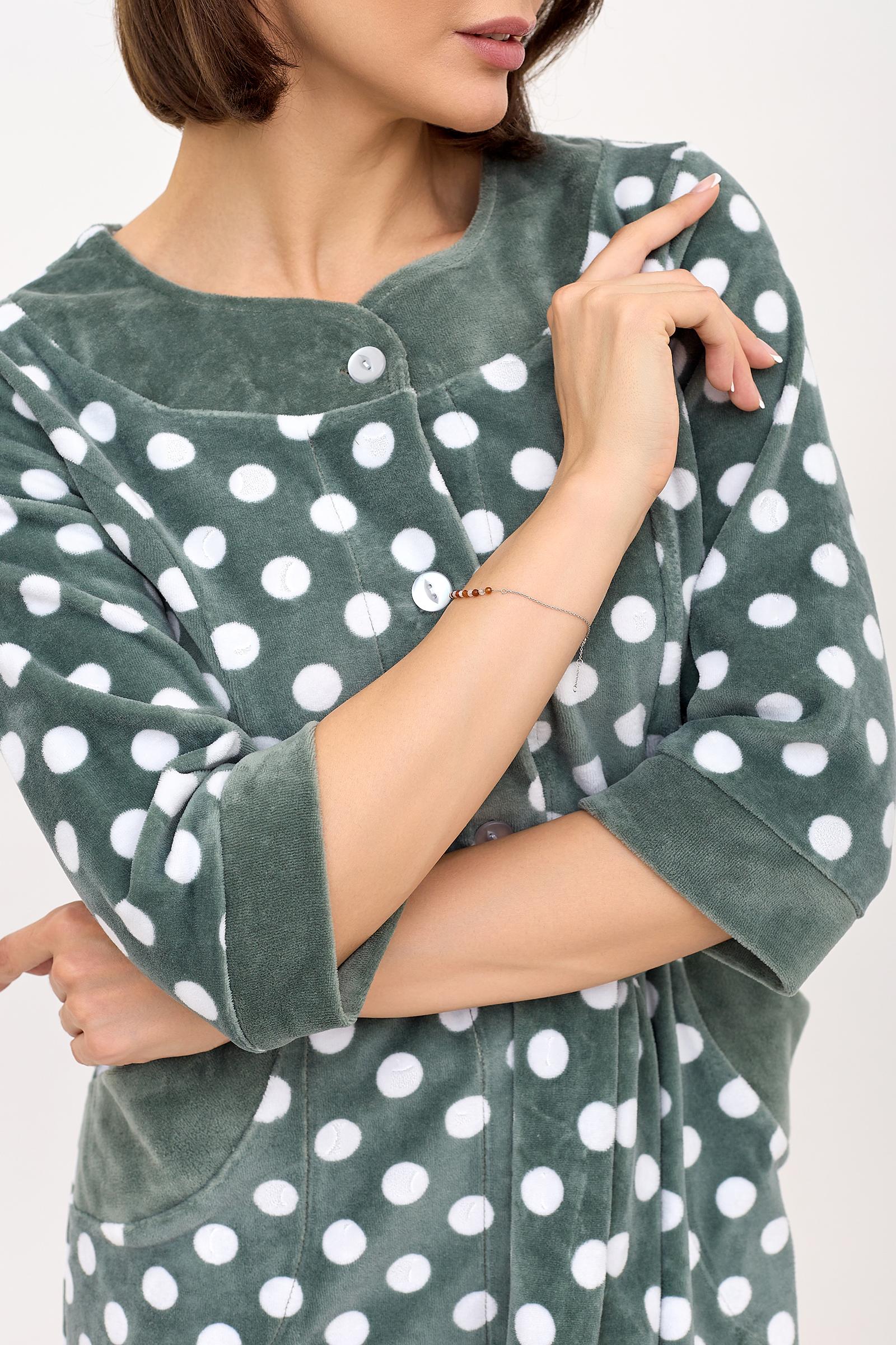 Домашний женский халат Зелма для дома и отдыха. Халат на пуговицах имеет округлый вырез, рукава длиной 3/4 , накладные вместительные карманы. Такой халат позволит выглядеть ярко, красиво и стильно. Женственный и нежный халат подарит ощущение роскоши и уюта. Также халат будет отличным подарком на любой семейный праздник.