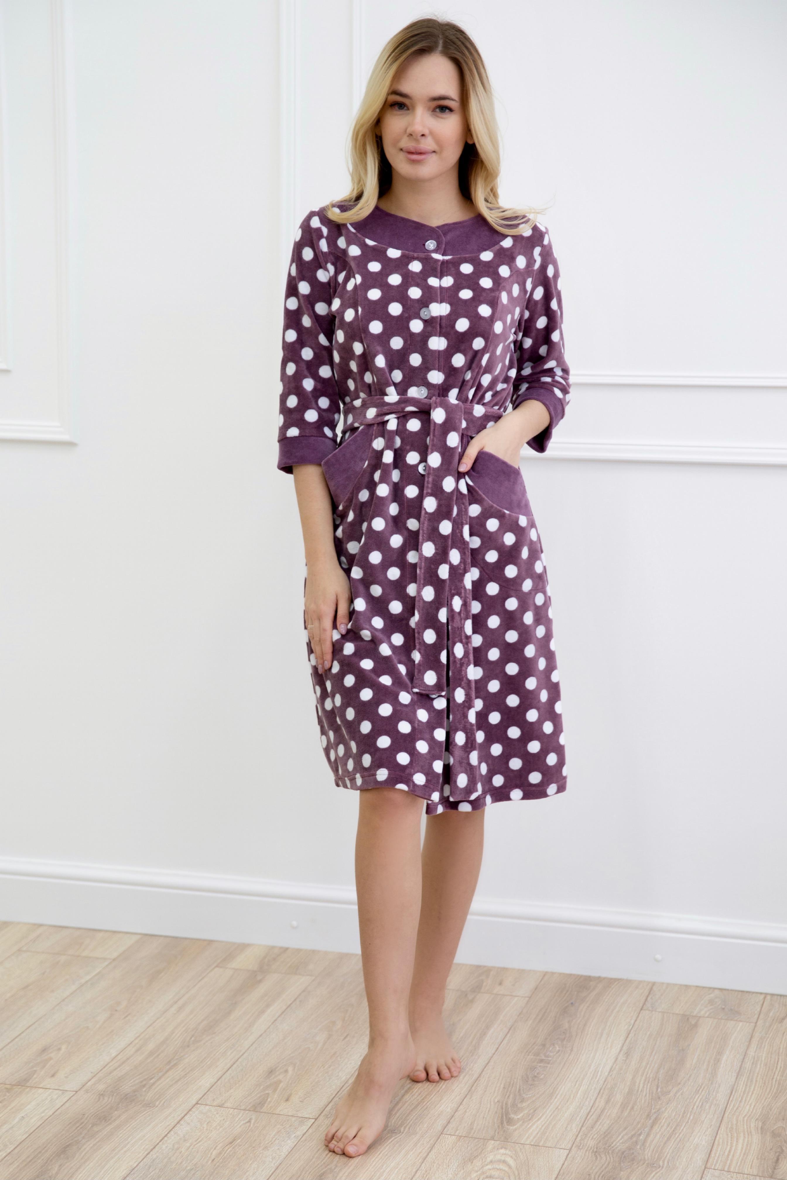Домашний женский халат Зелма для дома и отдыха. Халат на пуговицах имеет округлый вырез, рукава длиной 3/4 , накладные вместительные карманы. Такой халат позволит выглядеть ярко, красиво и стильно. Женственный и нежный халат подарит ощущение роскоши и уюта. Также халат будет отличным подарком на любой семейный праздник.