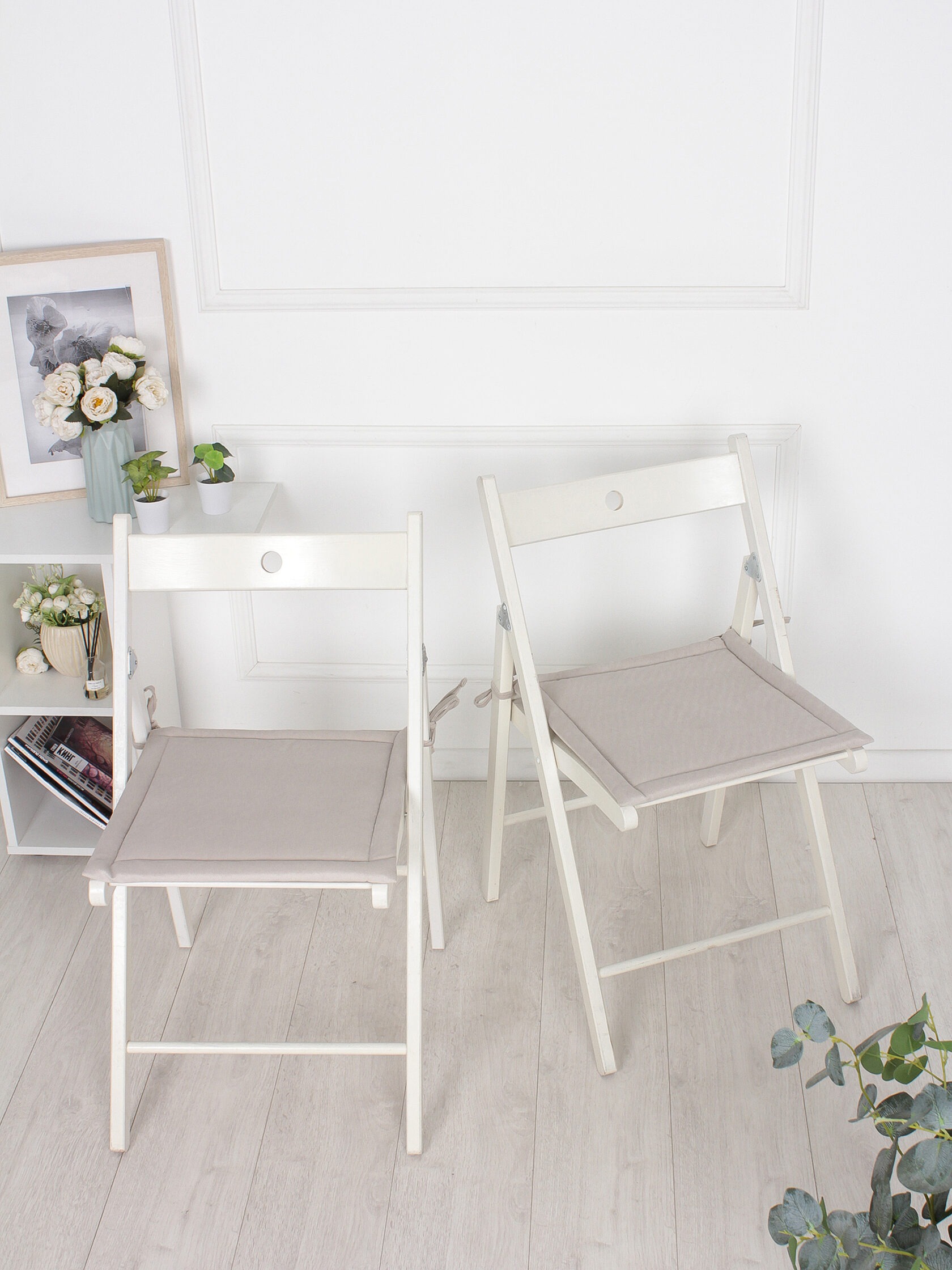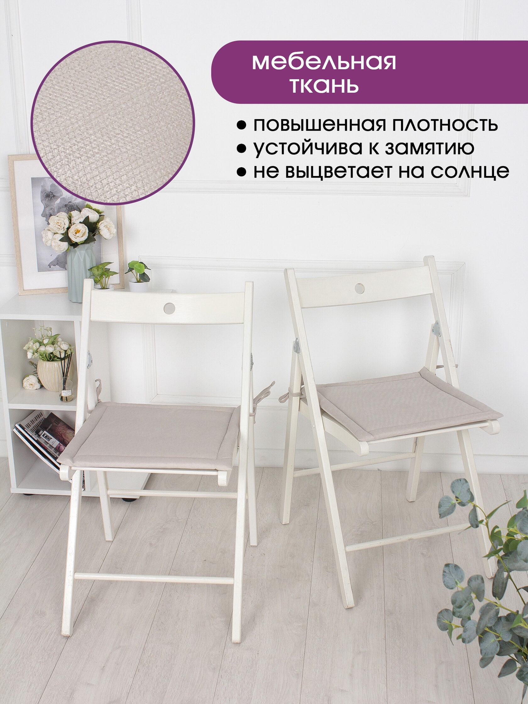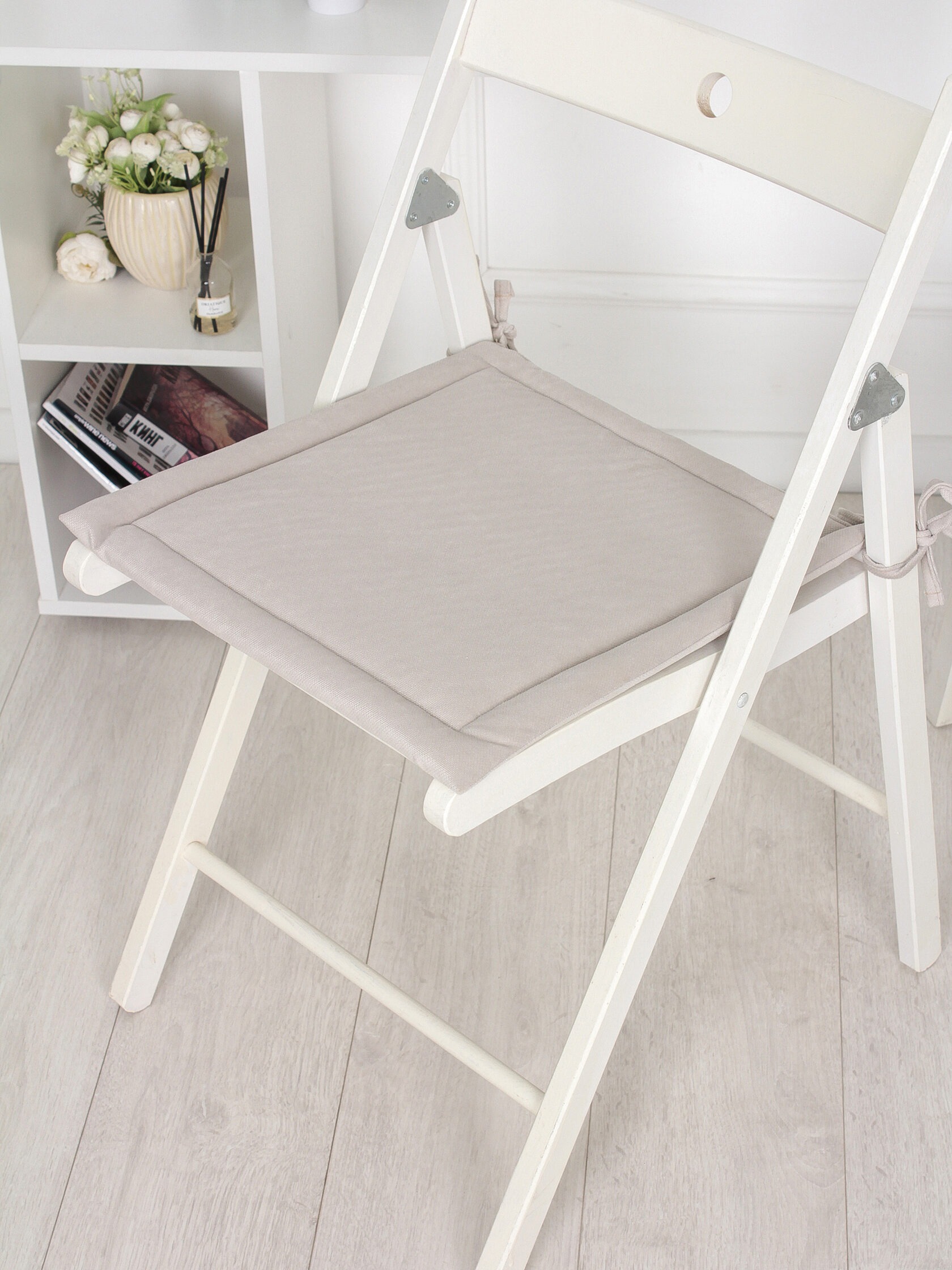 Комплект квадратных подушек на стул с завязками (2 шт.) / Бежевый