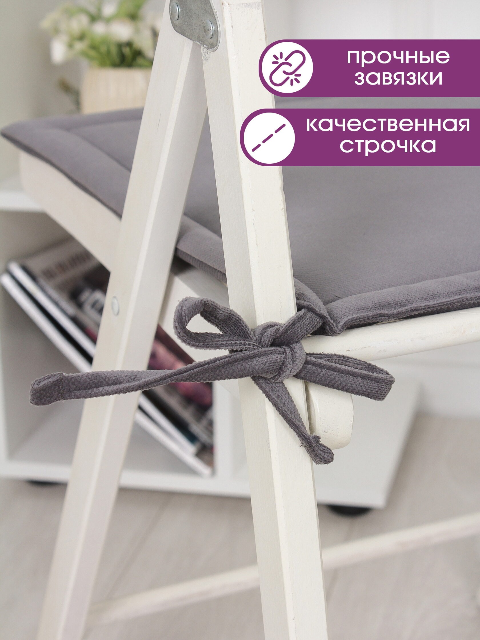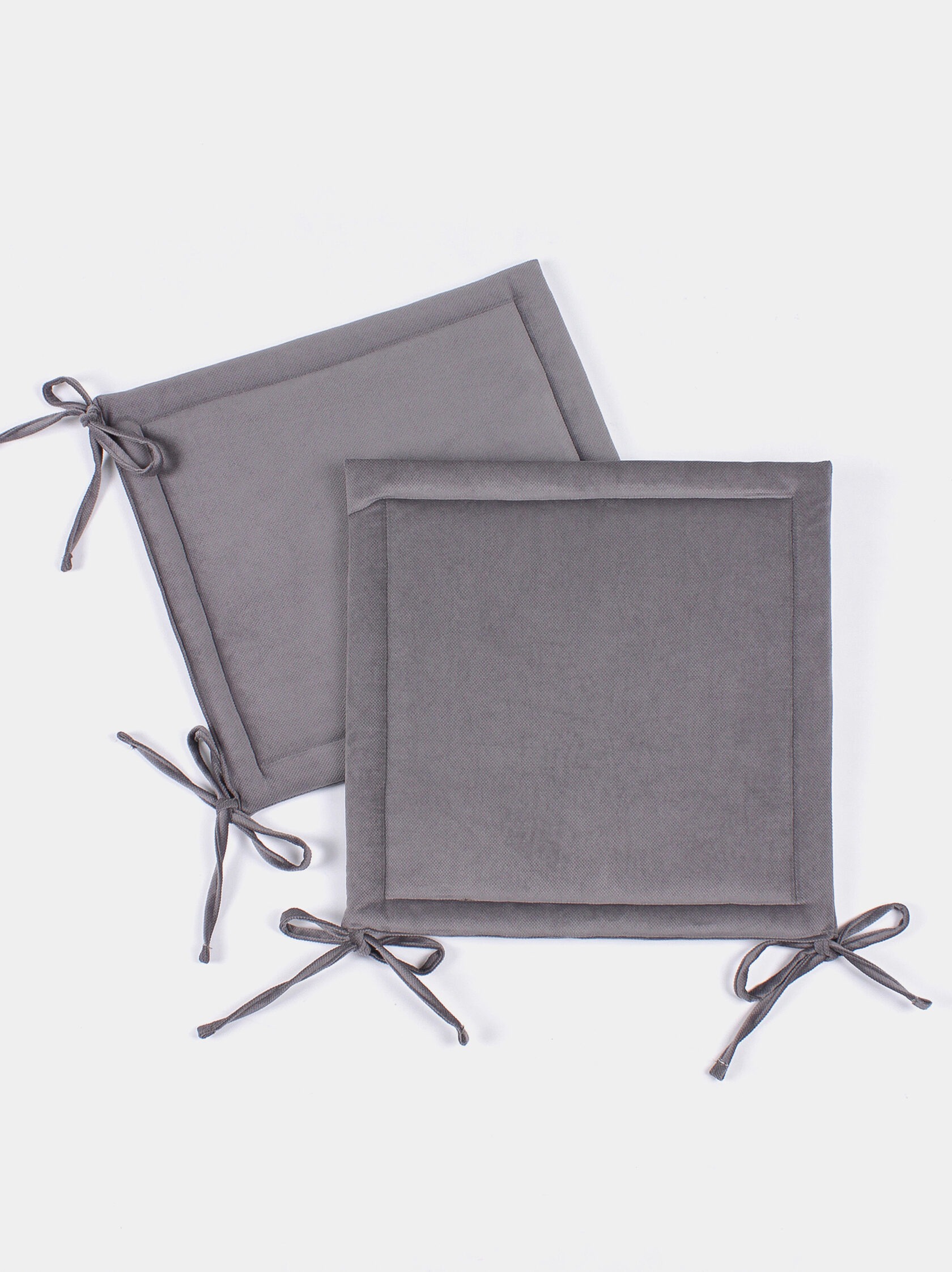 Комплект квадратных подушек на стул с завязками (2 шт.) / Серый