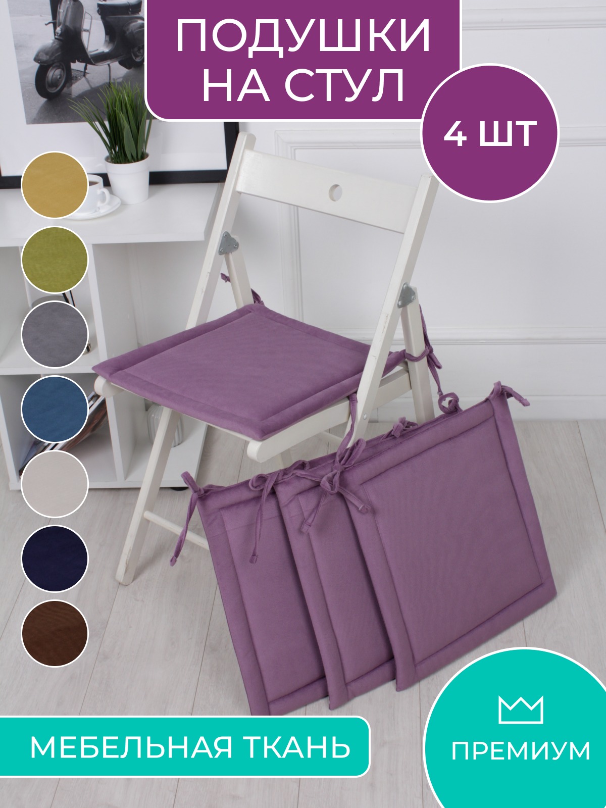 Комплект квадратных подушек на стул с завязками (4 шт.) арт. PKK / Фиолетовый