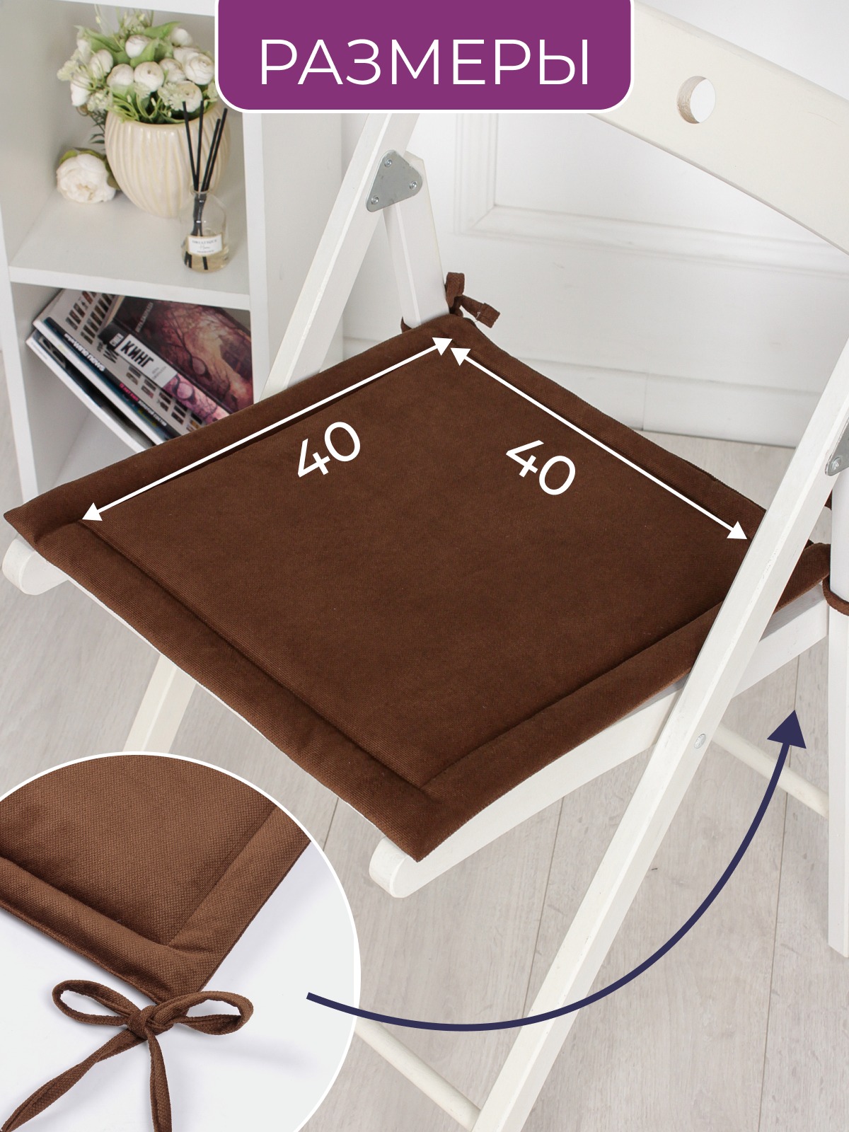 Комплект квадратных подушек на стул с завязками (4 шт.) арт. PKK / Коричневый