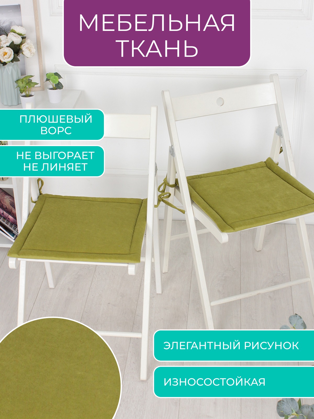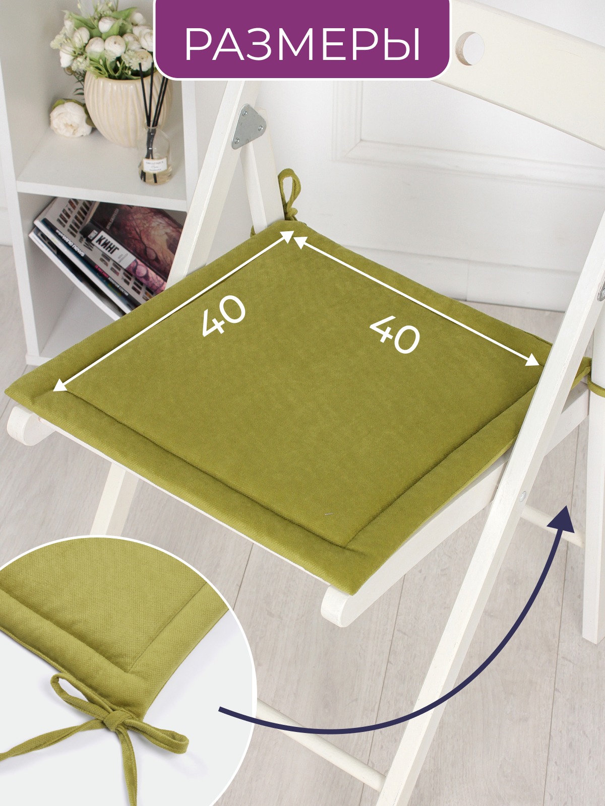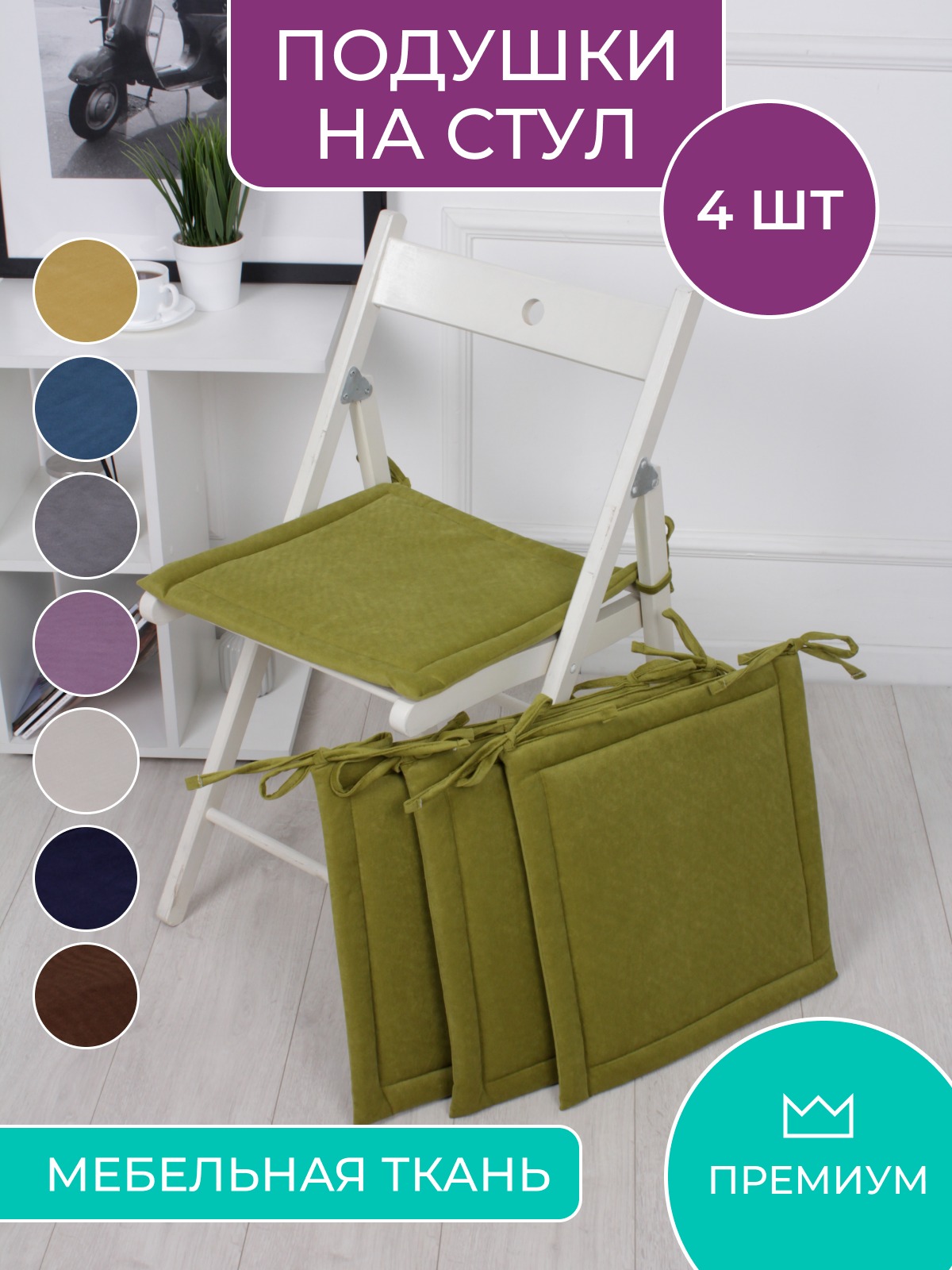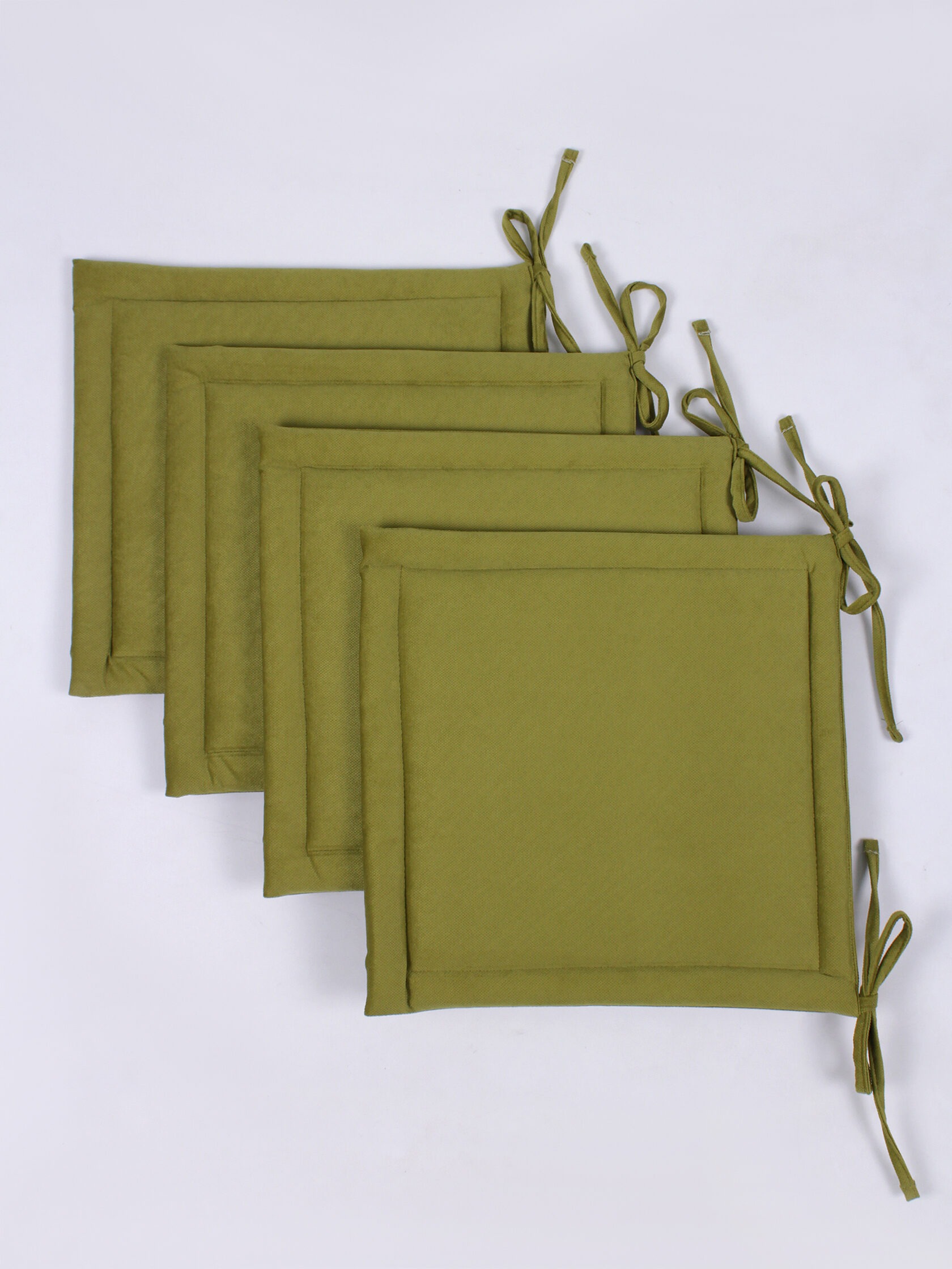 Комплект квадратных подушек на стул с завязками (4 шт.) арт. PKK / Оливковый