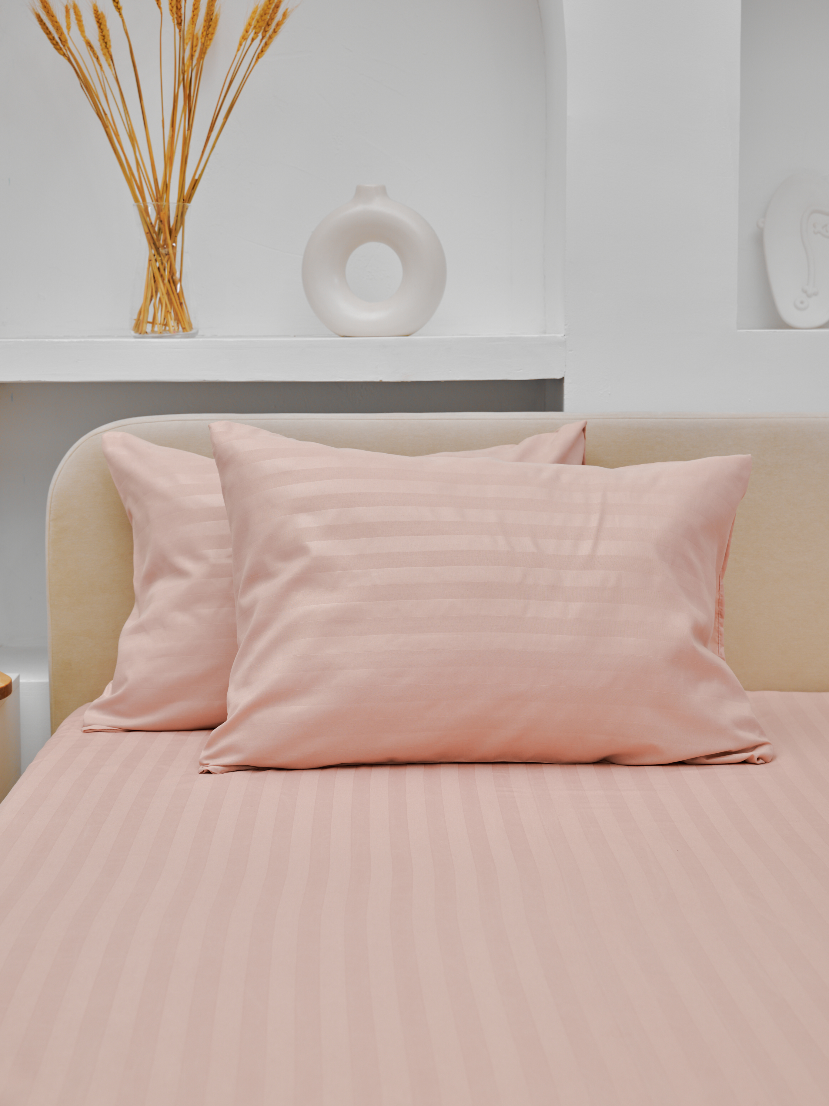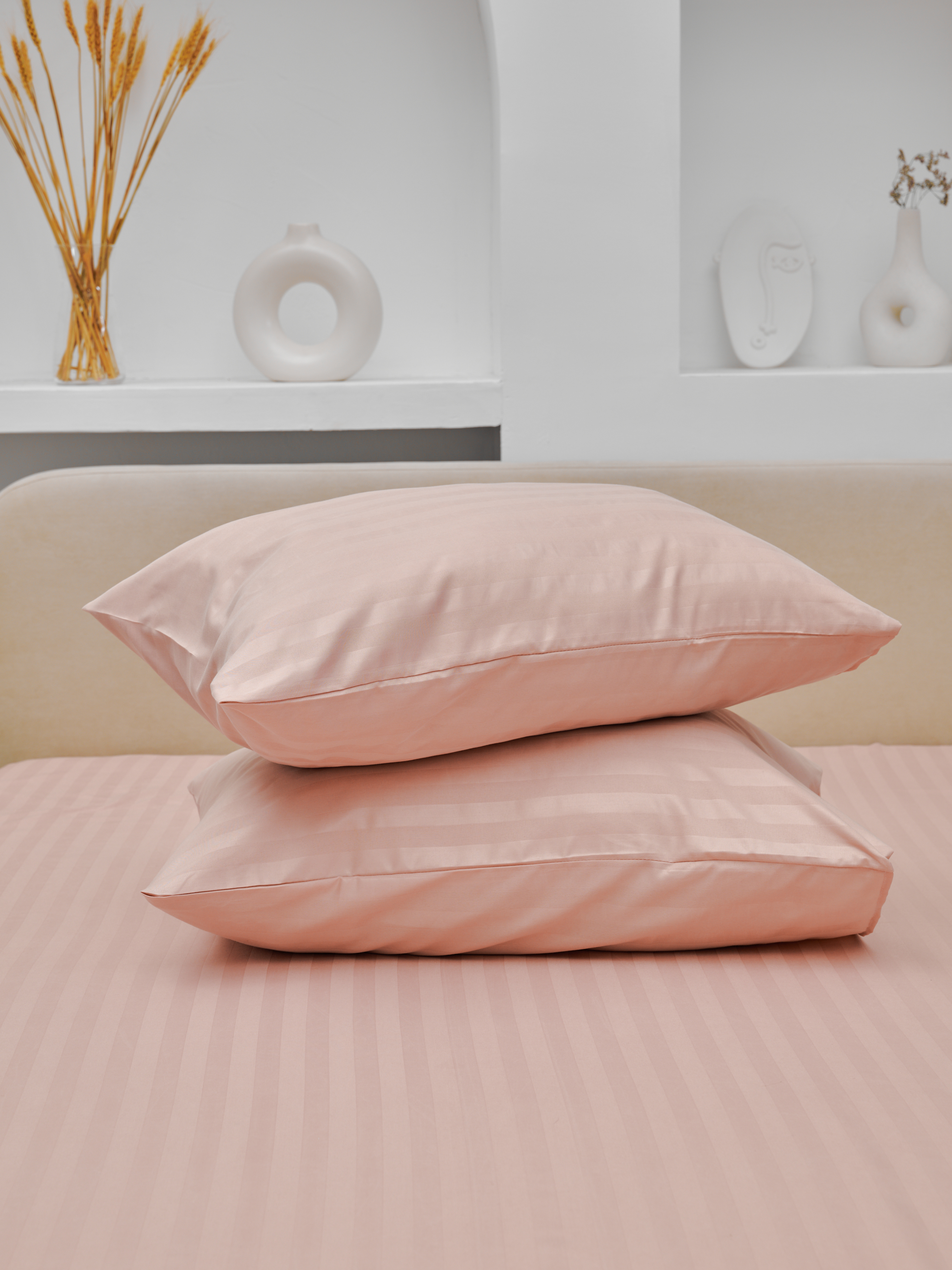 Комплект наволочек микрофибра-страйп / Пудра