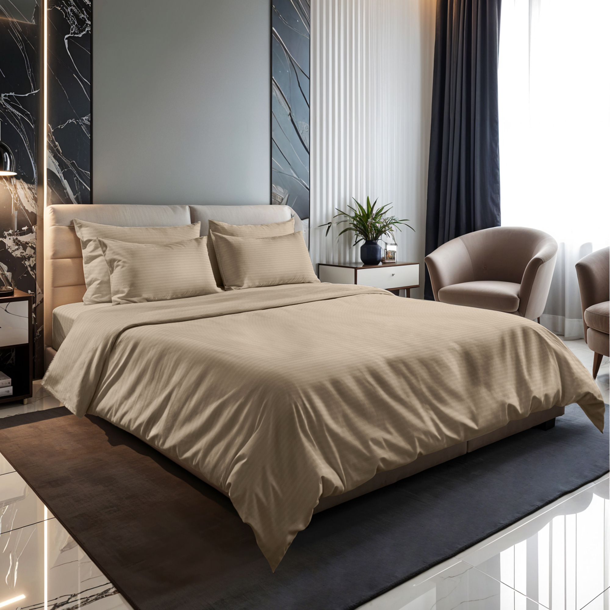 Хорошо дома - современный и демократичный подход к обустройству уютного и комфортного домашнего пространства. Коллекция домашнего текстиля сочетает в себе качественные материалы, неповторимые авторские дизайны и современные методы производства. Постельное белье Хорошо Дома - это современные эстетичные дизайны, высококачественные материалы и передовые технологии производства, приятные тактильные ощущения, комфорт и уют Вашей спальни. Постельное белье Дюна - это элегантное дополнение к интерьеру Вашей спольник. Мягкий бежевый оттенок нежно переливается в лучах света благодаря сочетанию различных фактур ткани, наполняет комнату теплом, добавляет объем и дарит ощущение гармоничного комфорта. Полистрайп – современный стильный материал с приятным блеском и характерным чередование матовых и глянцевых полос. Благодаря особому жаккардовому плетению нитей полотно получается легким и мягким, особенно прочным и практичным в использовании. Ткань из полистрайпа отличается стойкостью и насыщенностью цвета, создаст особый уют в вашей спальне и будет радовать вас долгие годы.