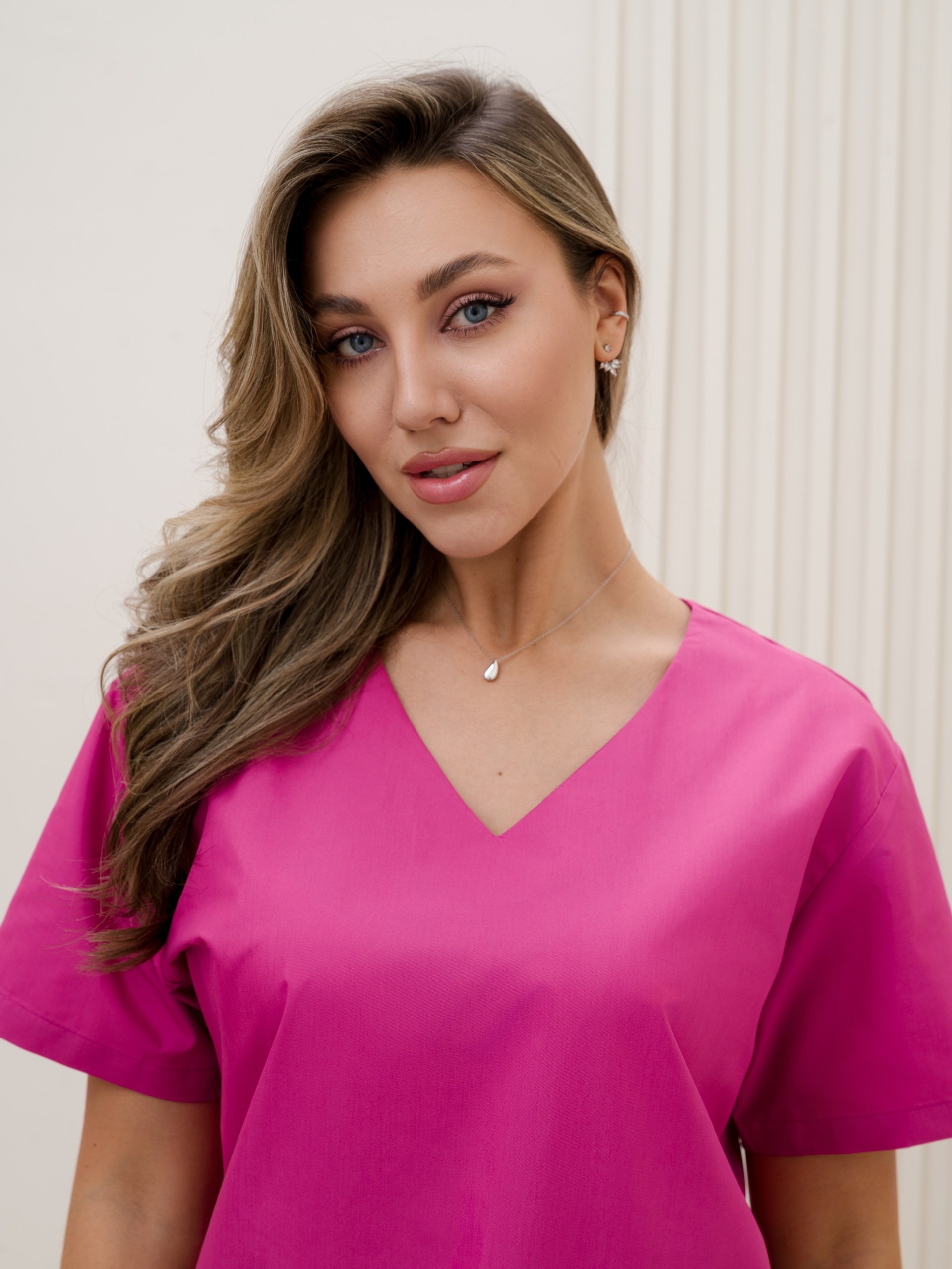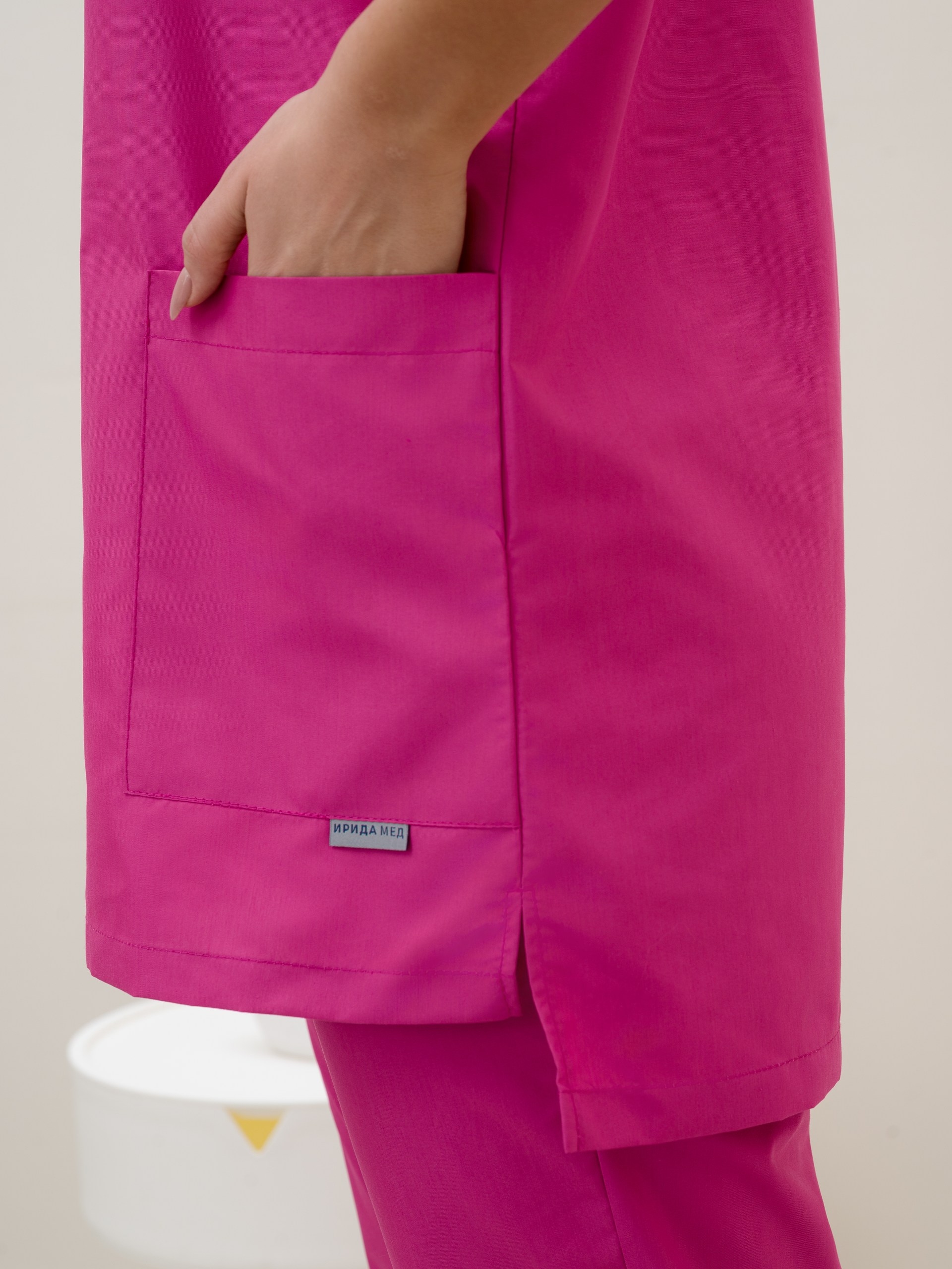 Женский медицинский костюм из ткани Тиси - это спецодежда для медицинского персонала, салонов красоты, массажных кабинетов или стоматологий. Материал Тиси состоит из 35% хлопка и 65% полиэфира, плотность — 120 г/м². Ткань обладает высокой износостойкостью, легко стирается, хорошо пропускает воздух и практична в эксплуатации.
