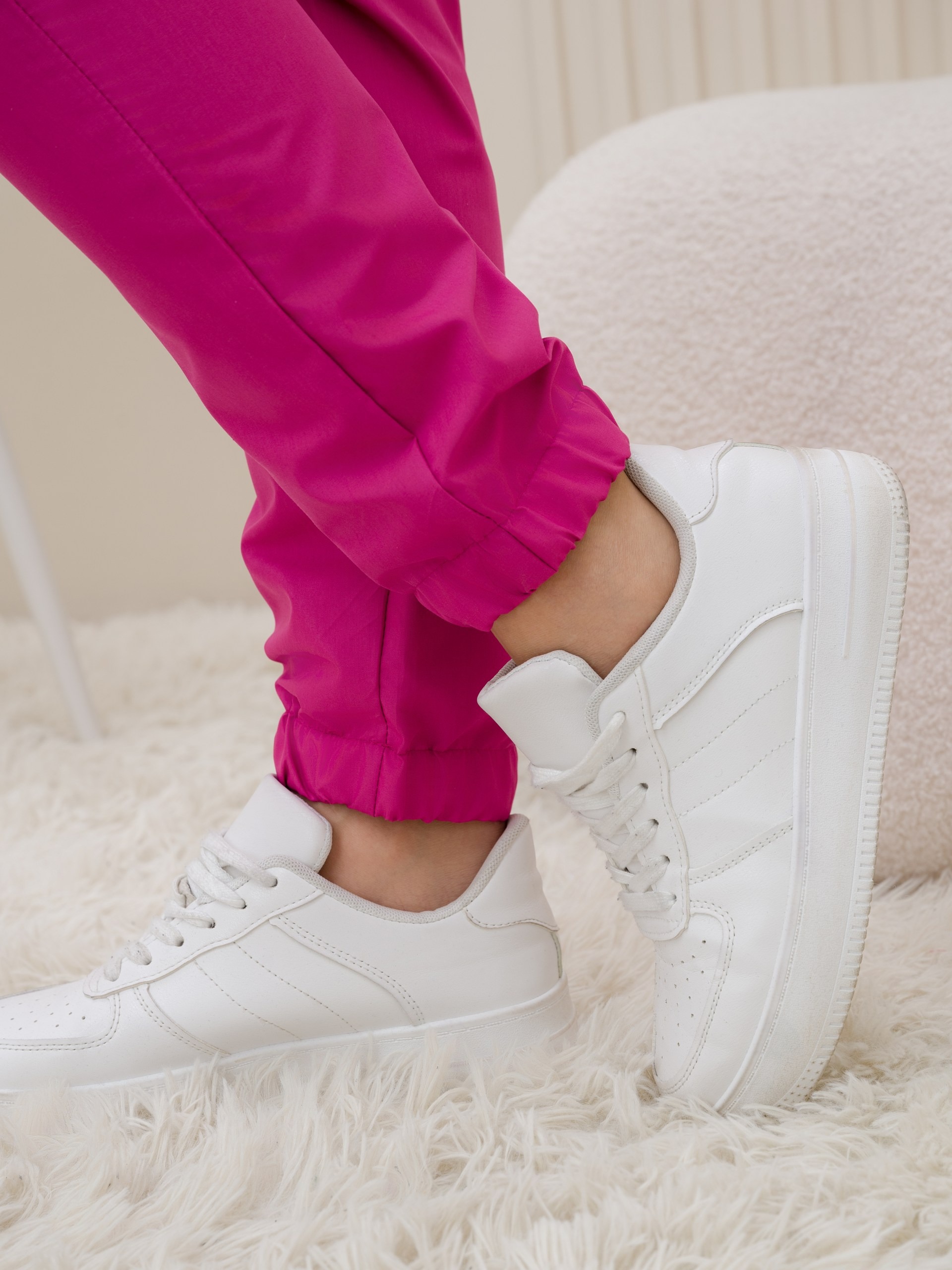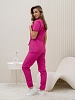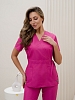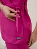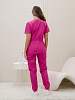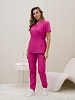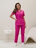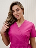 Костюм медицинский жен. М-112-90 ткань Тиси состоит из жакета и брюк. Жакет с короткими рукавами, V-образный вырез, запашной, на кулиске, имеются два боковых накладных кармана. Брюки джоггеры с широкой поясной резинкой.