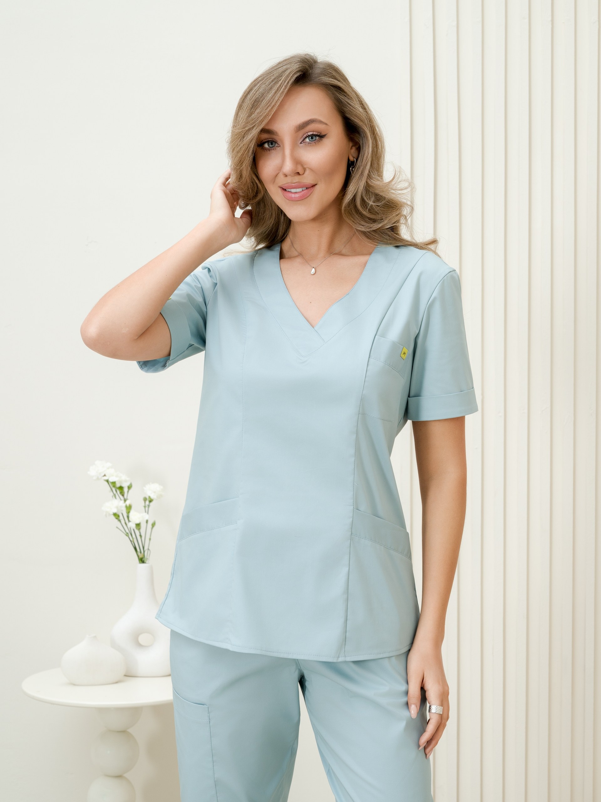 Медицинский костюм М-116-4306 из ткани Элит-145/Стрейч - это женская модель, предназначенная для использования в медицинских учреждениях.