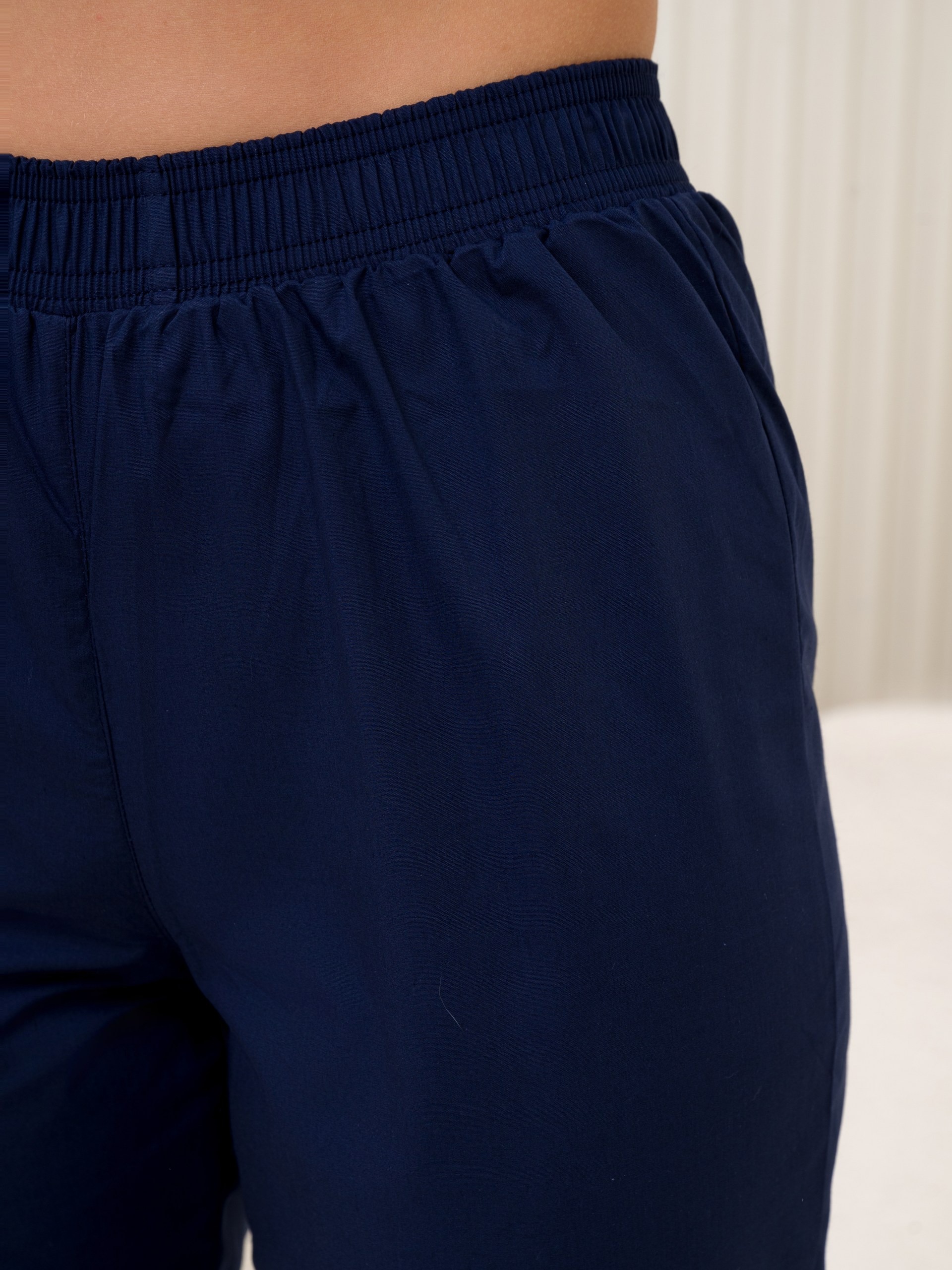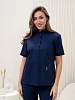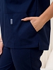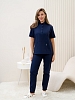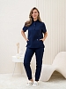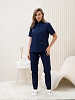 Костюм медицинский женский прямого силуэта, поло. Застежка кнопки, воротник стойка, рукав короткий, 2 накладных кармана, по бокам разрезы. Брюки джоггеры.