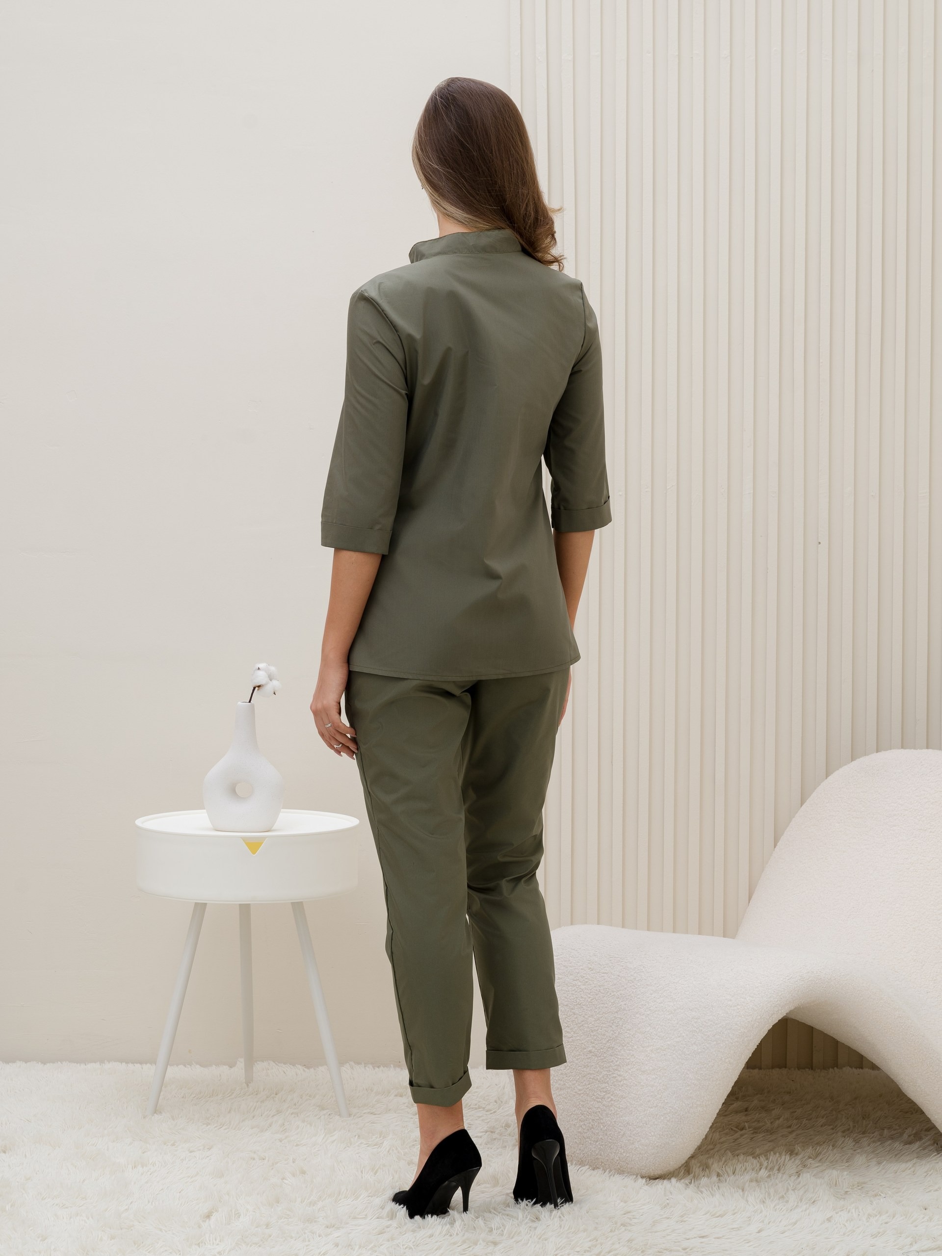 Костюм предоставлен широким размерным рядом: 42 - 64. Стильный женский костюм, чье высокое качество и удобная посадка гарантированы со стороны производителя. В основе изделия - 35% хлопок, 65% полиэстер. Спецодежда свободного кроя, обеспечит легкость и непринужденность в движениях. Униформа состоит из блузы и брюк. Верх с рукавом 3/4 и стильным воротником. Имеет боковые и нагрудные, накладные карманы, которые непременно пригодятся в процессе работы. Застегивается на кнопки. Зауженные брюки 7/8, на удобной резинке в зоне талии. Спецодежда выглядит очень выдержано и эстетично, создаст элегантный и женственный образ. Грамотное сочетание цветовой гаммы с интересным дизайном сделает ваш рабочий образ по-настоящему достойным и стильным. Изделие подойдет для разных возрастов и с разным типом фигуры.