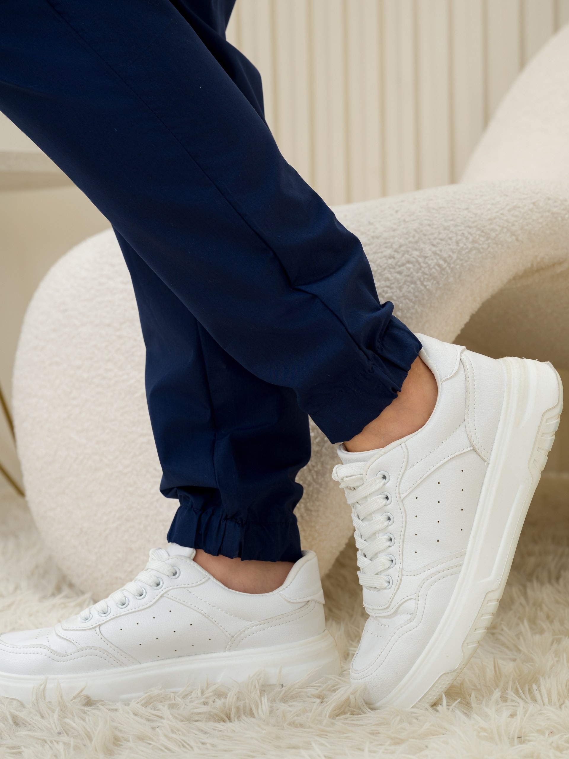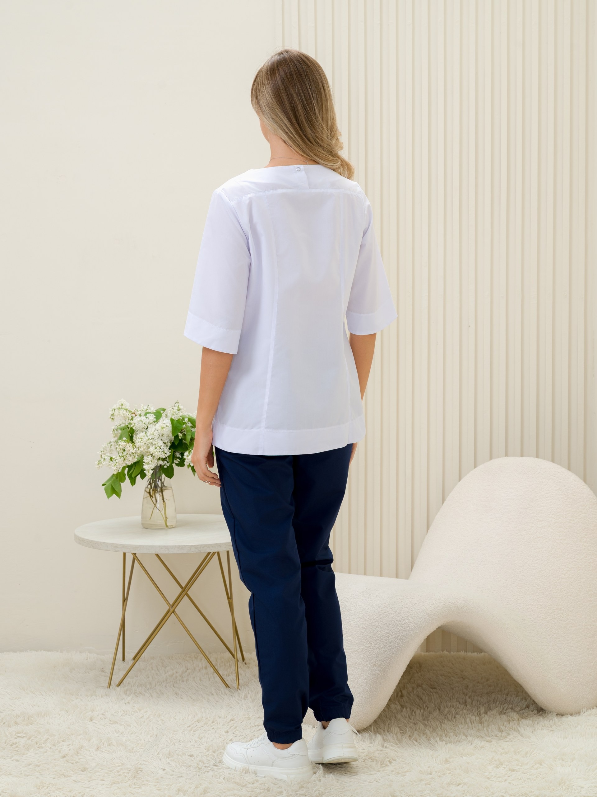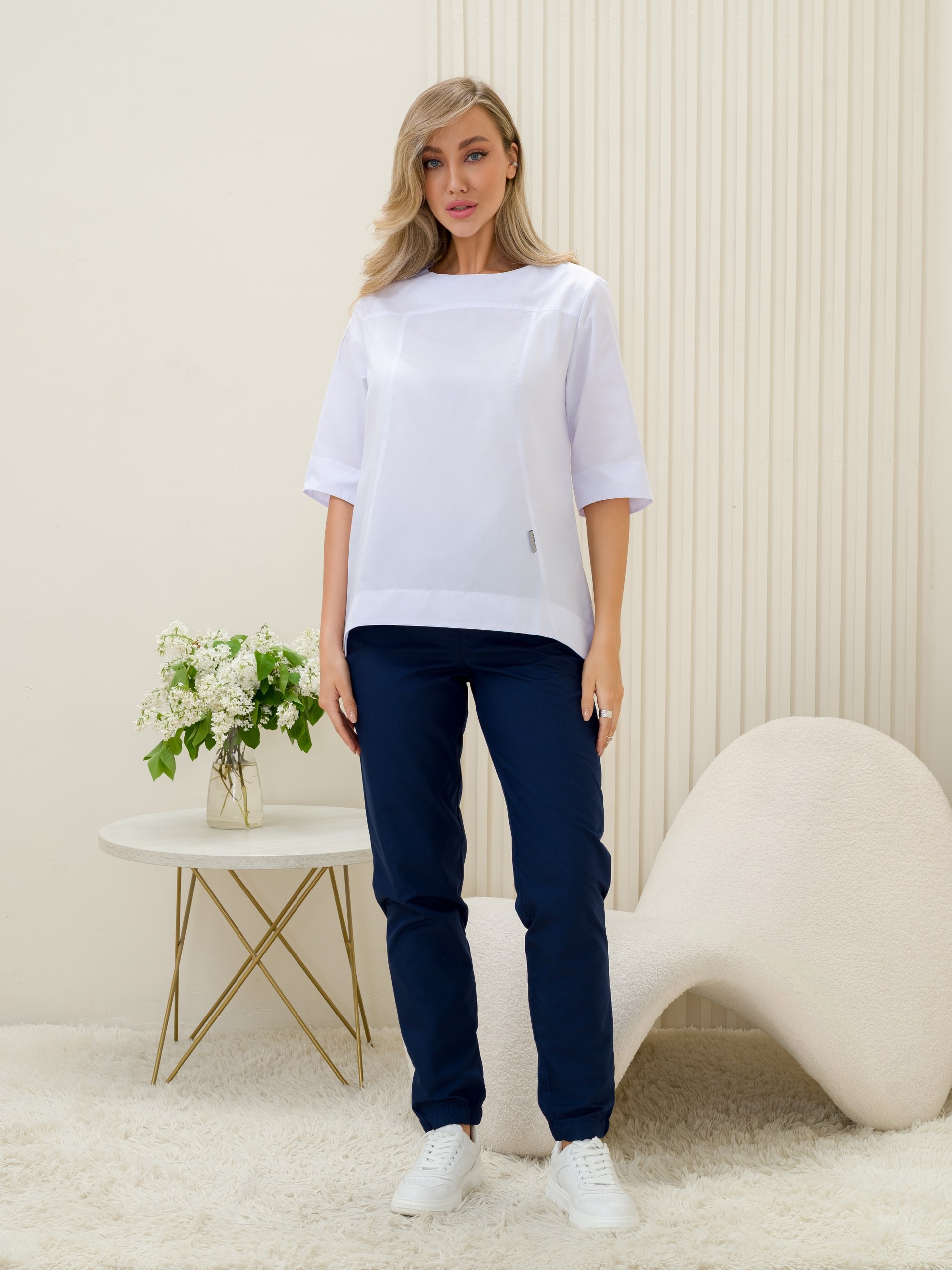 Костюм медицинский представлен широким размерным рядом: 42-56, в том числе большие размеры. Женский медицинский костюм состоит из брюк джоггеров и блузы свободного кроя. Это отличный выбор для тех, кто любит сочетать практичность и стиль. Круглая горловина, рукав три четверти, карманы на брюках. Брюки заужены к низу, на манжете резинка. Костюм пошит из текстильного материала составом полиэфир 65%, хлопок 35%. Благодаря высокому качеству, ткань особенно устойчива к истиранию. Гладить его нужно при t не более 90С. Отбеливание изделие запрещено, стирка рекомендована при t не более 40С. Наша медицинская одежда - это комфорт и стильный внешний вид в одном изделии.