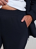 Костюм женский из трикотажного полотна «футер-двунитка» в единой цветовой гамме, состоящий из куртки и брюк. Куртка - прямого силуэта, свободная с длинными втачными рукавами, воротником «стойкой». Полочка состоит из двух частей соединенных по-косой, с накладными карманами и центральной бортовой застежкой на тесьму «молния». Низ рукавов обработан эластичной тесьмой, низ изделия с подгибкой с вложение эластичной тесьмы и регулируется по длине с помощью фиксаторов.Брюки - длинные, классического покроя, на притачном поясе с эластичной тесьмой внутри и карманами в боковых шва, на задних половинах обработаны две вытачки в области линии талии.