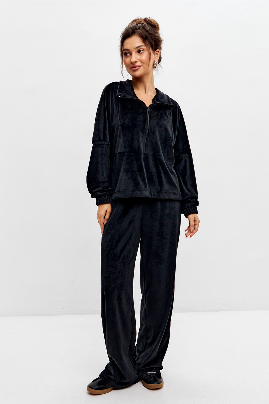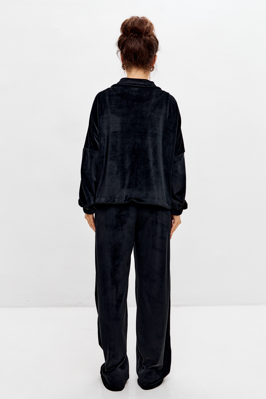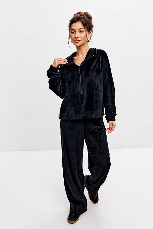 Костюм женский Легенда, выполненный из мягкого и комфортного велюра-стрейч, состоит из толстовки на молнии и брюк. Модель отличается стильным дизайном и практичностью в носке.