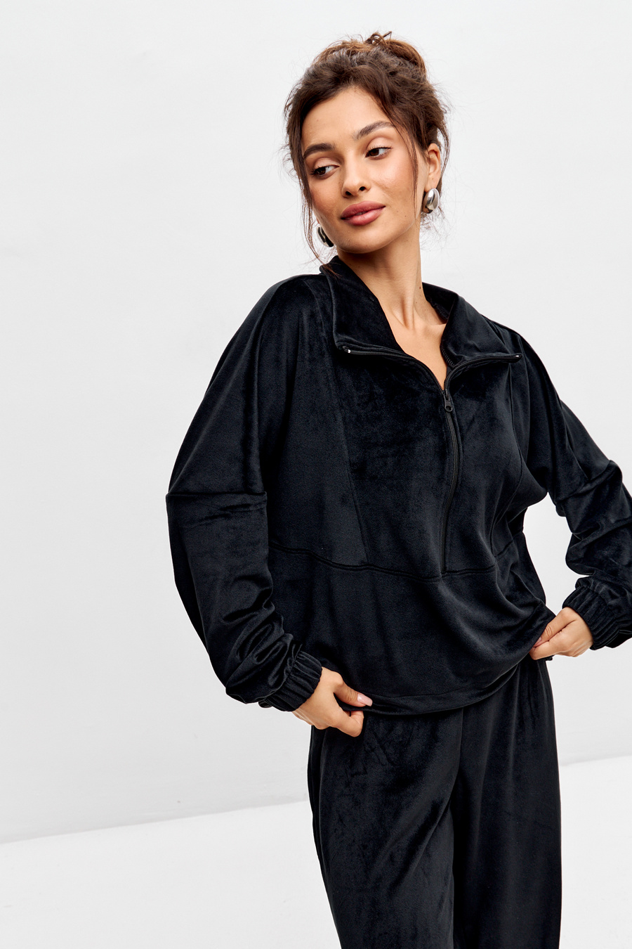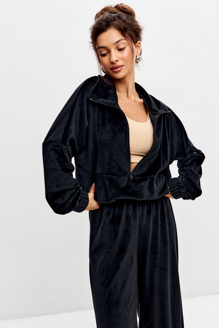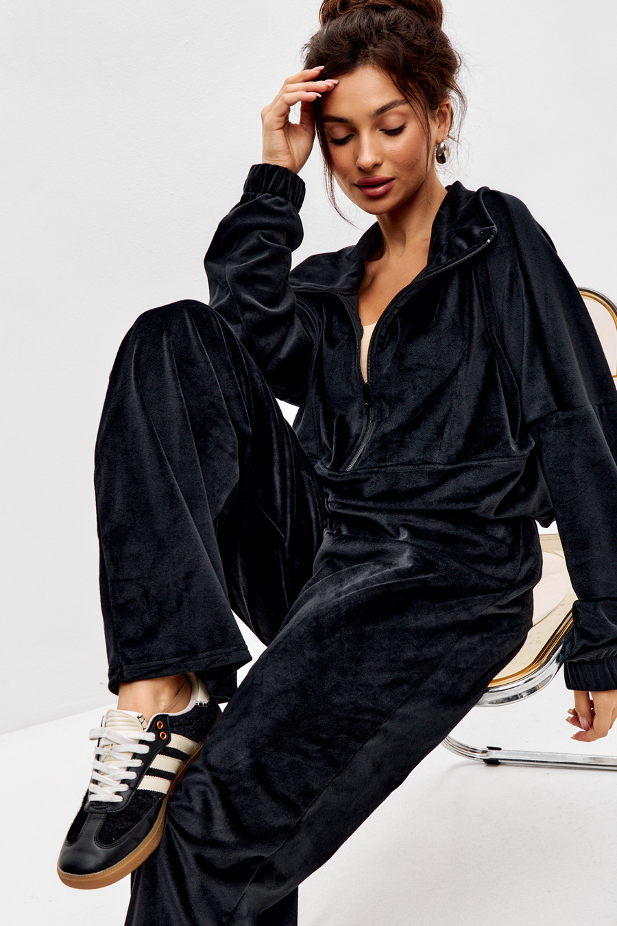 Костюм женский Легенда, выполненный из мягкого и комфортного велюра-стрейч, состоит из толстовки на молнии и брюк. Модель отличается стильным дизайном и практичностью в носке.