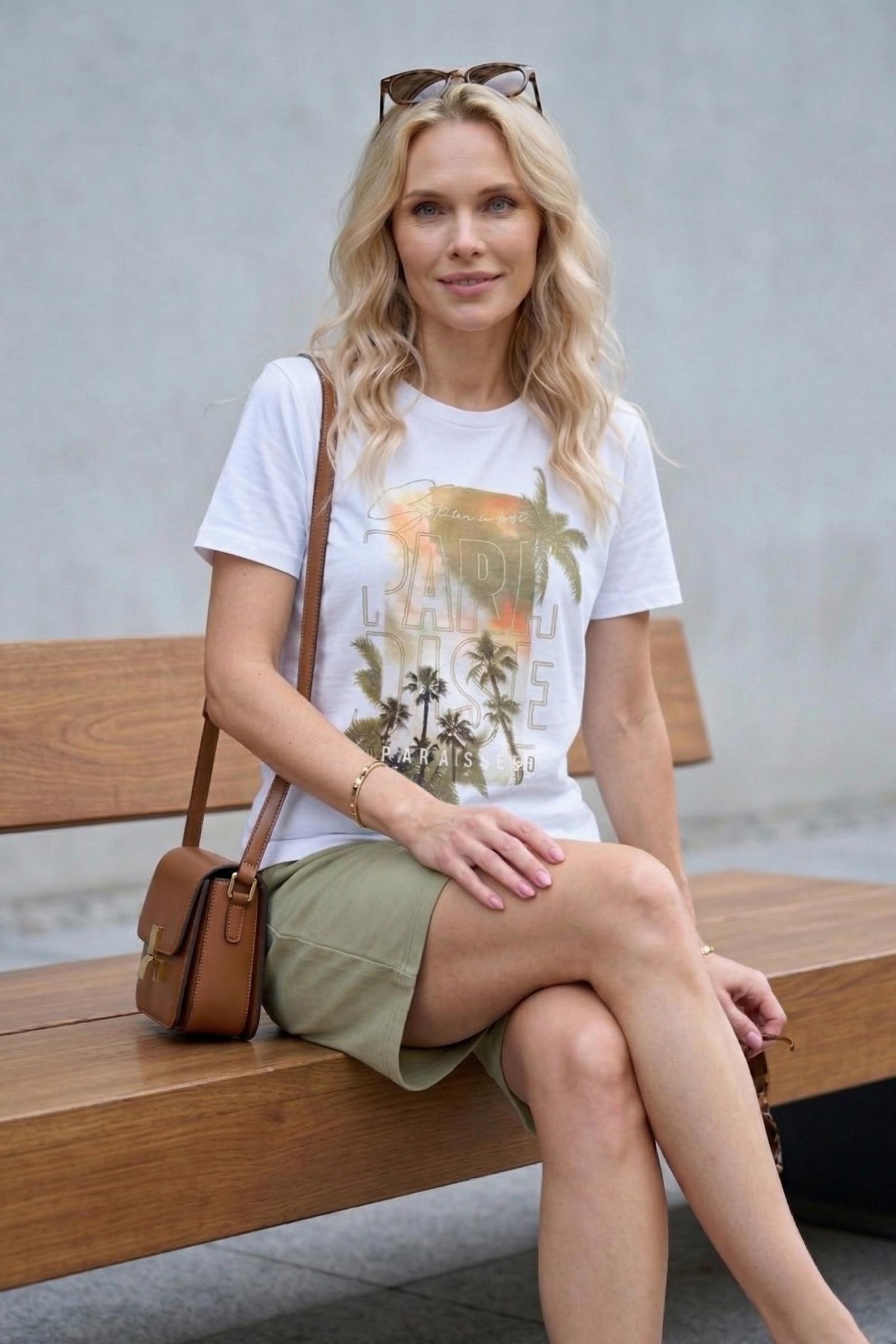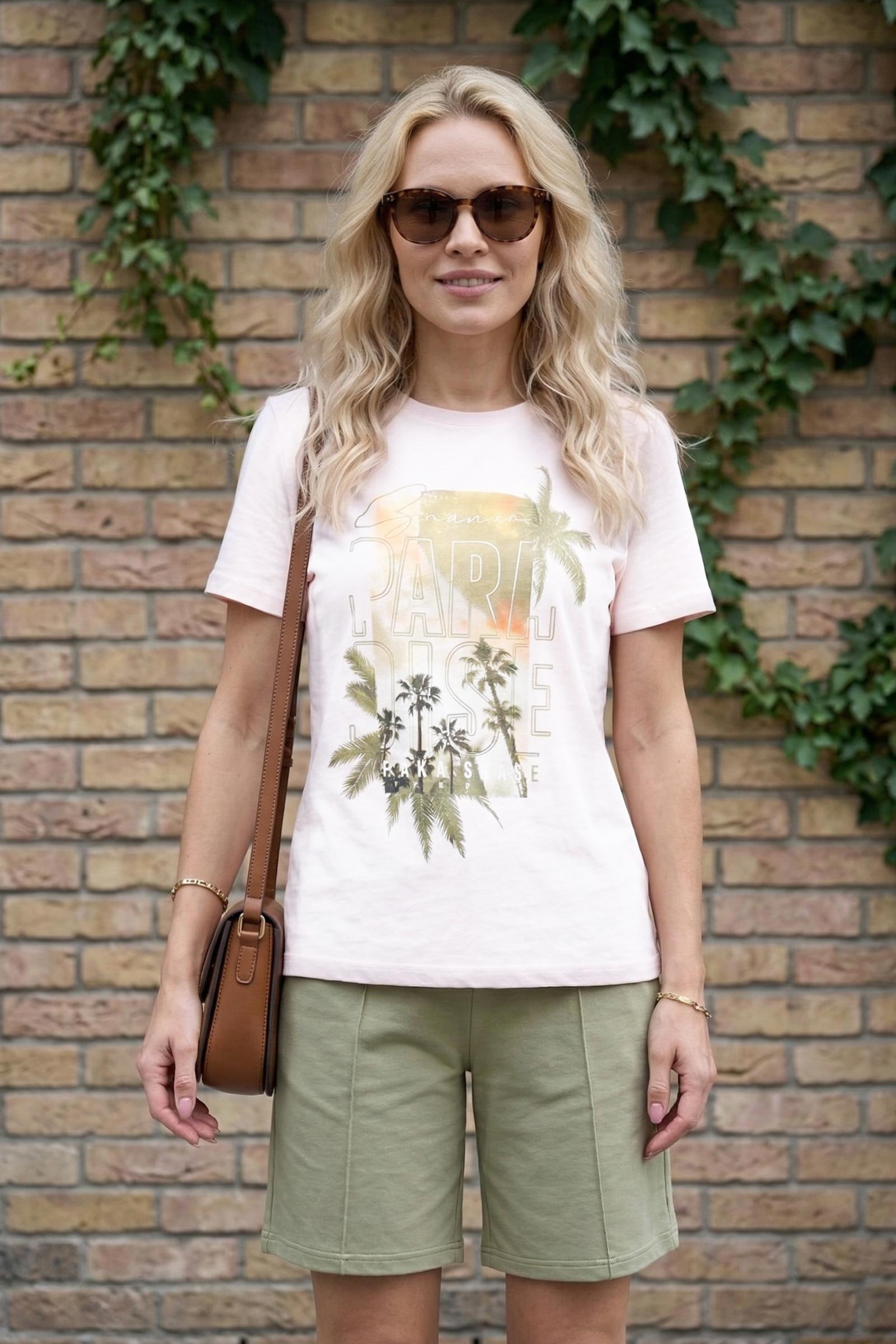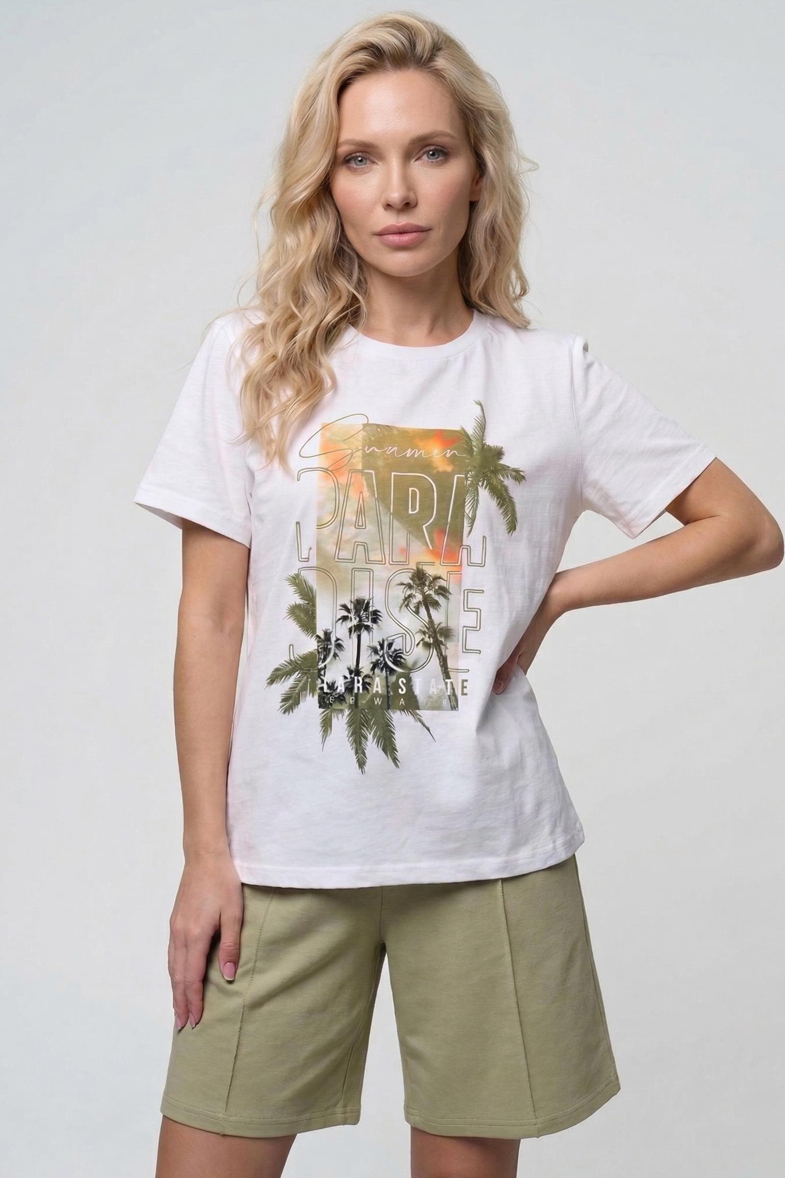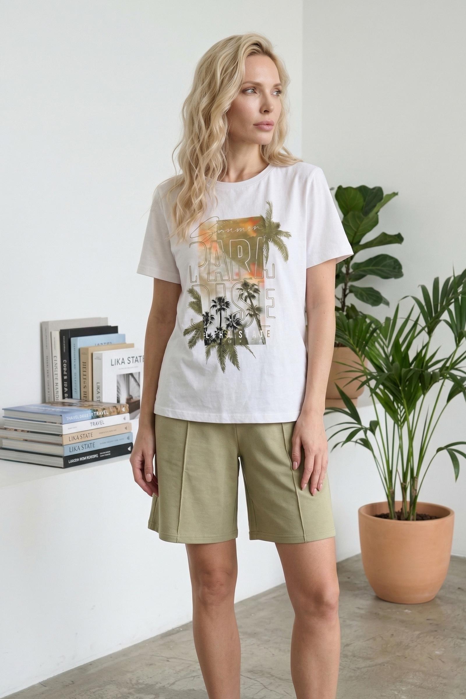 Сочные цвета костюма Парадиз наполняю Вашу жизнь яркими красками. Комплект состоит из базовой футболки с дизайнерским принтом и модных шорт комфортной длины с прошитыми стрелками и кармашками. В таком костюме Вы привлечете к себе внимание. Также в нем можно пойти на прогулку, отправиться на экскурсию, в отпуск или носить дома.