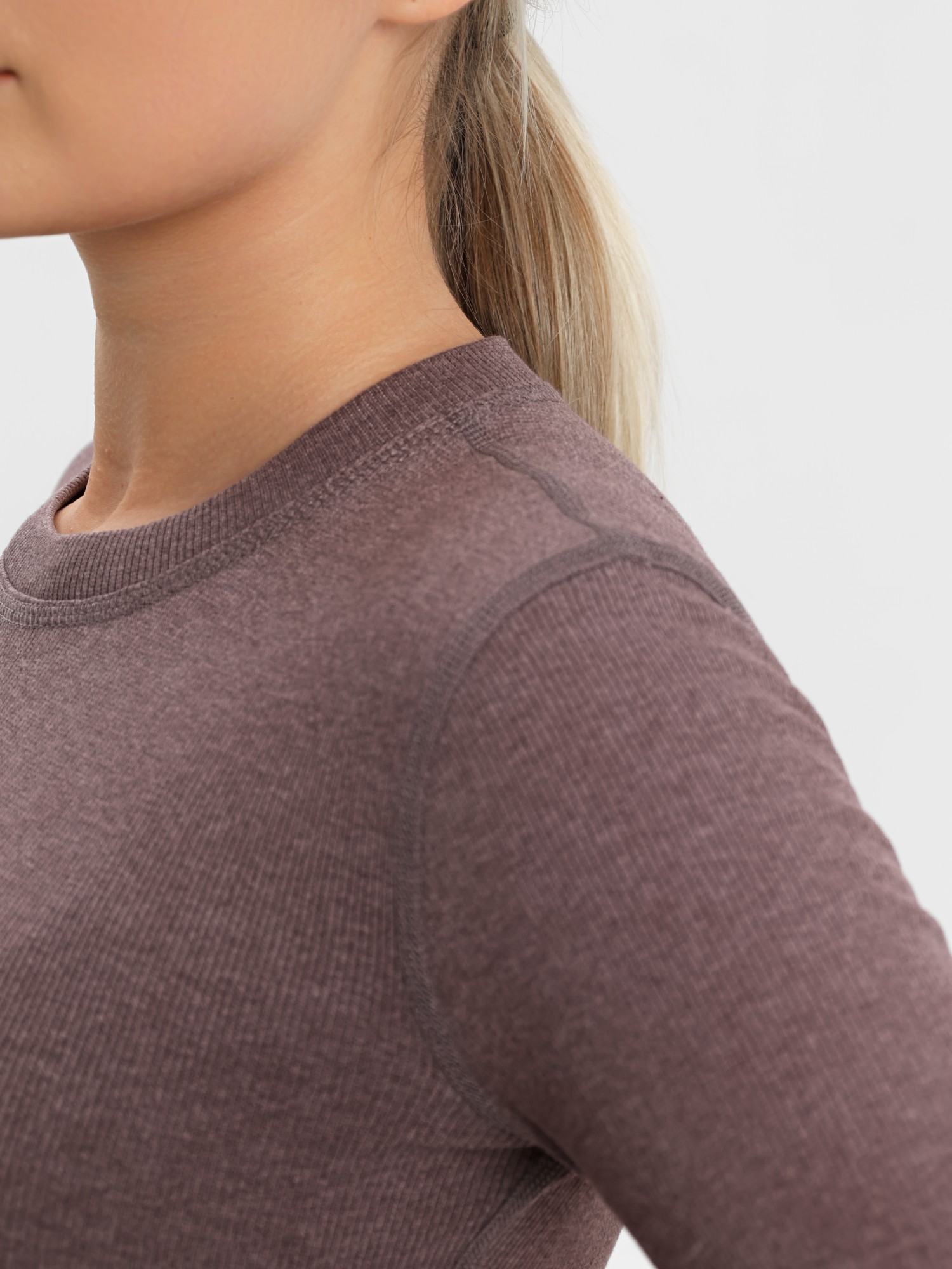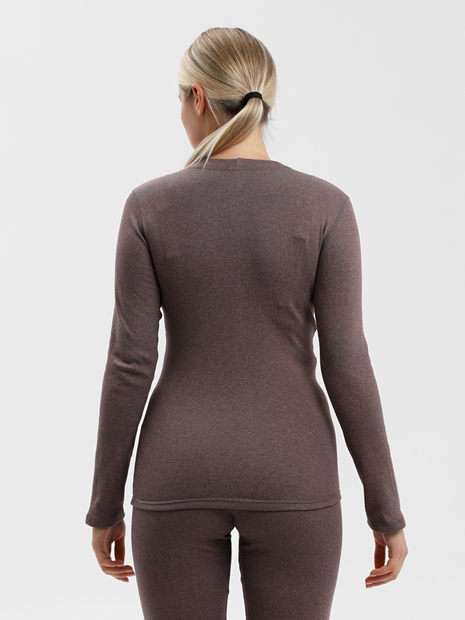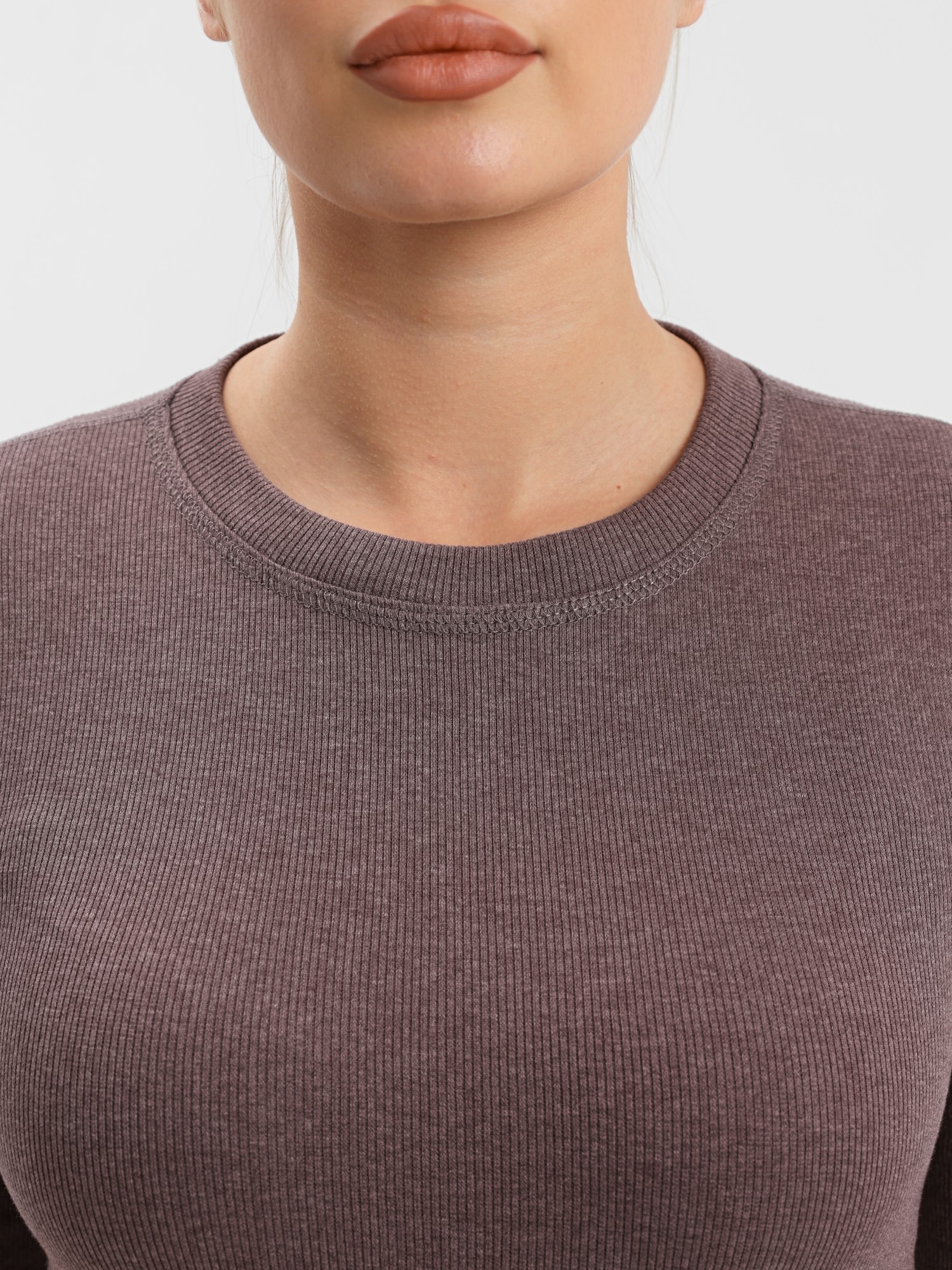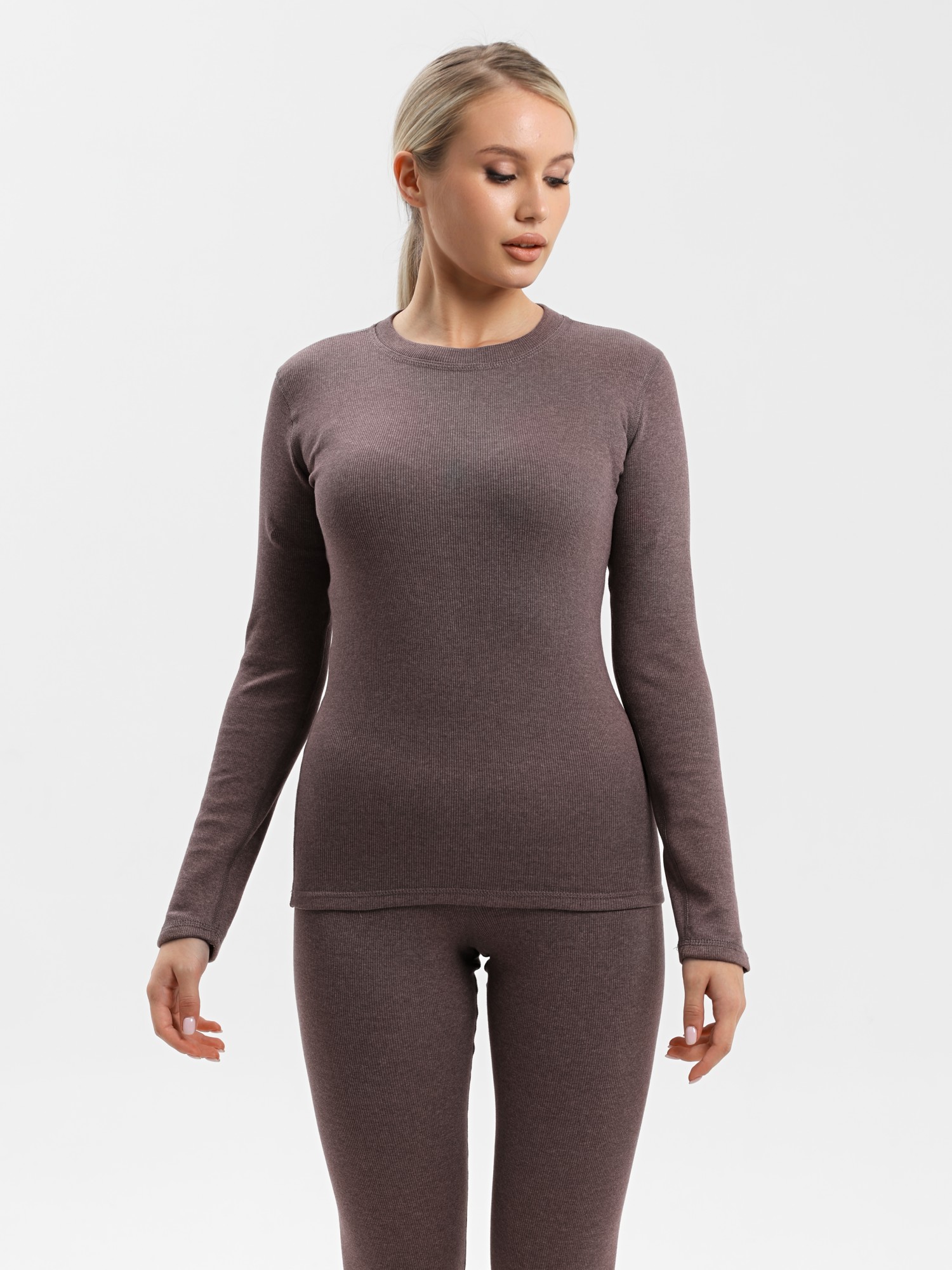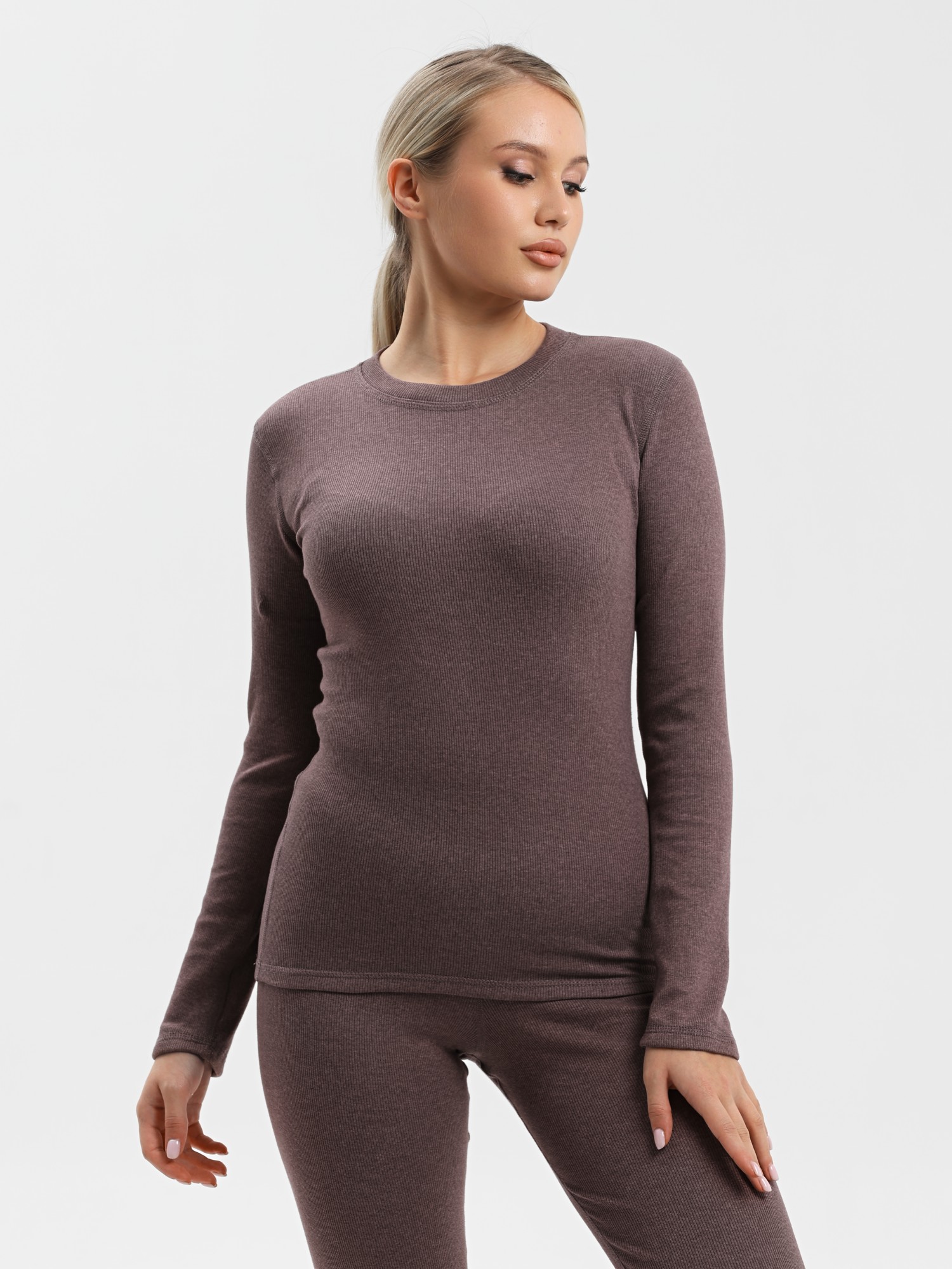 Футболка – прилегающего силуэта, с длинными втачными рукавами, горловиной овальной формы, обработанной втачной планкой из основного материала. Подгибка низа изделия и рукавов, шва втачивания планки в горловину обработаны пяти ниточной строчкой в цвет основного материала.