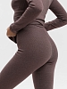Брюки – длинные, прилегающего силуэта, с эластичной тесьмой по талии. Подгибка верхнего и нижних срезов обработаны пяти ниточной строчкой в цвет основного материала.
