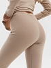 Брюки – длинные, прилегающего силуэта, с эластичной тесьмой по талии. Подгибка верхнего и нижних срезов обработаны пяти ниточной строчкой в цвет основного материала.