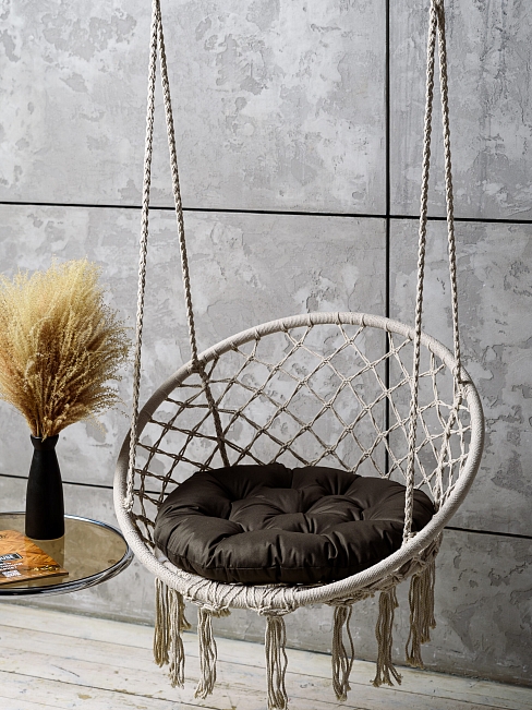 Круглая подушка сидушка безупречно дополнит образ для садовой мебели, привнесет уют и одновременно сделает кресла-качалки более комфортными. Подушка для сидения уличная в меру объемная, а наполнитель достаточно упругий. Вы можете использовать подушку не только на качели подвесные для улицы или для сада, но и для дома, положить на веранде в кресло качалку, в беседке на скамью или использовать ее на лужайке для гамака, около бассейна и рядом с шезлонгом. По-настоящему мягкая сидушка станет незаменимым участником комфортной жизни. Напольная подушка для качелей будет необходимой для ребенка в детской, чтобы можно было спокойно разместиться на пол или на детское подвесное кресло. Также большая подстилка для отдыха непременно пригодится в домашнем кинозале, в кресло гамак или в кресло кокон. Подушка для садовых качелей сделана из плотной износостойкой ткани, которая хорошо удерживает наполнитель, сохраняет форму подушки и обеспечивает долгий срок службы изделия.