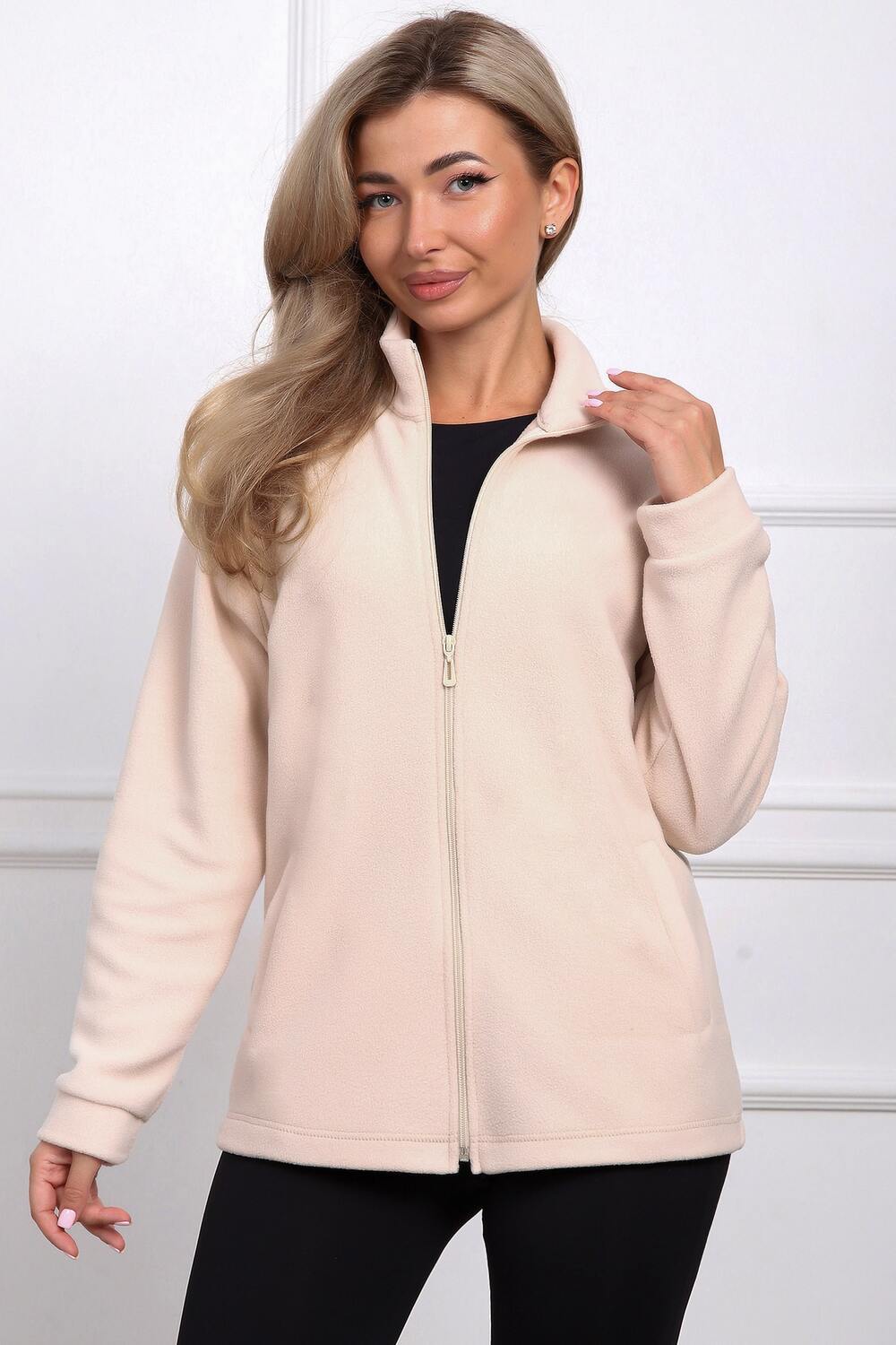 Куртка женская из флиса. Силуэт прямой. Длинна до середины бедра. Воротник стойка. Карман листочка. Рукав втачной, на манжете. Линия плеч чуть спущена. Застежка на тесьму молнию. Отделкой служат отделочные строчки с застилом.