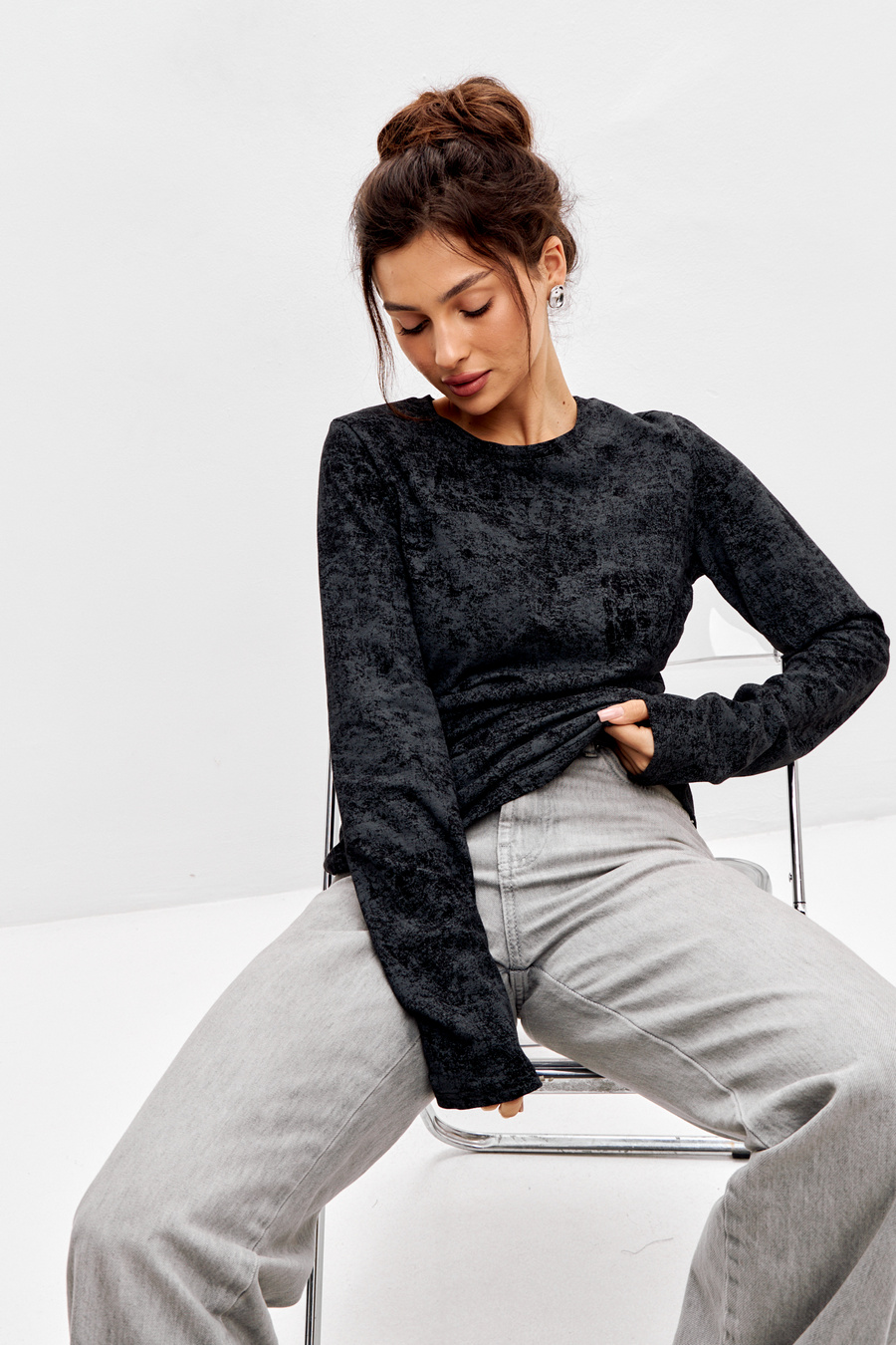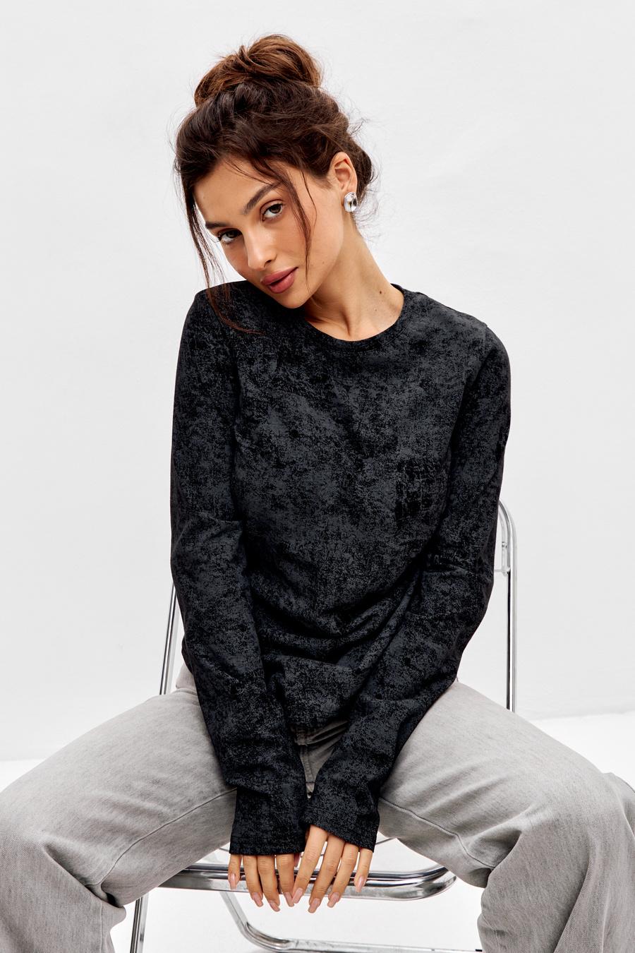 Лонгслив женский из кулирки / Чёрный