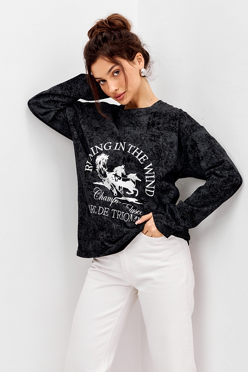 Лонгслив женский из кулирки оверсайз / Черный макси