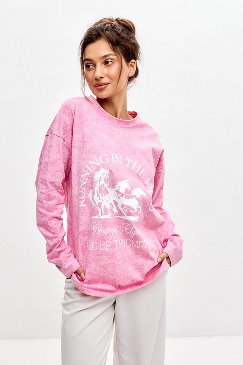 Лонгслив женский из кулирки оверсайз / Розовый макси