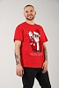 Футболка мужская классического покроя: с короткими втачными рукавами, горловиной овальной формы, обработанной втачной планкой, и принтом в центре переда, выполненным в технике шелкографии. По шву втачивания планки в горловину настрочена отделочная строчка на двухигольной машине. неижние срезы рукавов и изделия обработаны подгибкой.