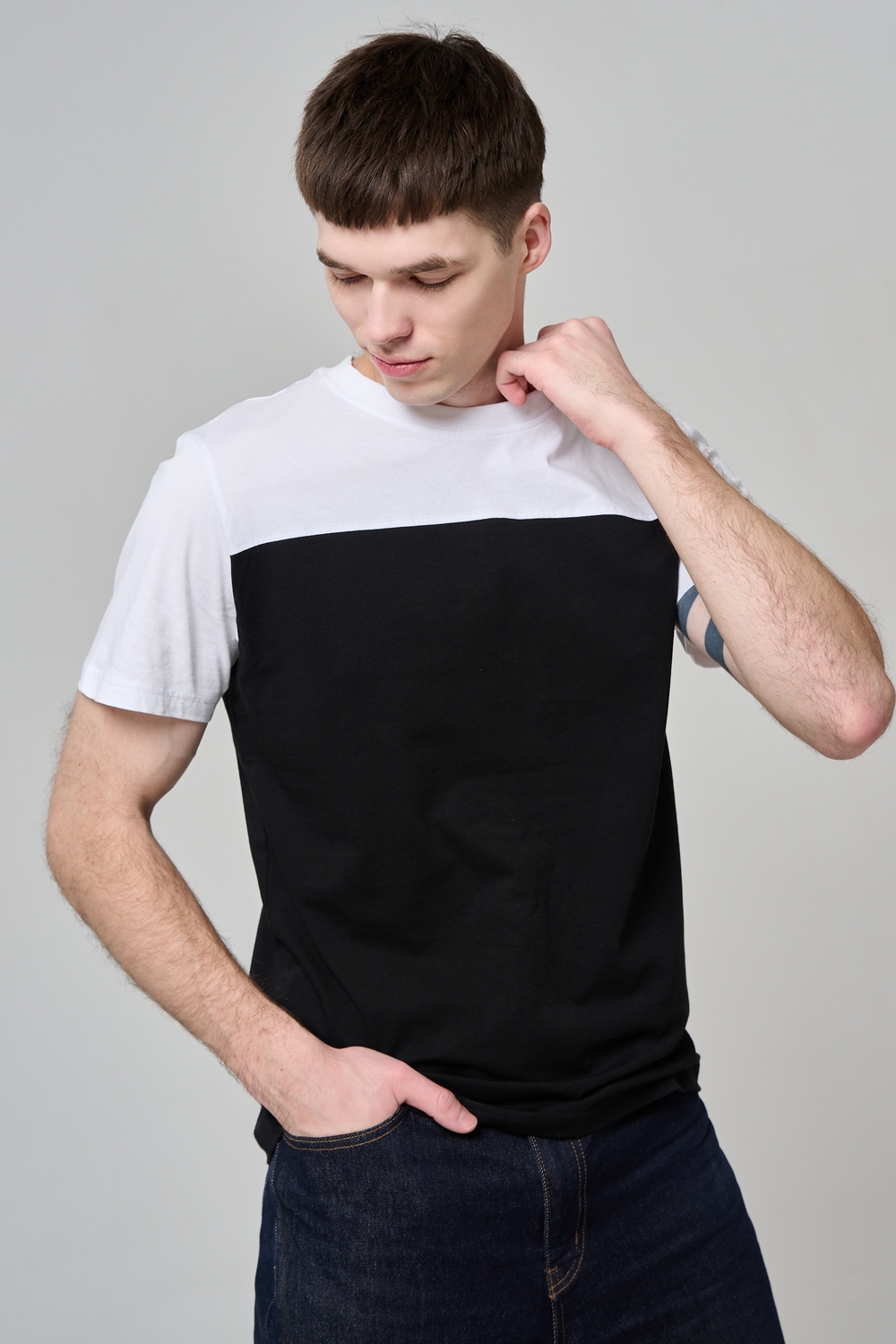 Современные мужские футболки прямого кроя, выполненные из мягкой и приятной на ощупь ткани. Двухцветный дизайн с контрастной вставкой на плечах и рукавах придаёт моделям стильный и динамичный вид. Классический круглый вырез горловины обеспечивает комфорт посадки. Идеальный выбор для повседневного гардероба, легко сочетаются с джинсами и брюками, подойдут как для активного отдыха, так и для городской прогулки.