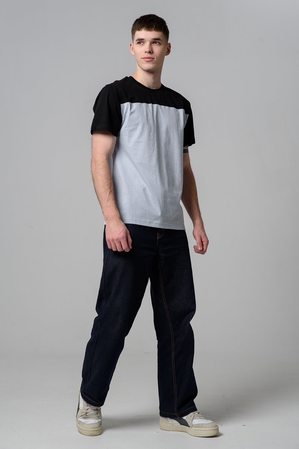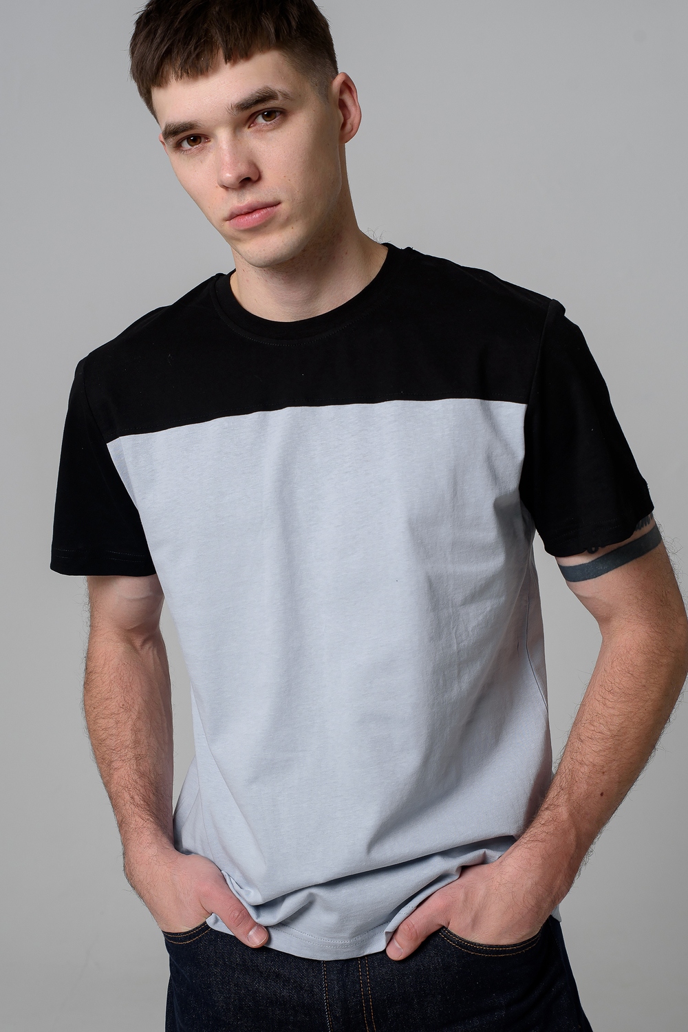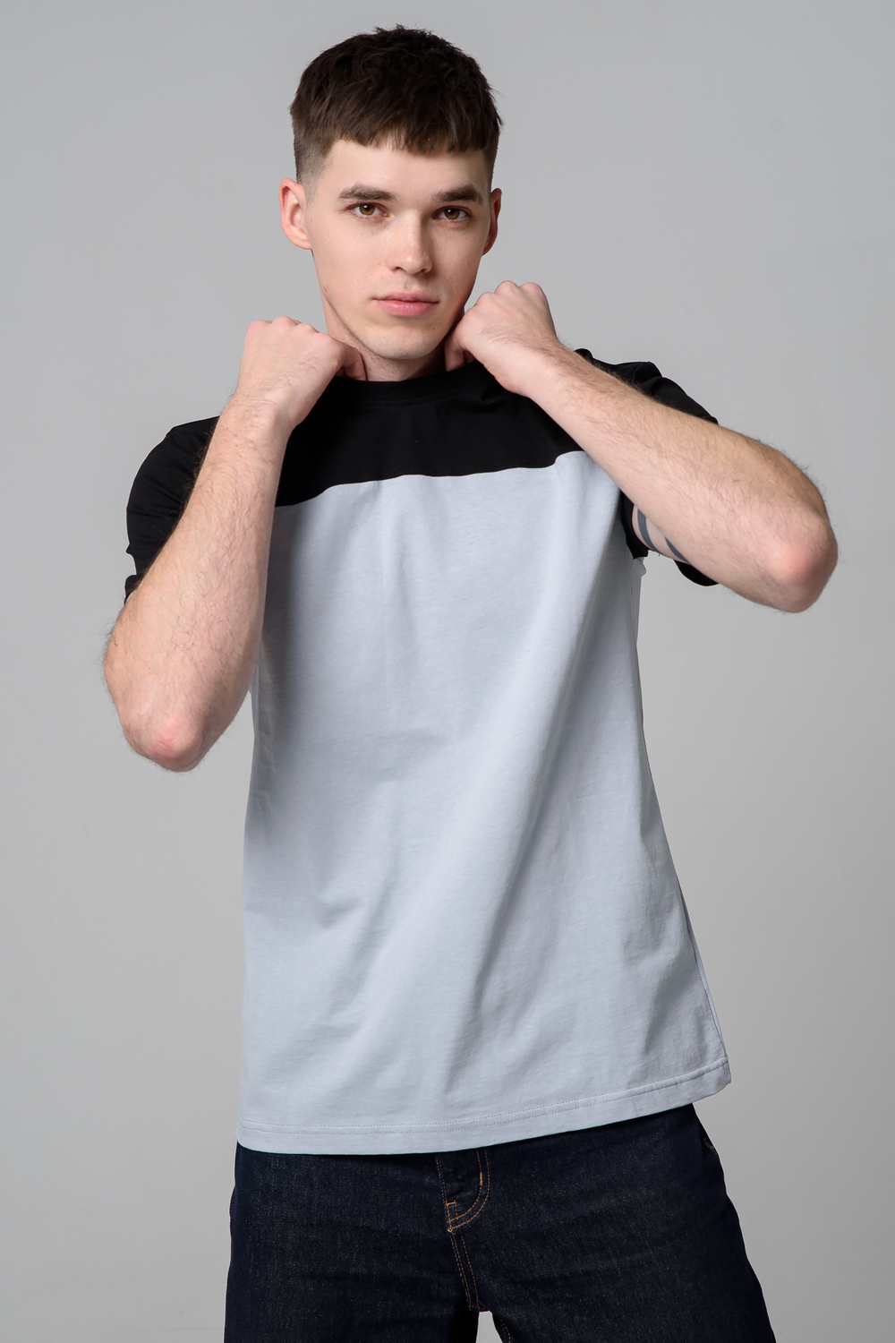 Современные мужские футболки прямого кроя, выполненные из мягкой и приятной на ощупь ткани. Двухцветный дизайн с контрастной вставкой на плечах и рукавах придаёт моделям стильный и динамичный вид. Классический круглый вырез горловины обеспечивает комфорт посадки. Идеальный выбор для повседневного гардероба, легко сочетаются с джинсами и брюками, подойдут как для активного отдыха, так и для городской прогулки.