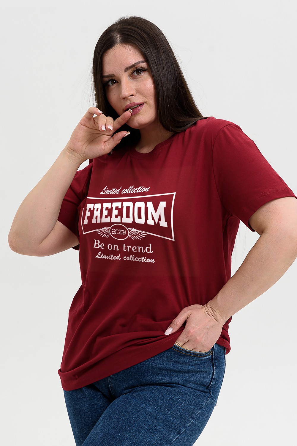 Футболка прямая, свободная, средней длины, с округлой горловиной. Рукав короткий. Горловина обработана эластичной обтачкой. Размер на вшивной этикетке возможен двойной, ориентируйтесь по меньшему размеру. В цвете изумруд возможен разнотон.