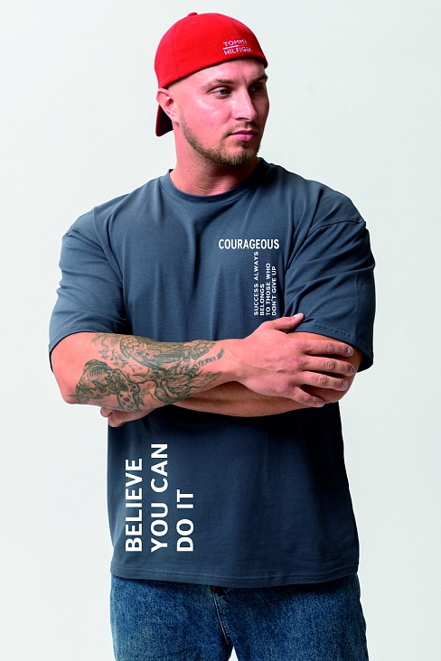 ХИТ сезона весна-лето! Стильная и модная футболка со спущенными плечом для мужчин создана, чтобы вписаться в дух времени. Она представляет собой оверсайз-модель со спущенными рукавами, которые придают ей особый шарм и оригинальность. Футболка подходит как для дома и отдыха, так и для активных тренировок. Высокая плотность 200гр/куб.м., материал кулирка с лайкрой. Широкий размерный ряд до 66 размера.