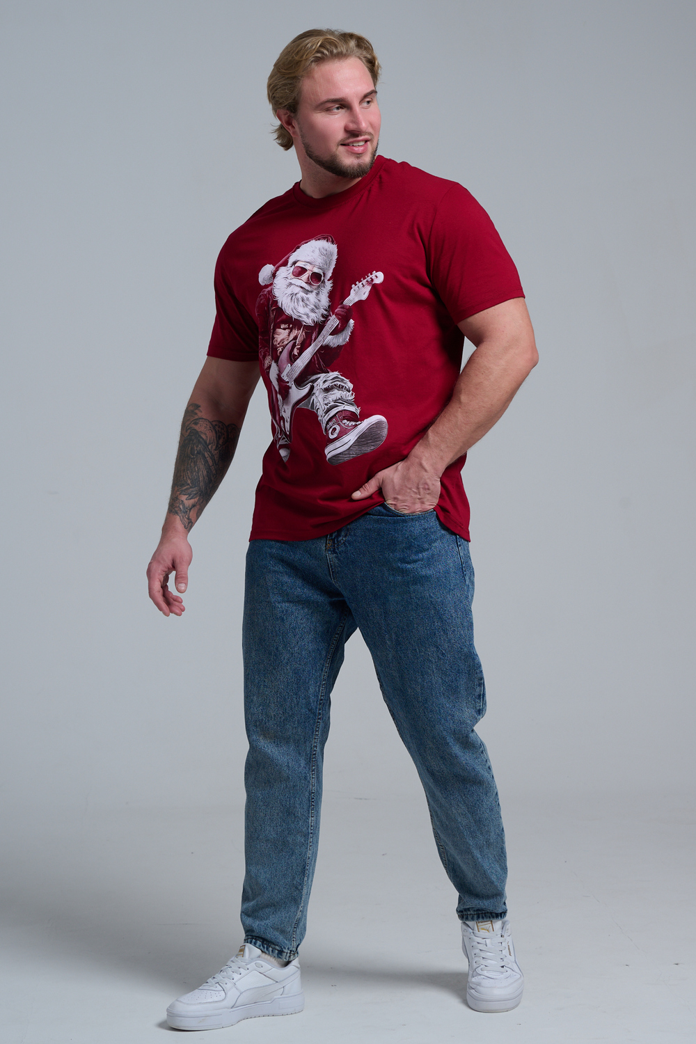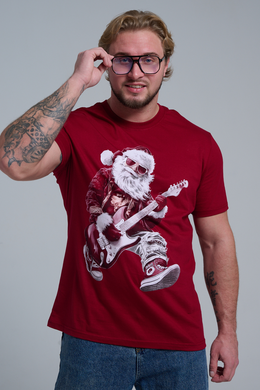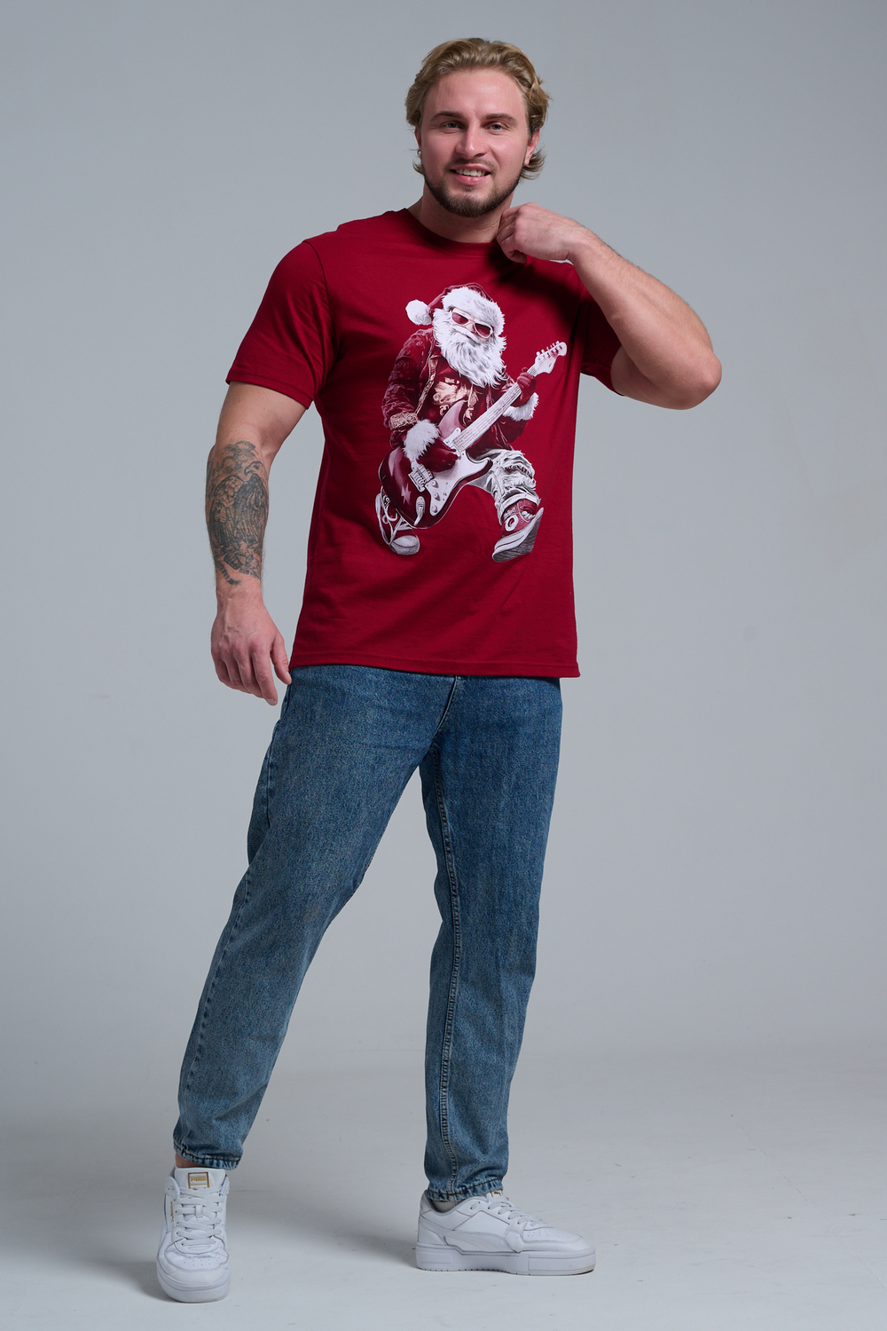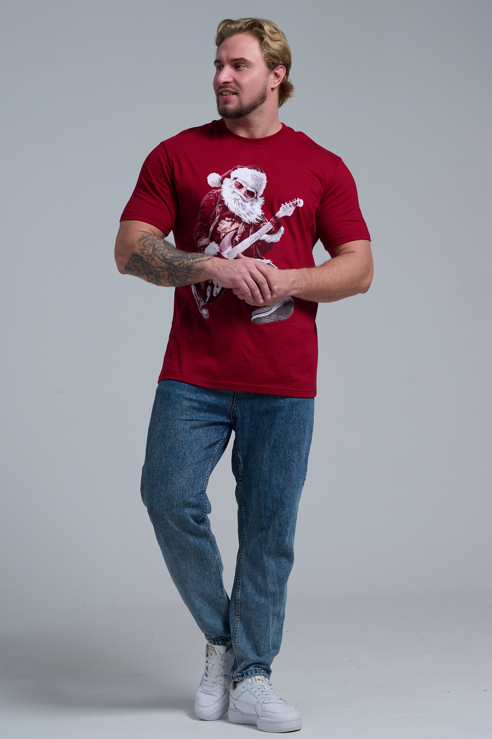 Мужская футболка 8581 / бордо+Д мороз с гитарой
