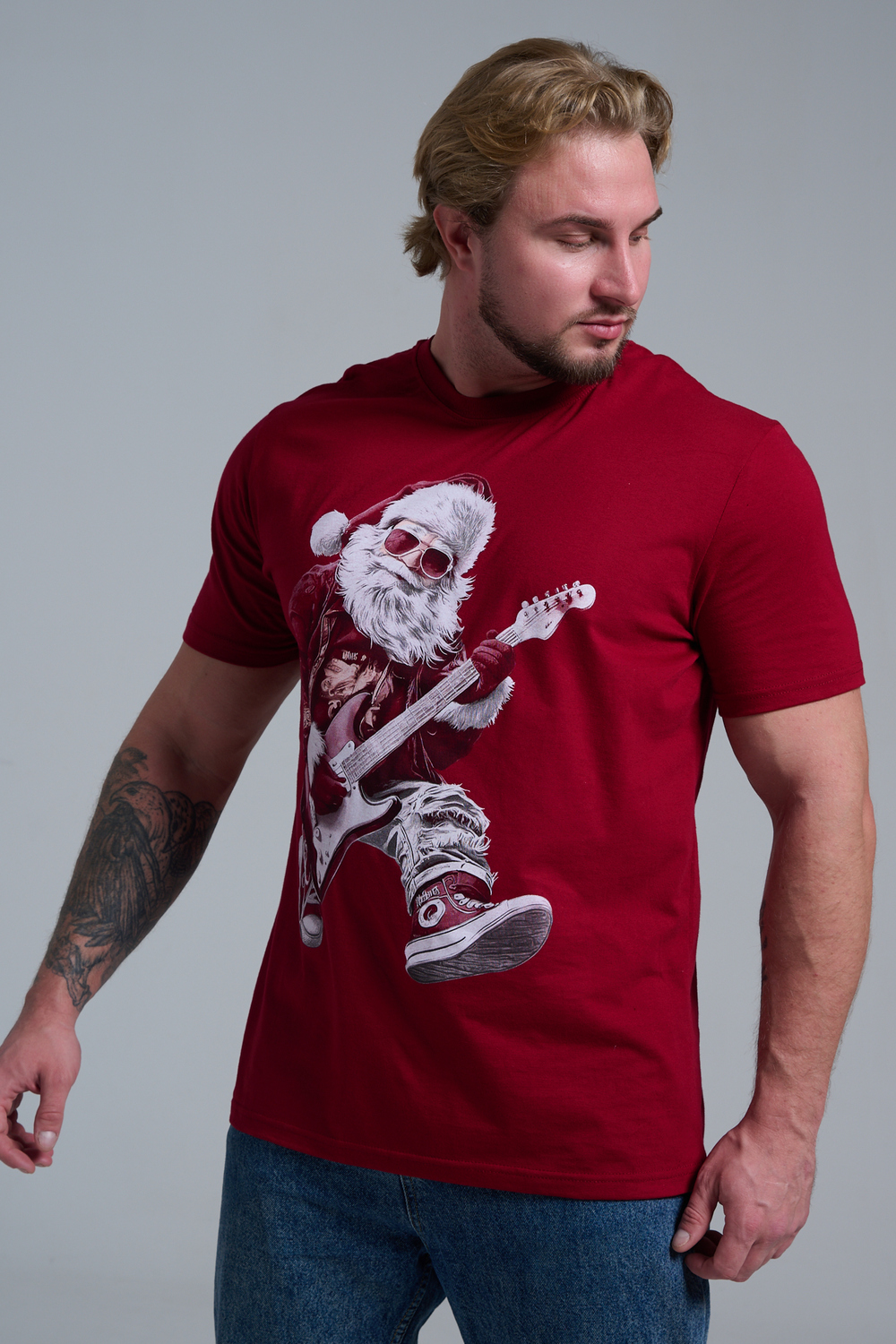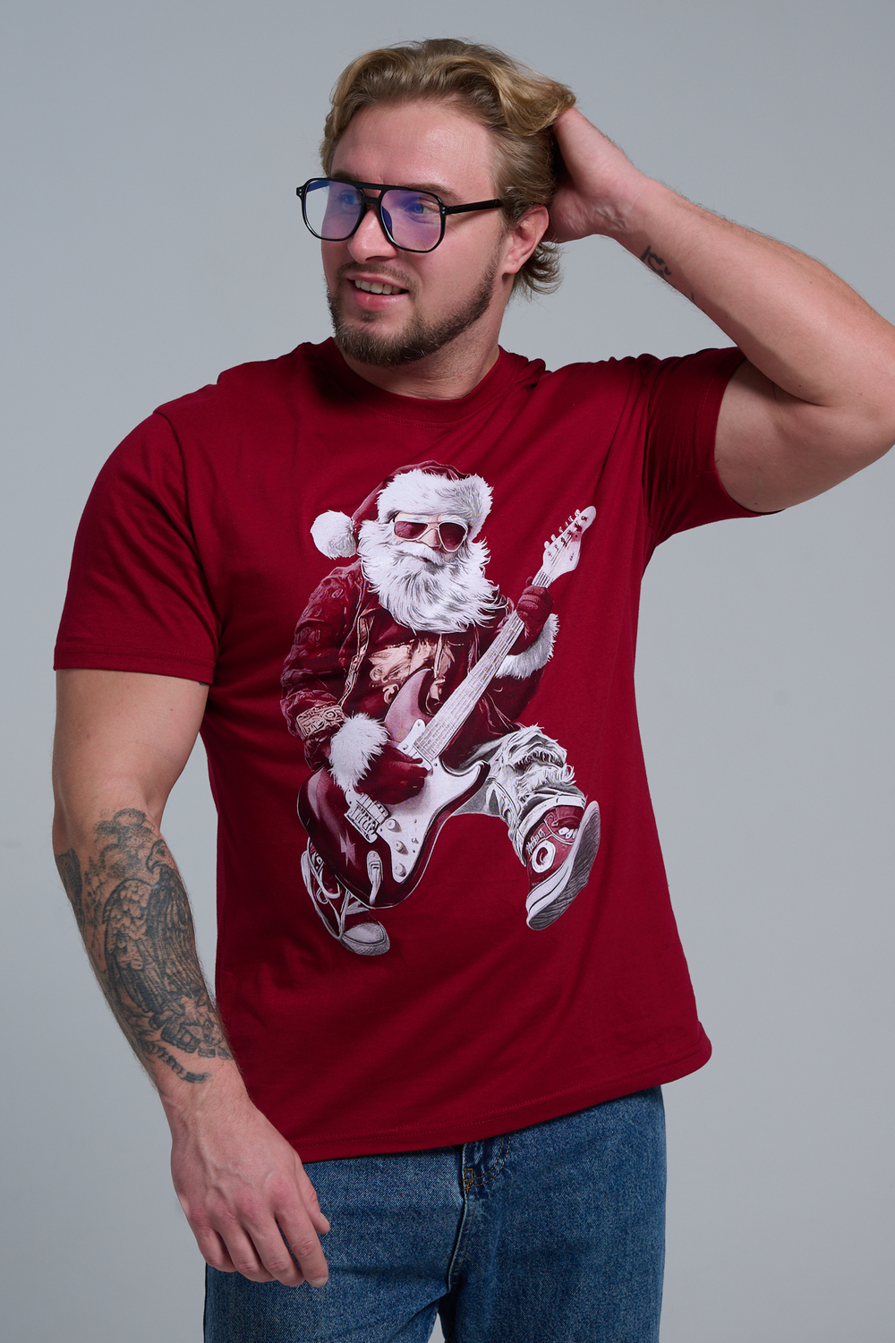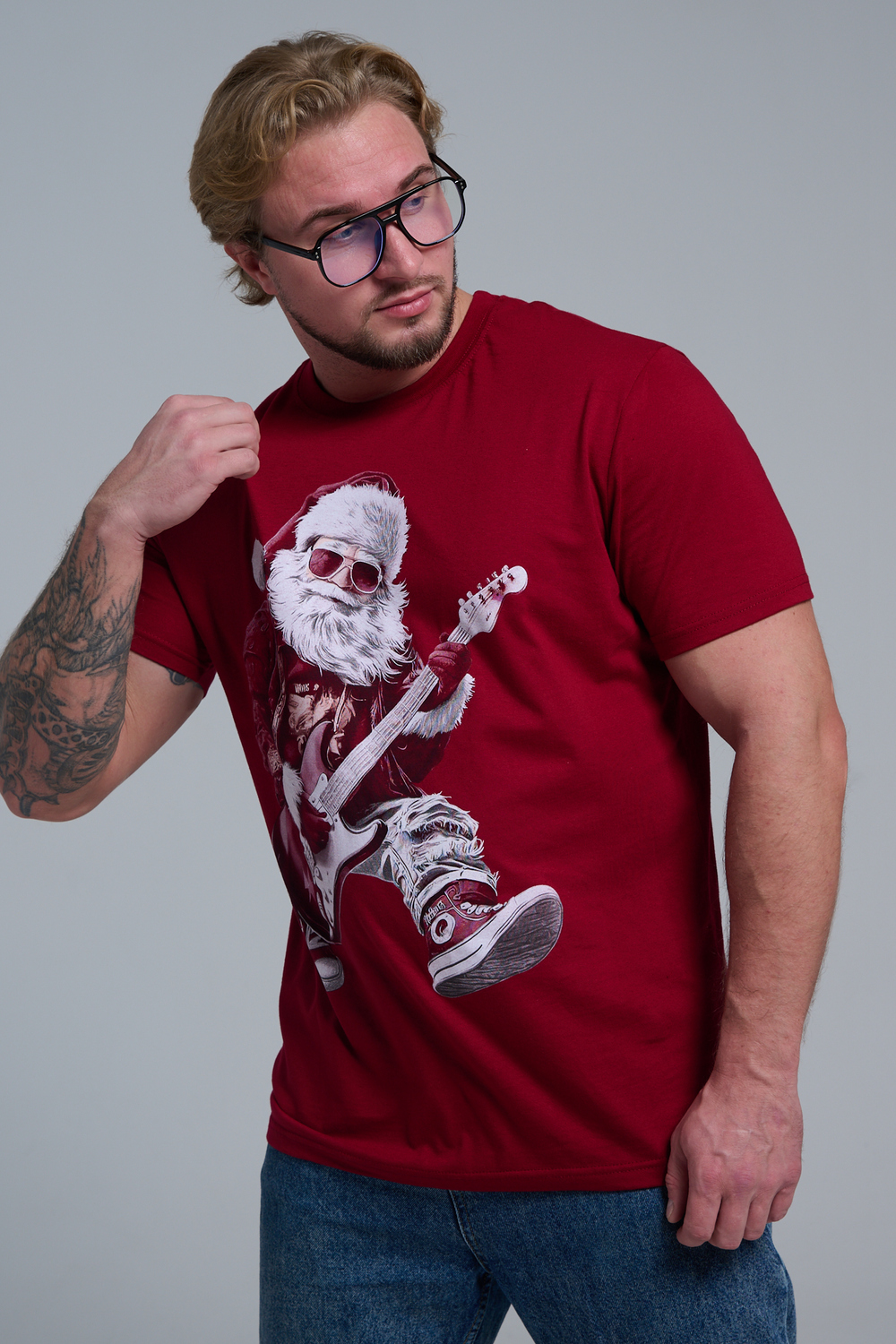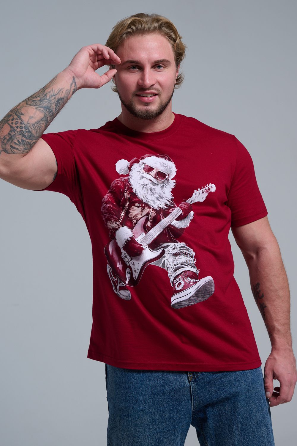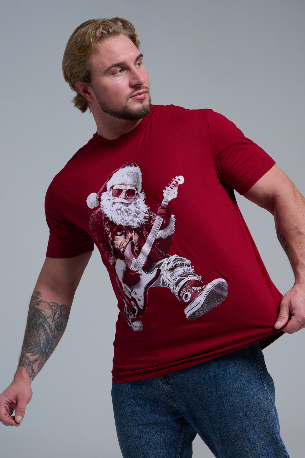 Мужская футболка 8581 / бордо+Д мороз с гитарой