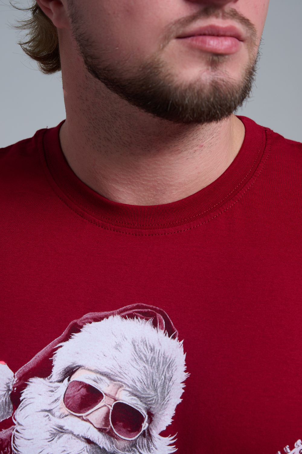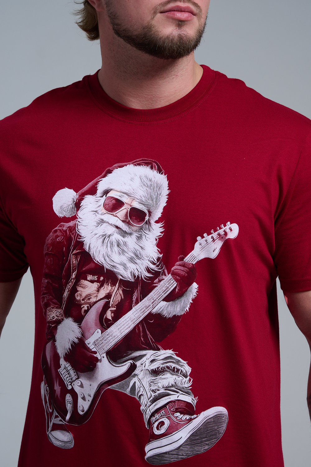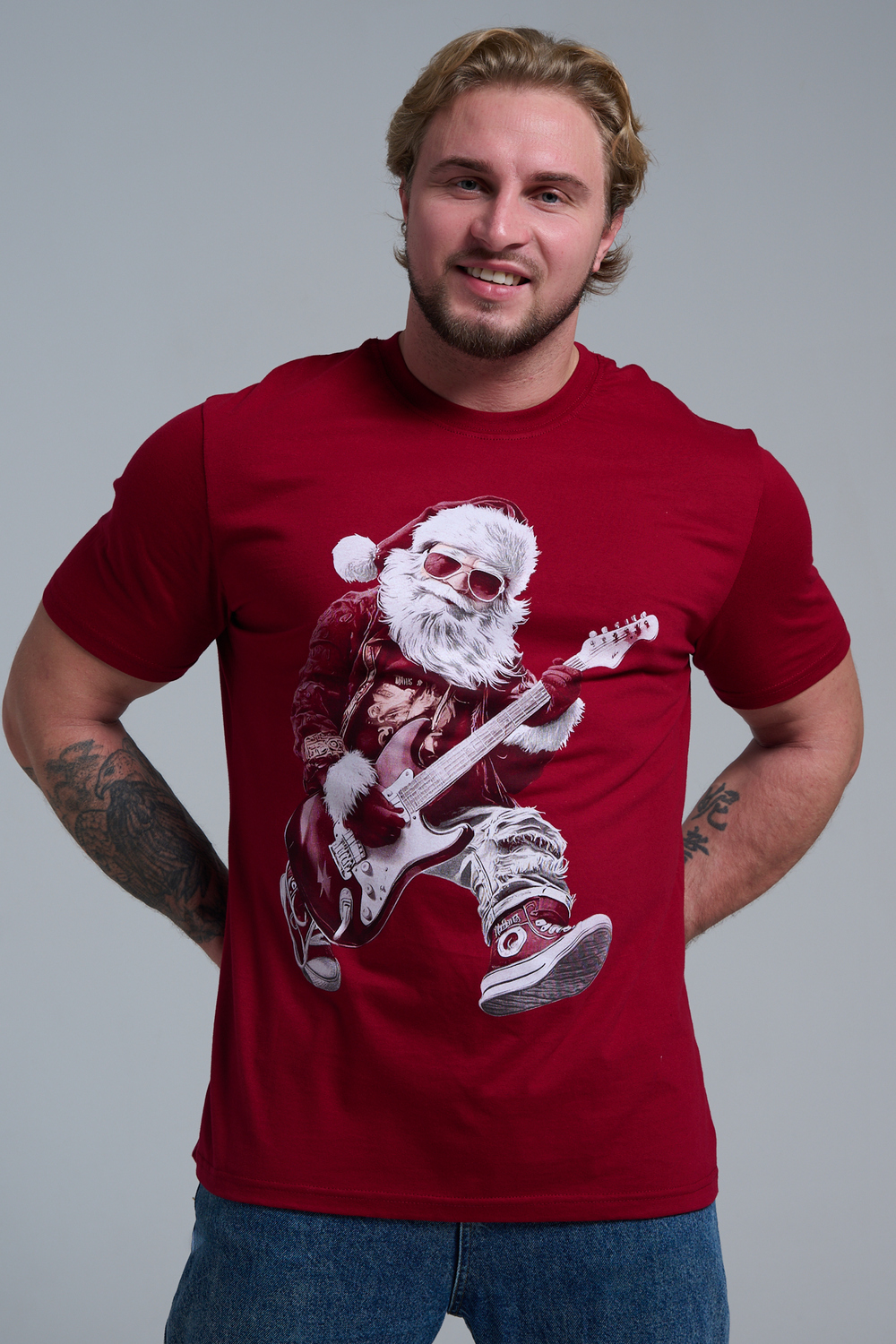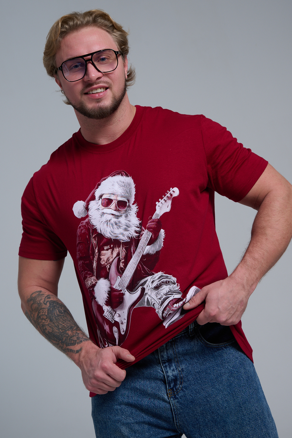 Мужская футболка 8581 / бордо+Д мороз с гитарой
