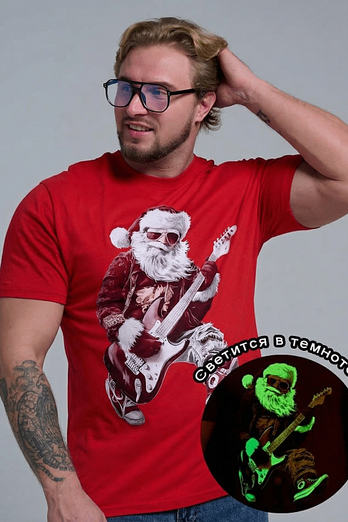 Мужская футболка 8581 / красный+Д мороз с гитарой