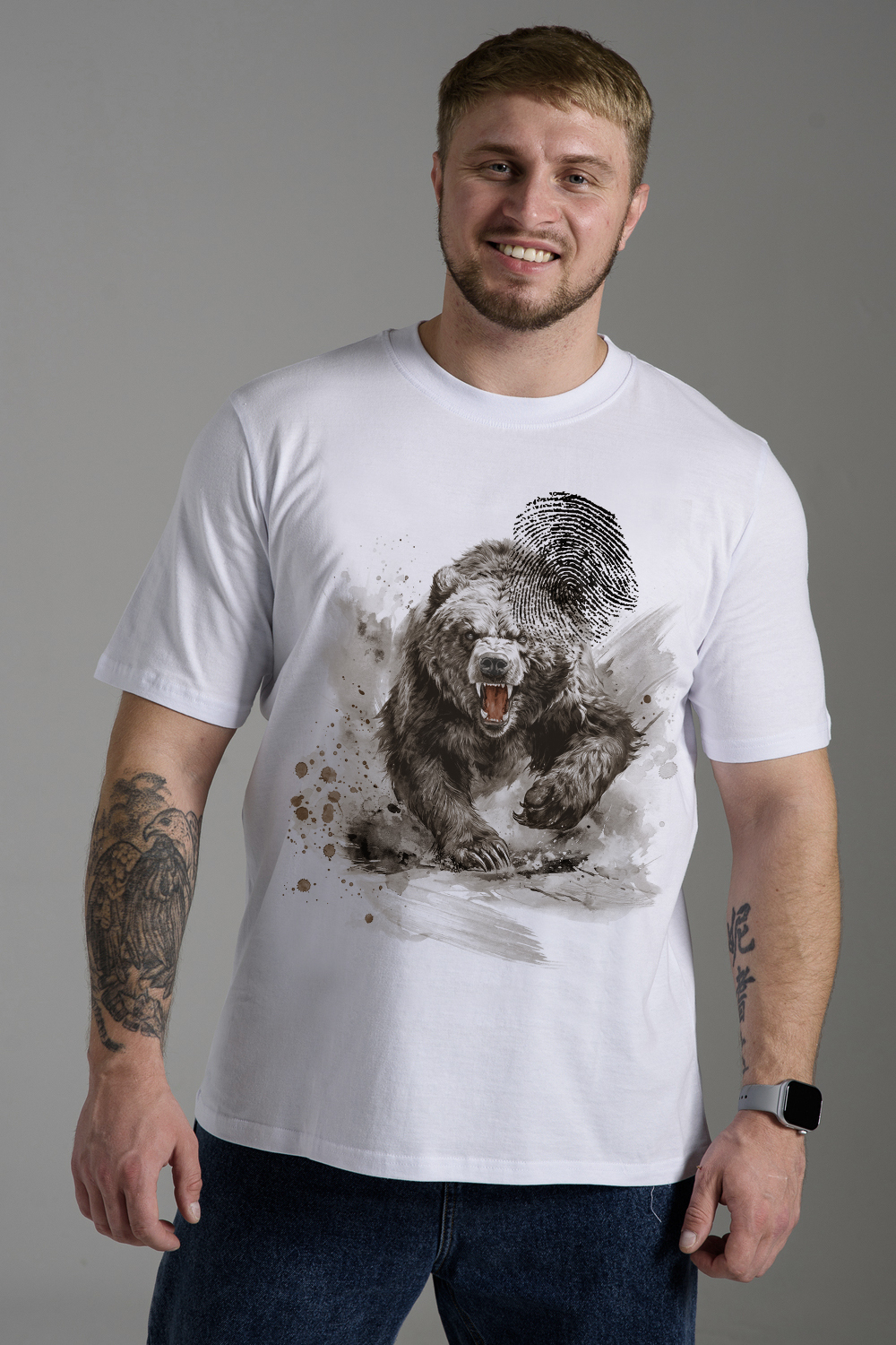 Мужская футболка 8593 / белый+медведь