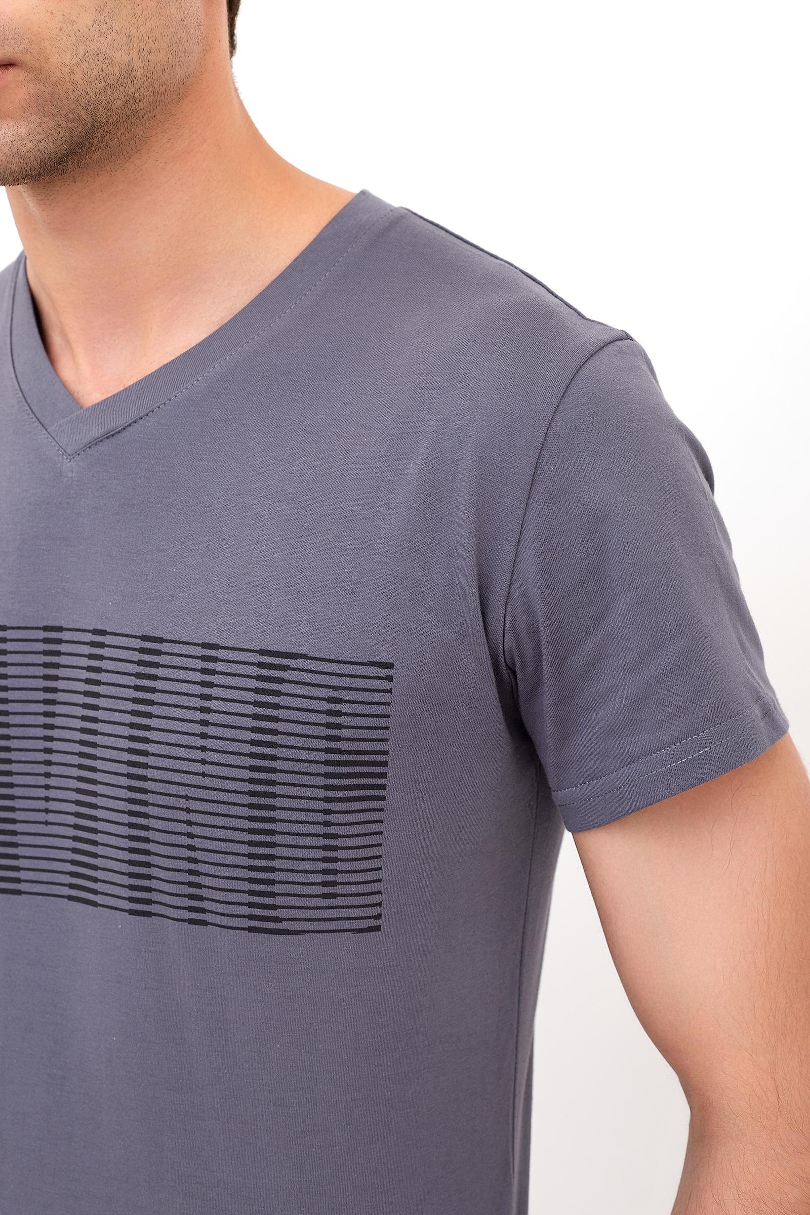 Мужская футболка с модным принтом. Футболка изготовлена из 100% хлопка. Мягкая и удобная, она прекрасно держит форму, не вытягивается, не стесняет движений и идеально подходит для занятий спортом и отдыха. Материал отличается повышенной износостойкостью, футболка не теряет форму после многократных стирок.
