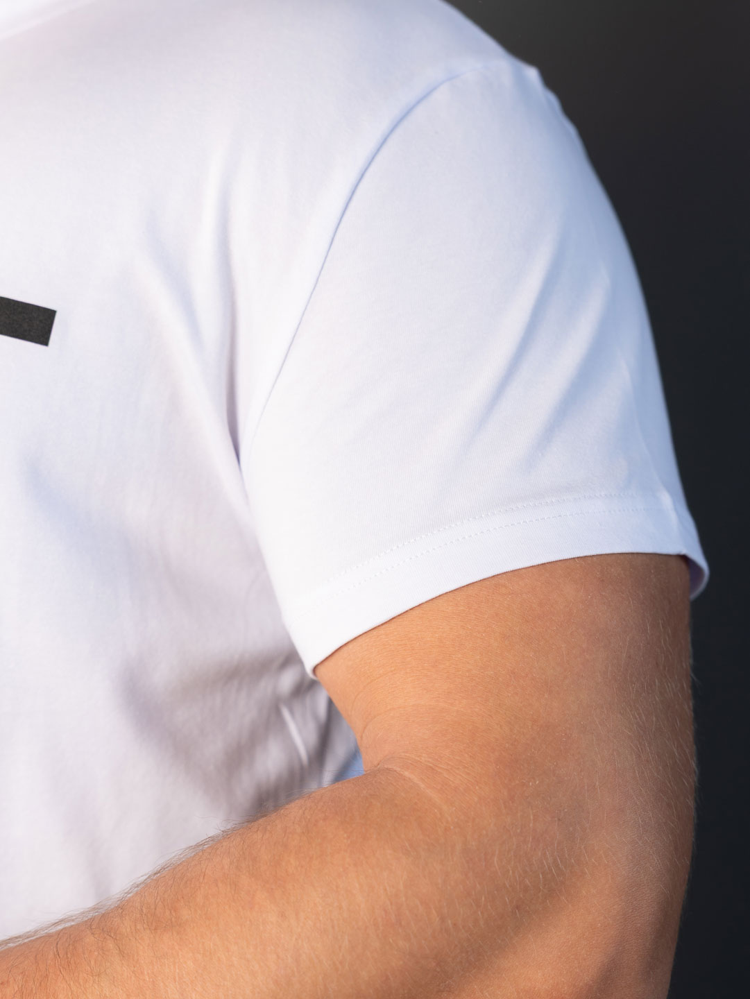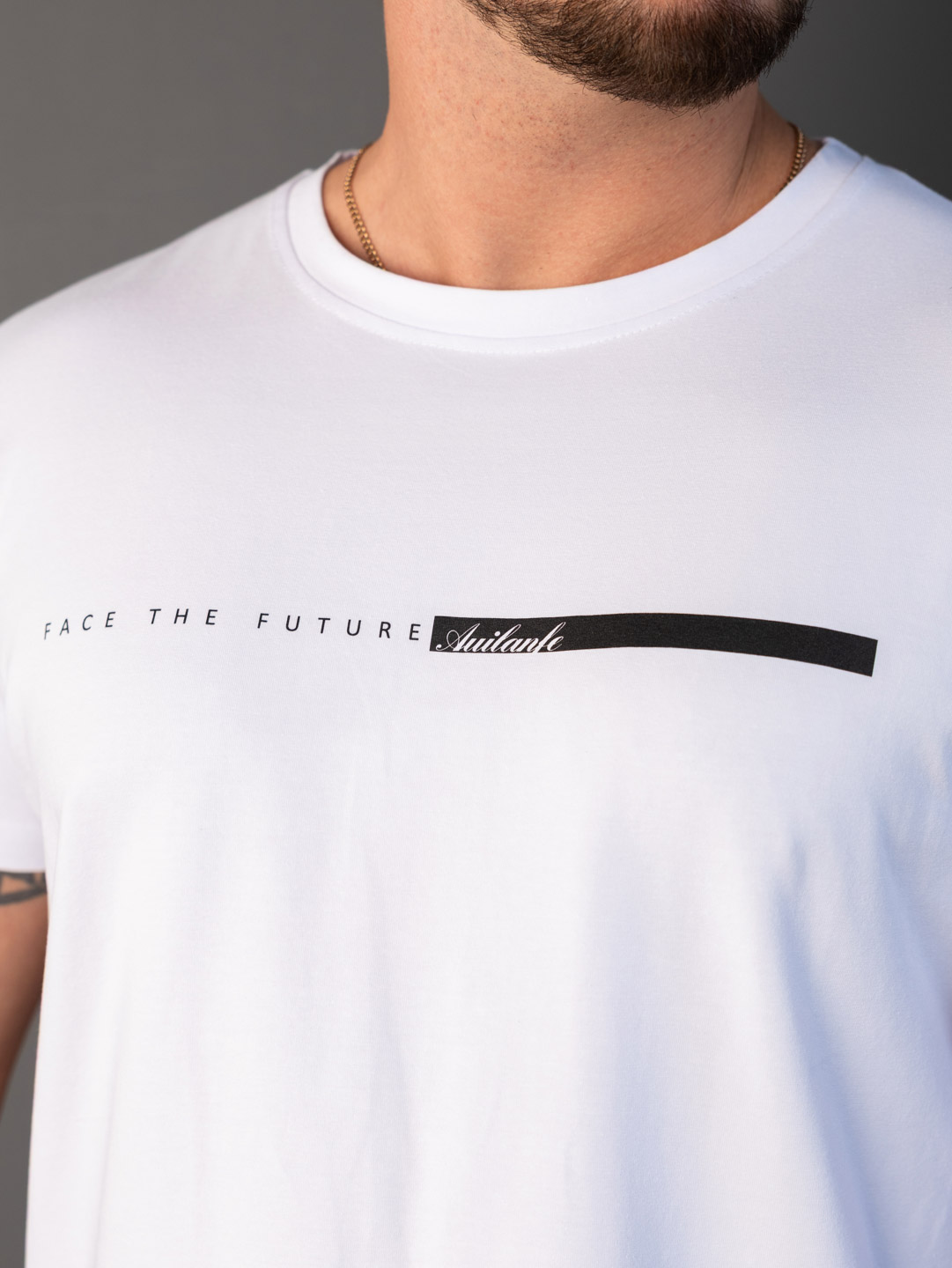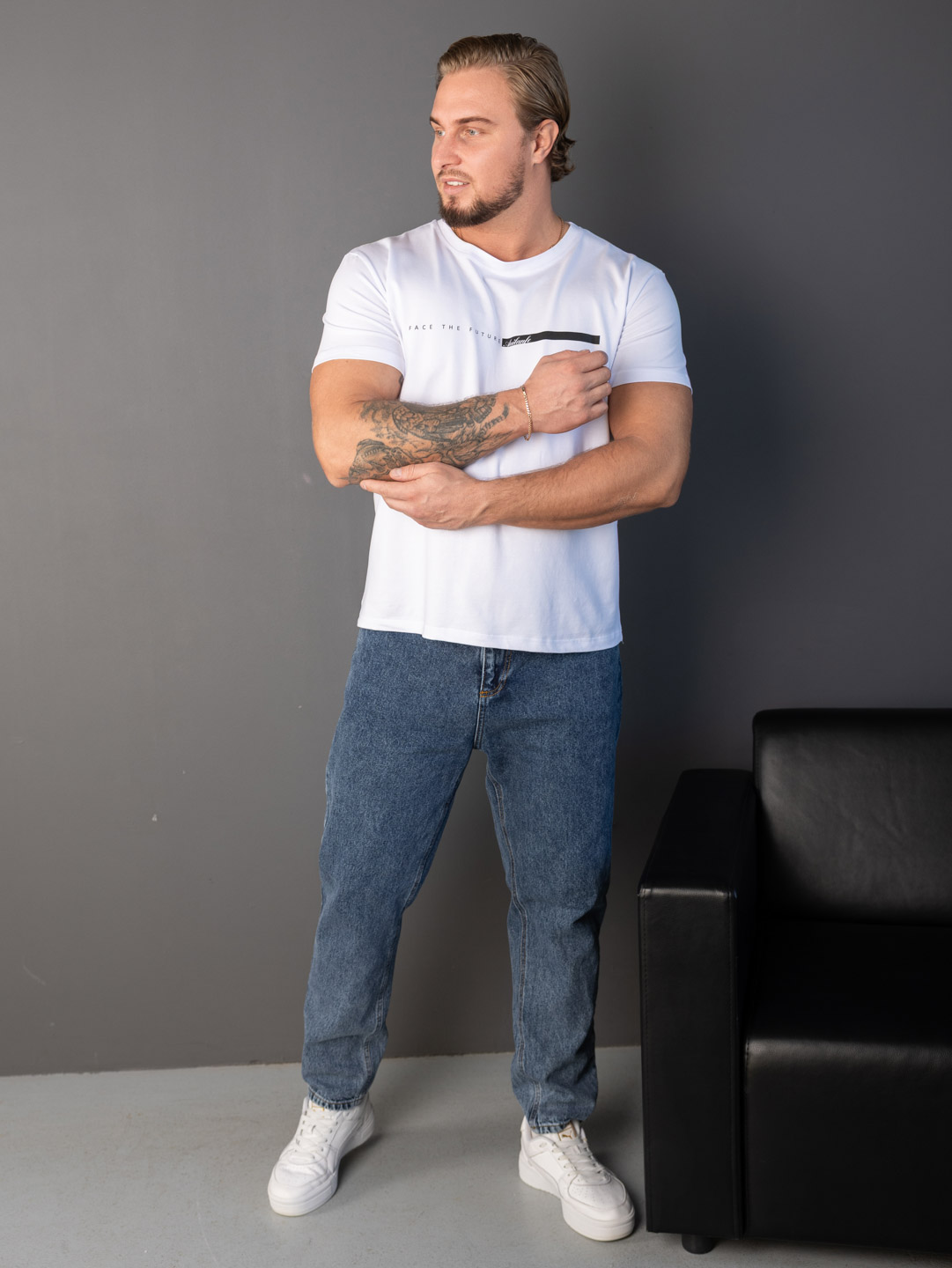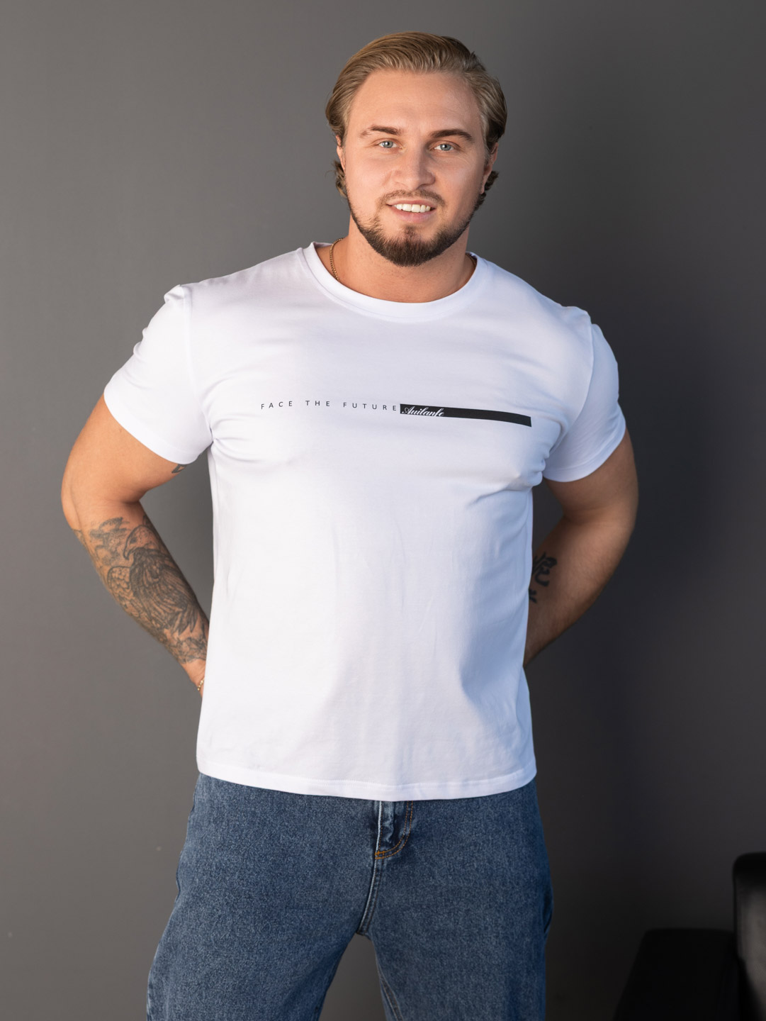 Мужская футболка из кулики с лайкрой, базового кроя, с О-образной горловиной, коротким рукавом и принтом спереди.