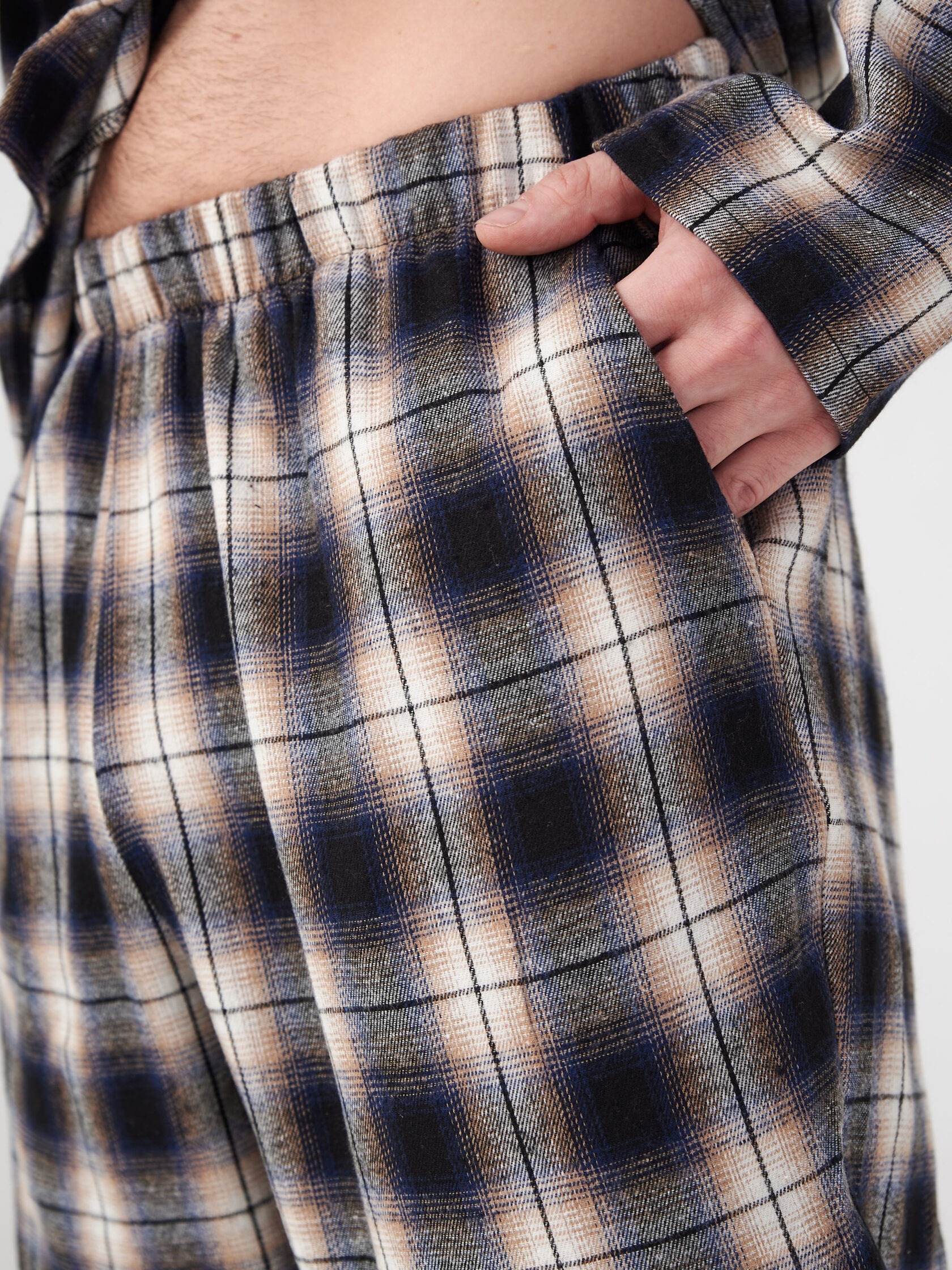 Мужская пижама "Добрый вечер" 2162-Ф / Темно-синий - идеальный вариант костюма для повседневного домашнего использования и сна. Пижама мужская со штанами теплая состоит из брюк прямого кроя и куртки с длинным рукавом на пуговицах с отложным воротником.