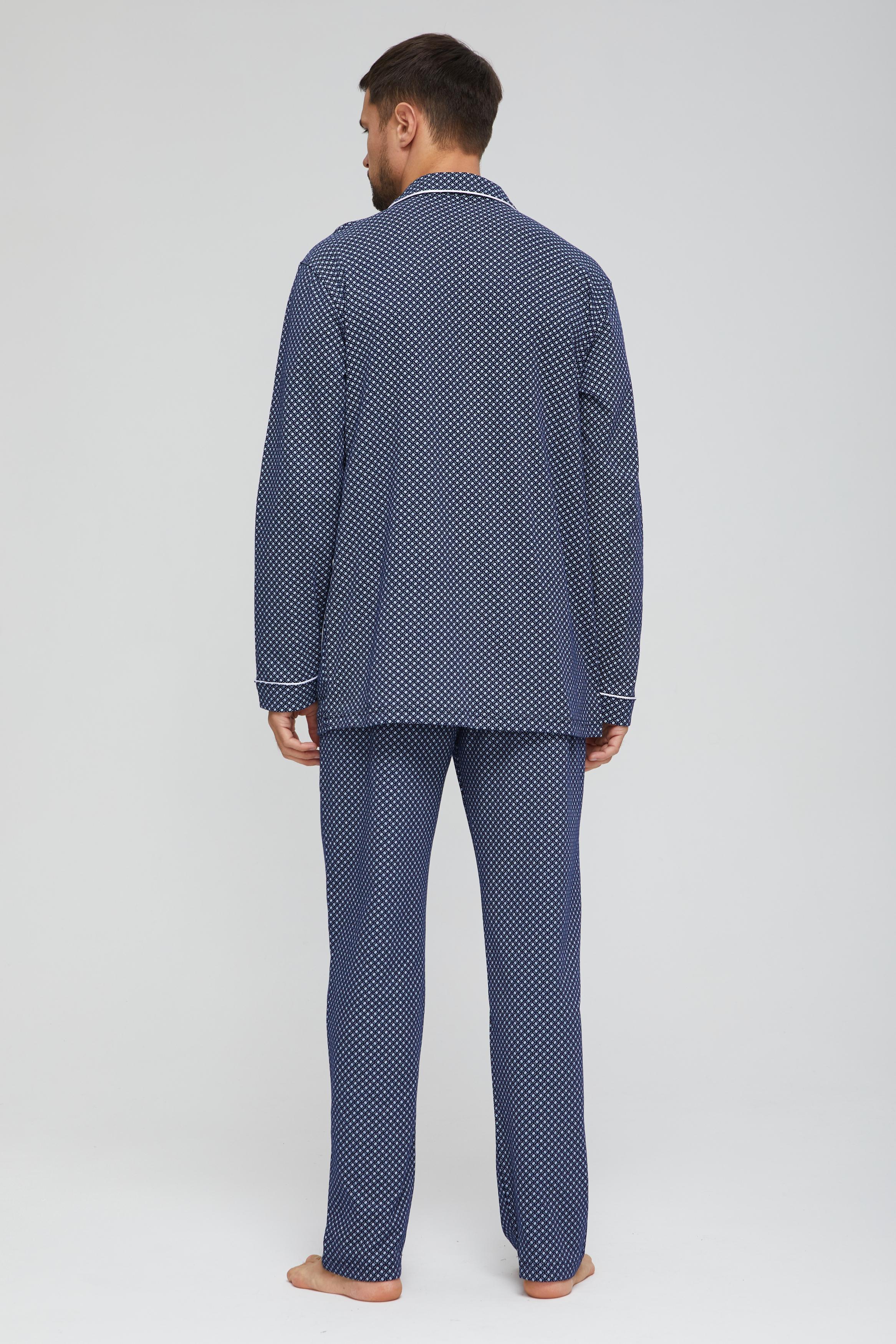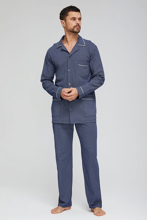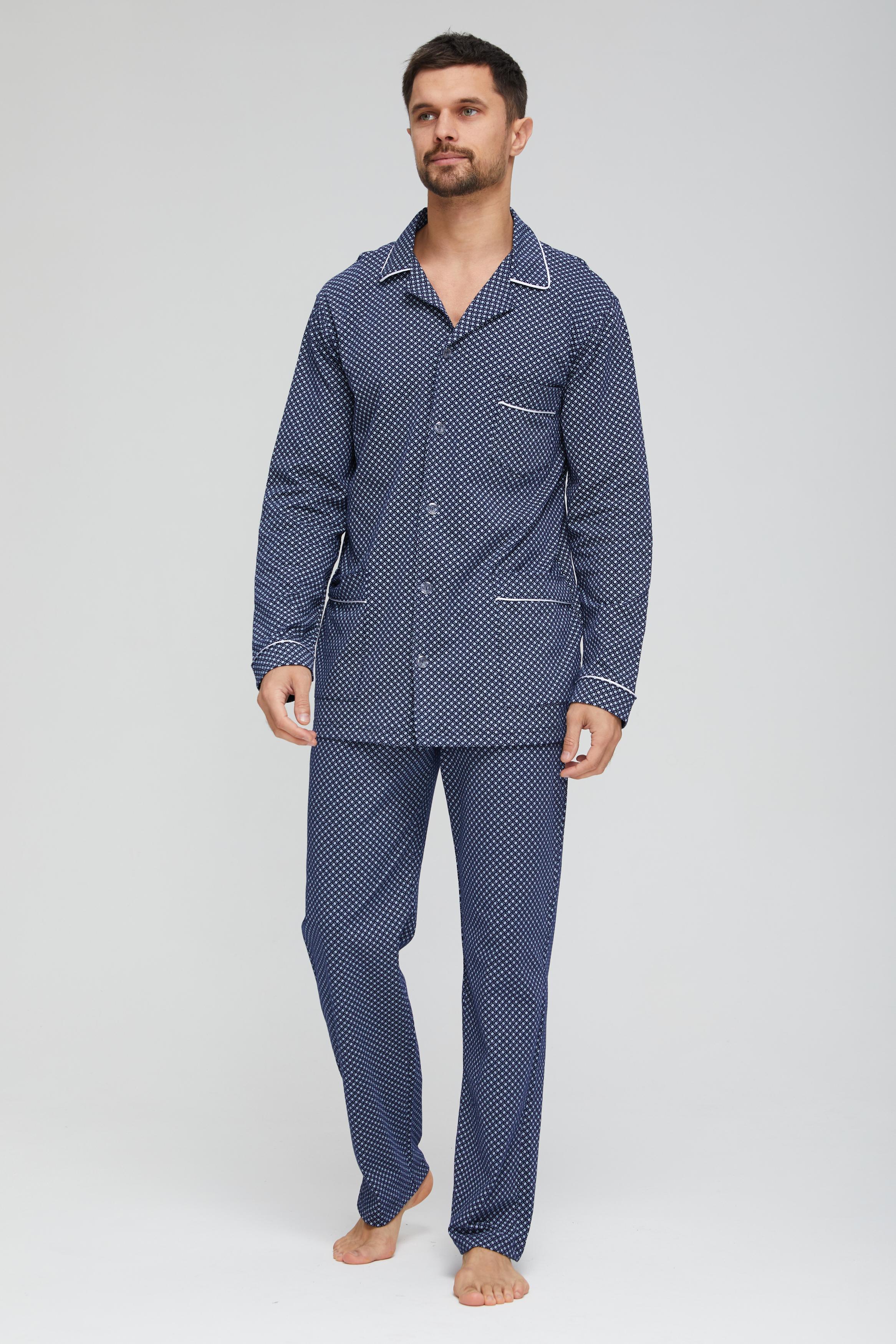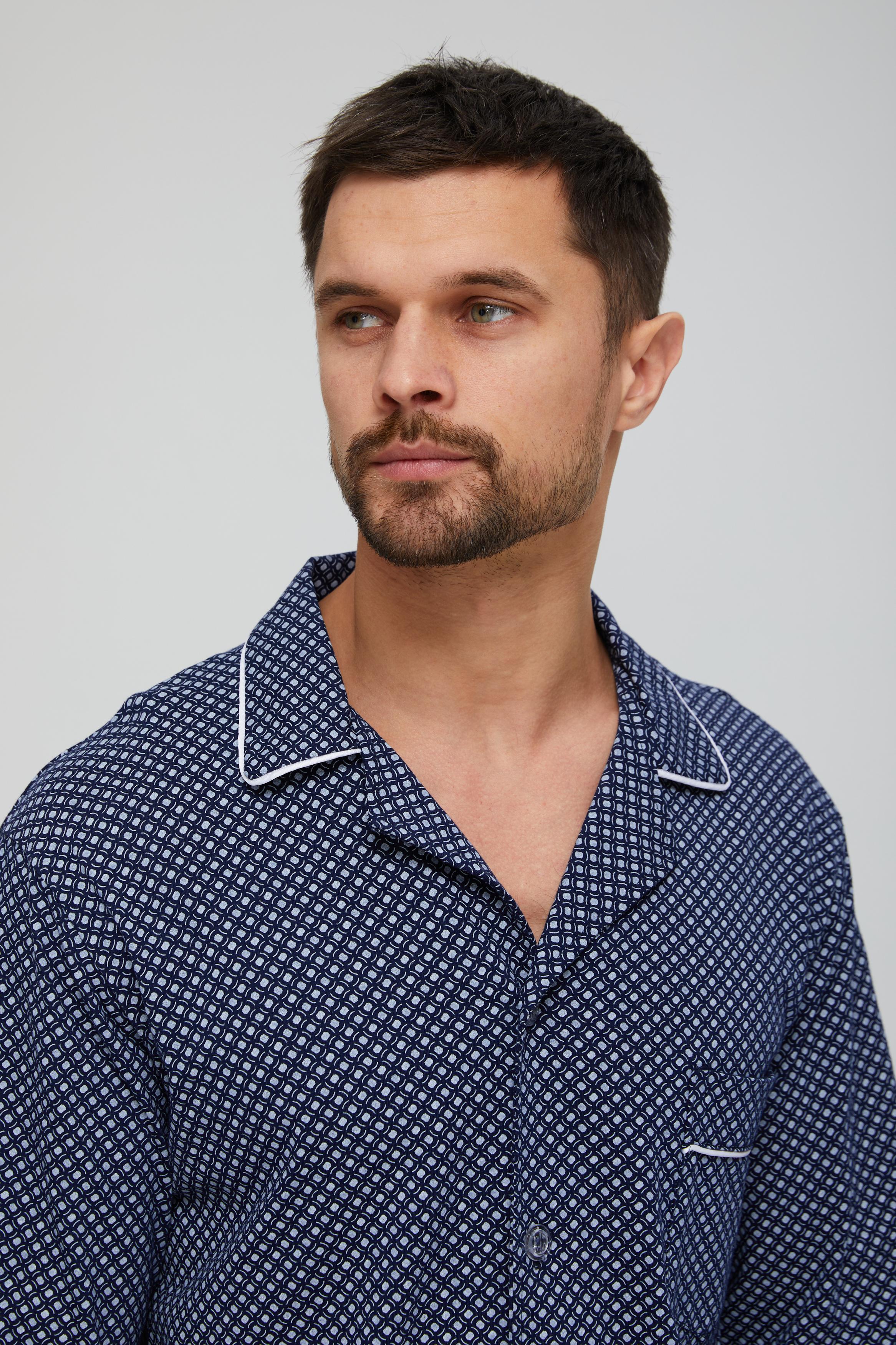 Мужская пижама из 100% хлопка, приятная к телу и не сковывает движений. В комплекте рубашка на пуговицах и с удобными карманами, так же прямые свободные брюки на поясной резинке. Рисунок на ткани в мелкую клетку. Отличный комплект, выполненный со вкусом, подойдёт каждому мужчине.